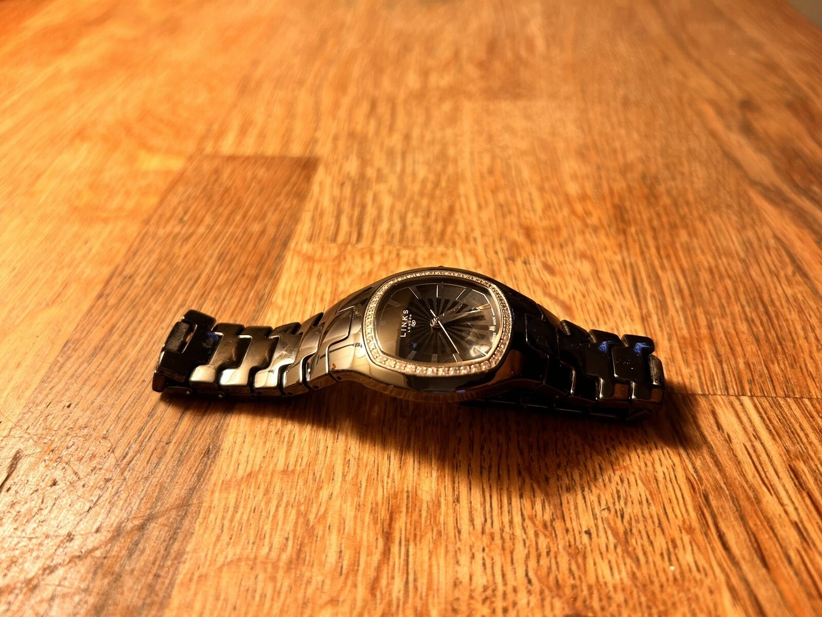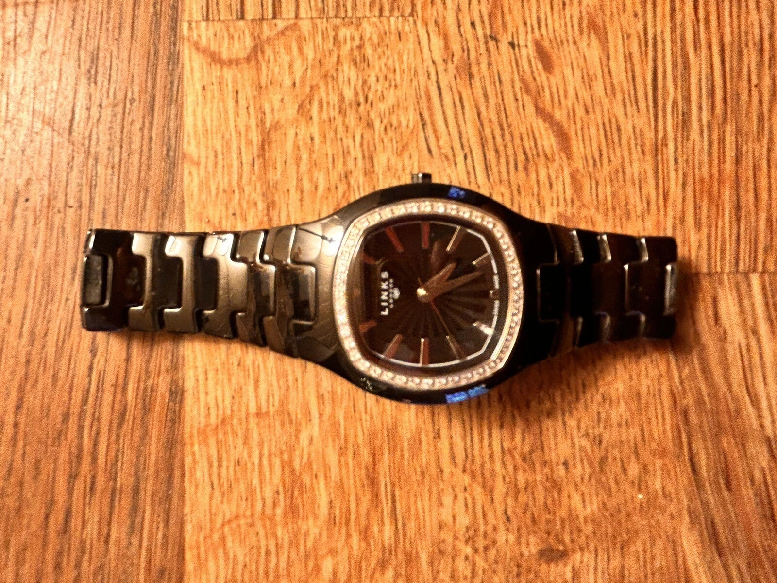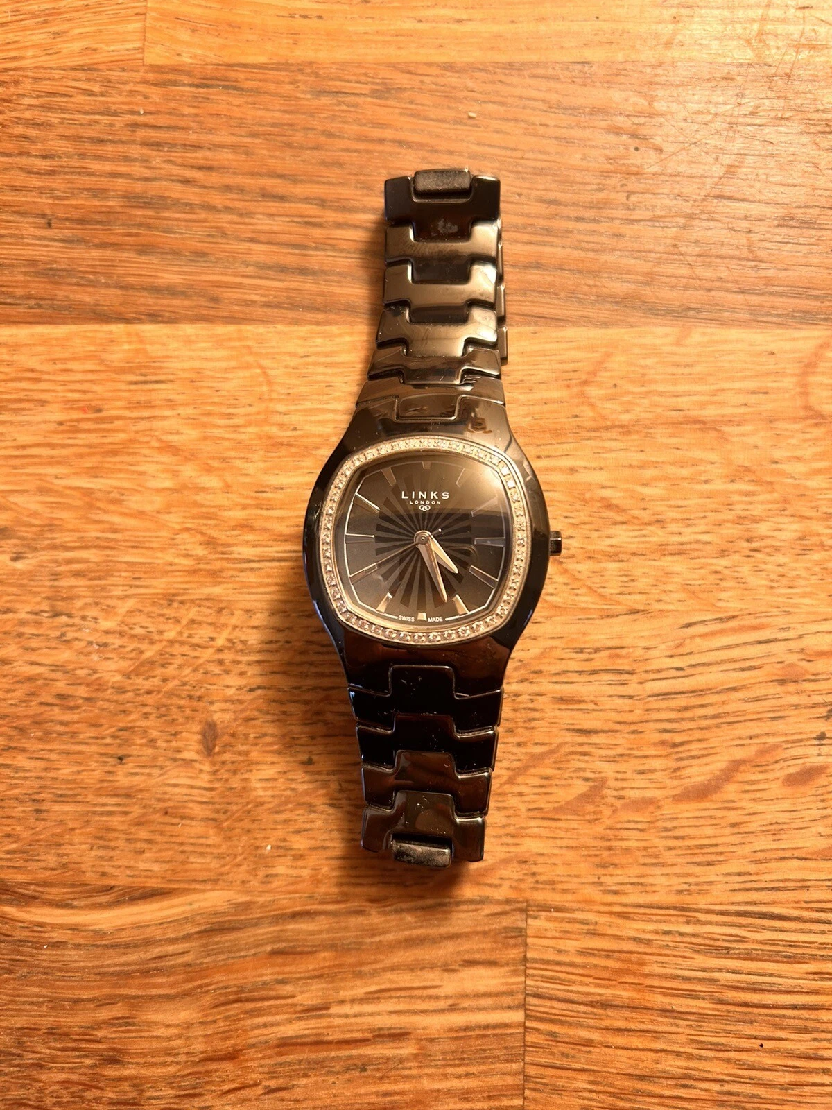 Links Of London Women’s Watch Rare Black Zirconia Ceramic Bracelet With Diamonds