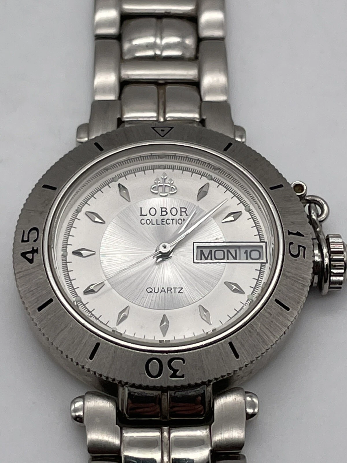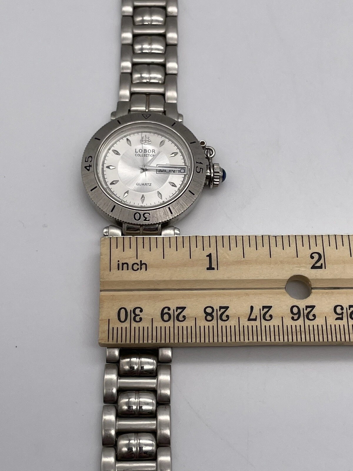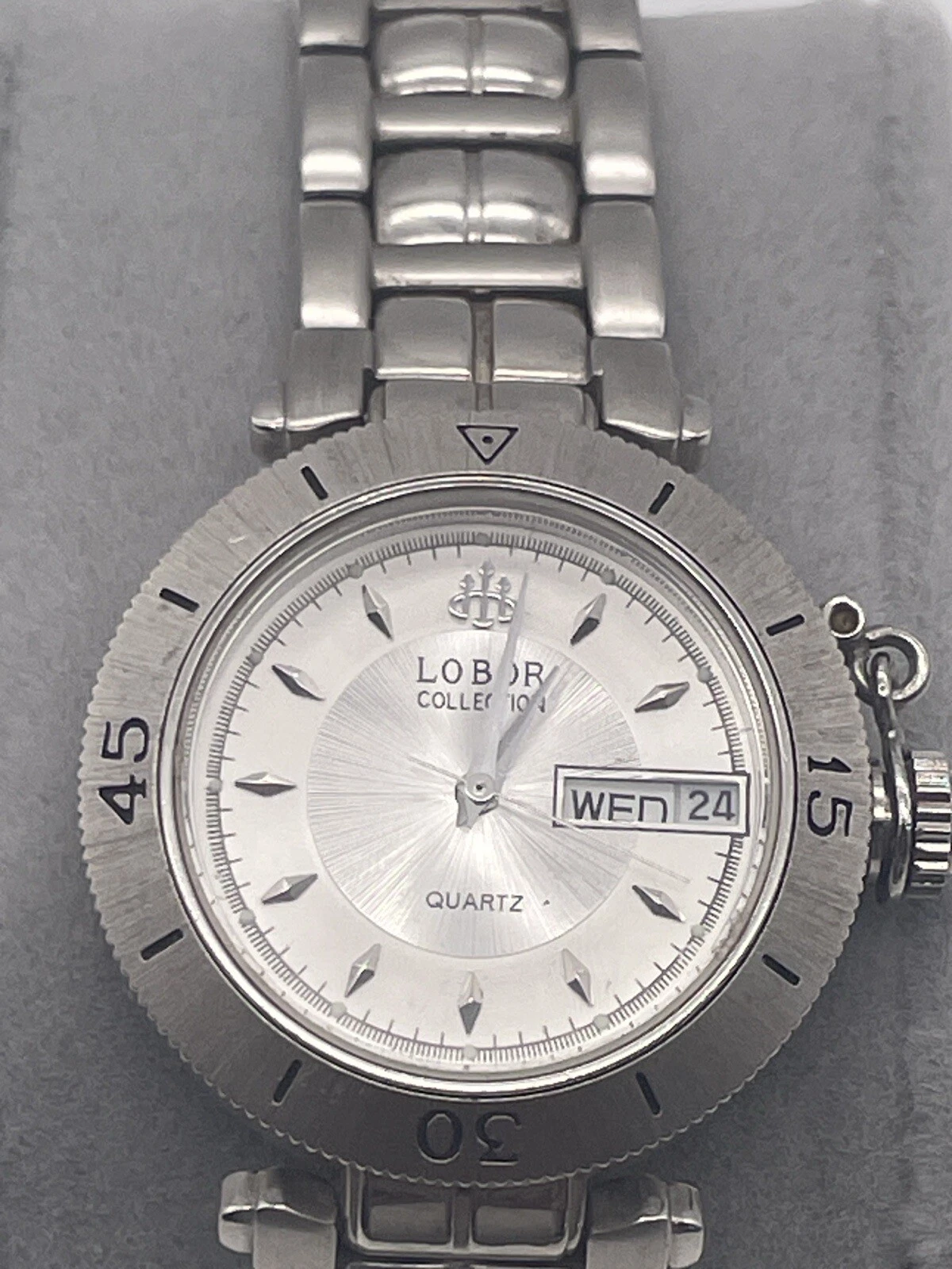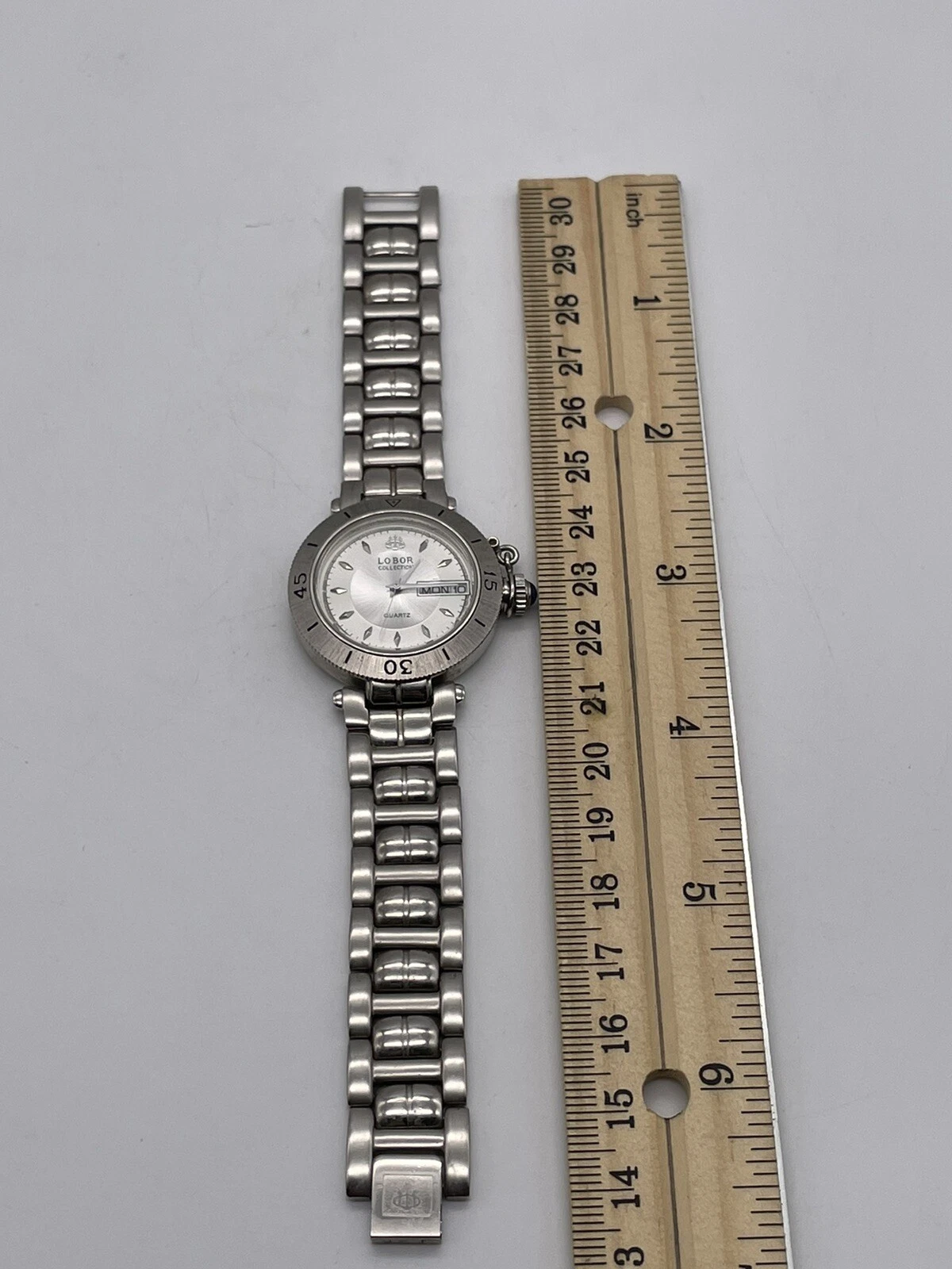 Lobor Collection Silver Tone Day Date Quartz Ladies watch New Battery