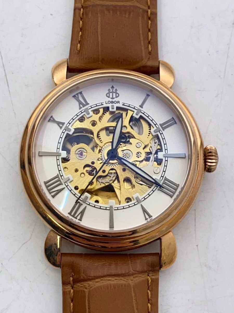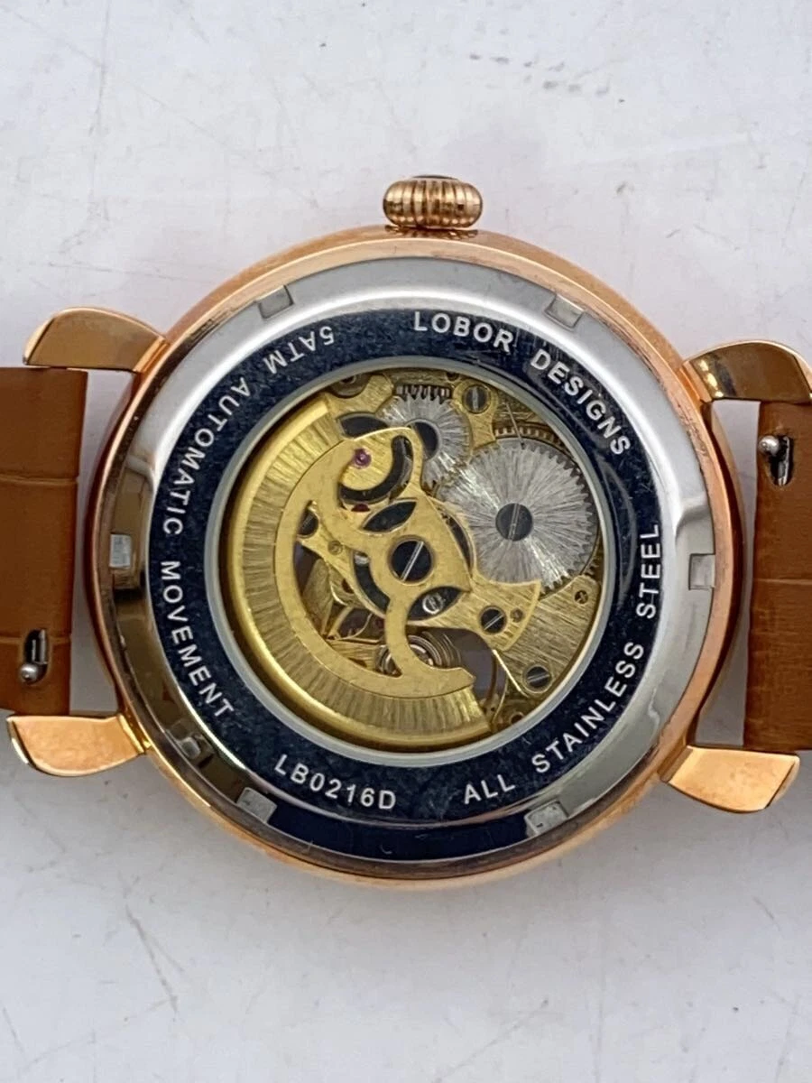 LOBOR Automatic Analog Watch White Camel Leather LB2016D Excellent JAPAN