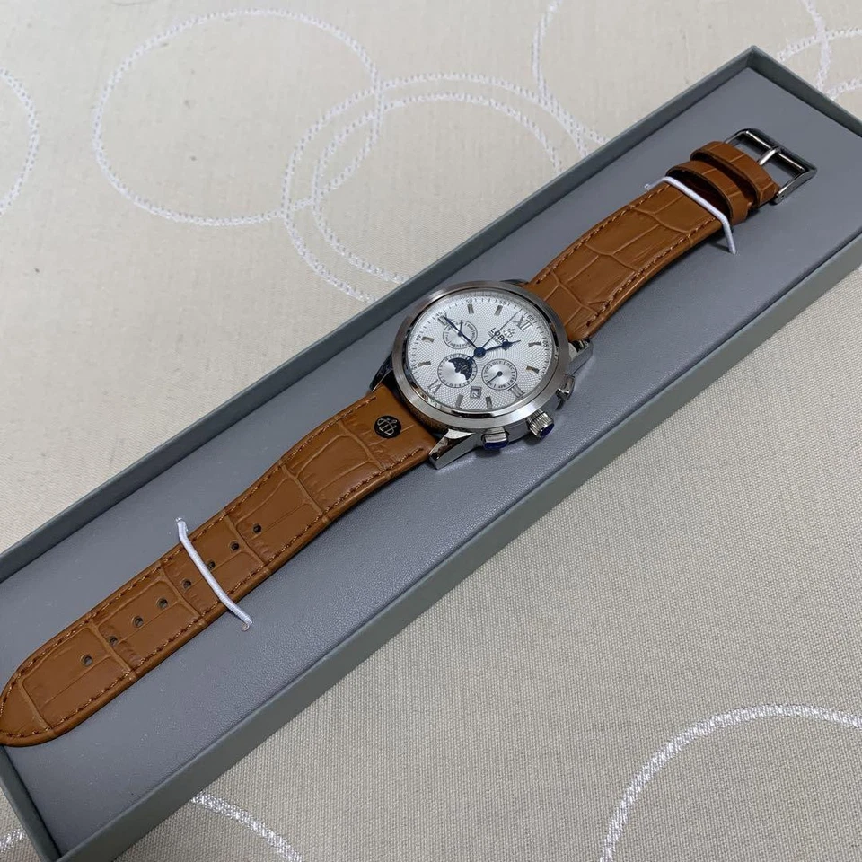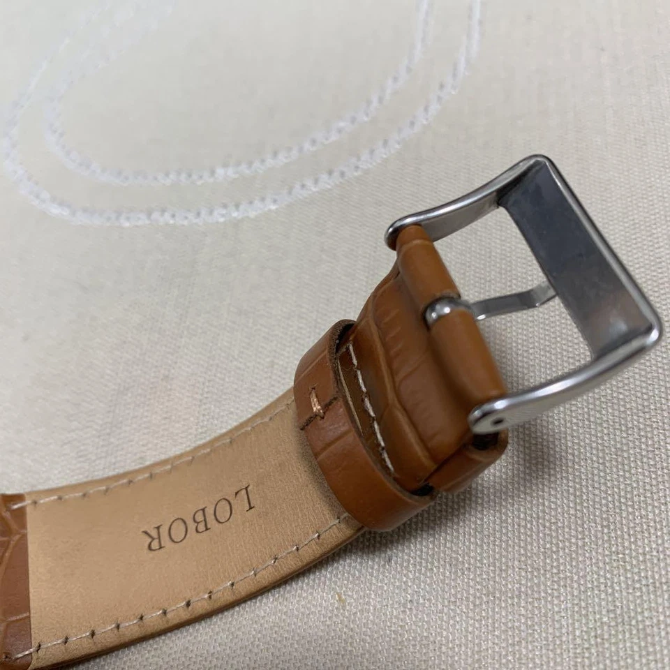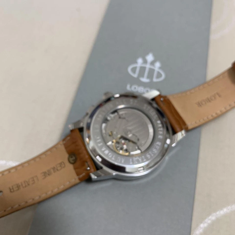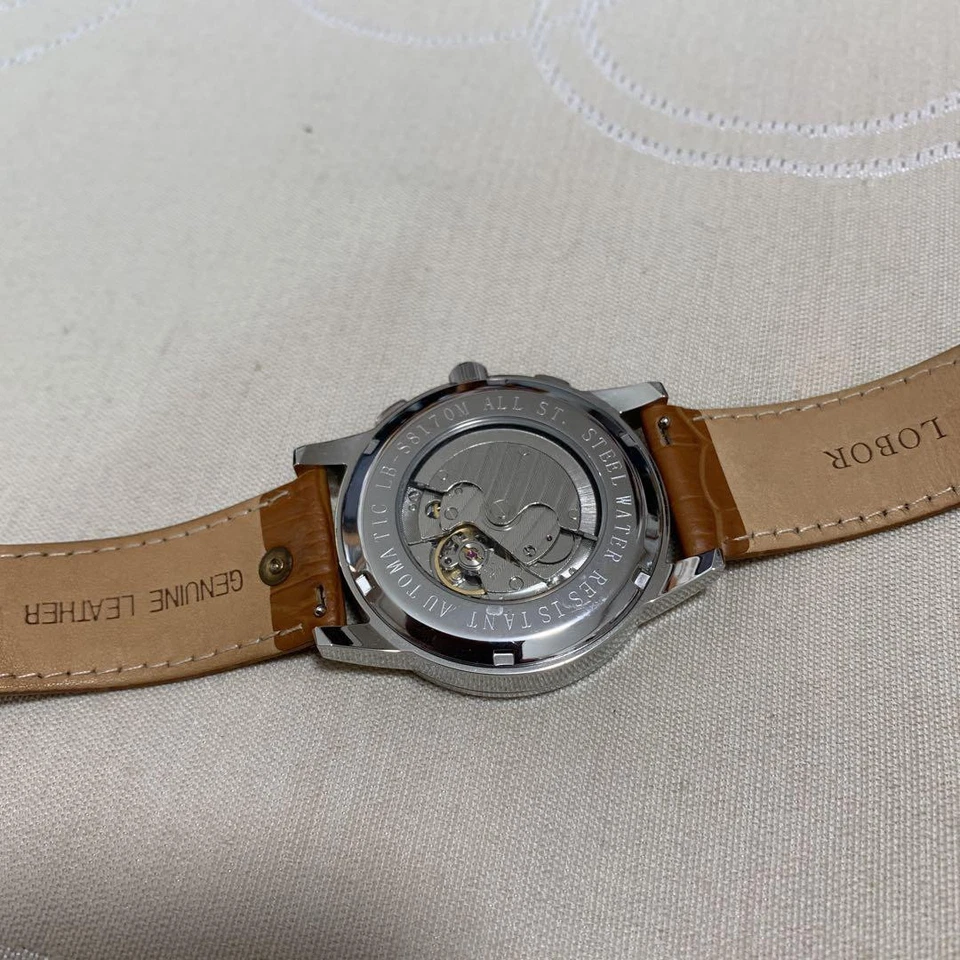 LOBOR Automatic Watch Brown Leather Blue Hands Unused with Box Slight Damage