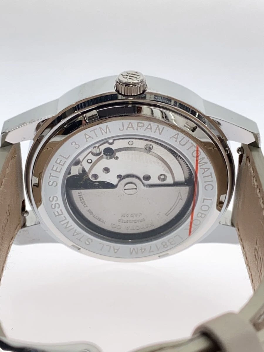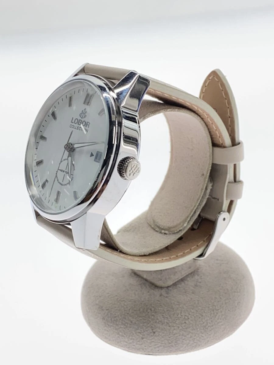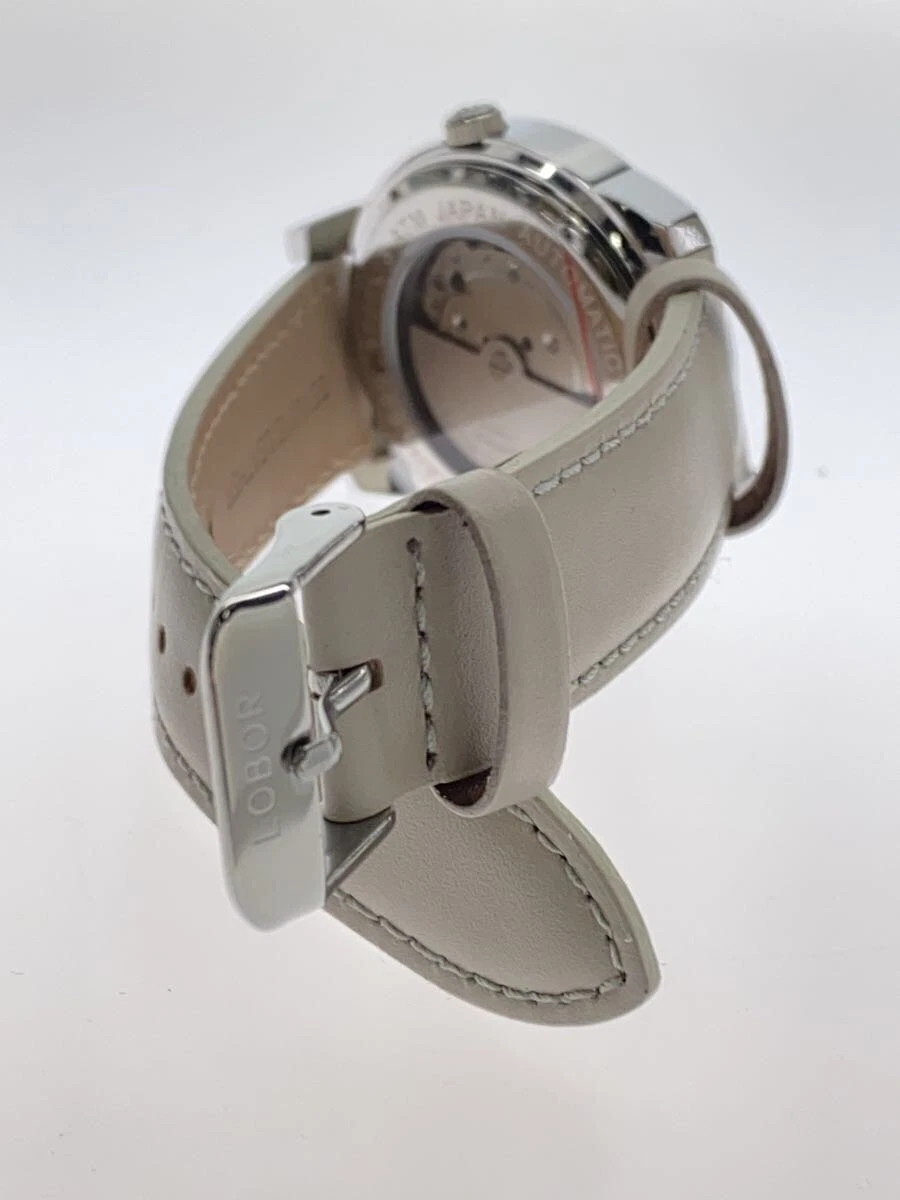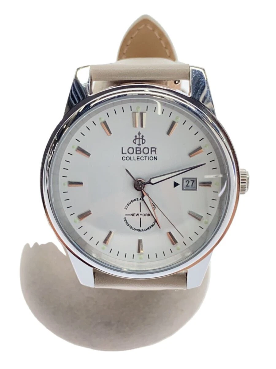 LOBOR Automatic Analog White Dial Beige Leather Elegant Practical Excellent