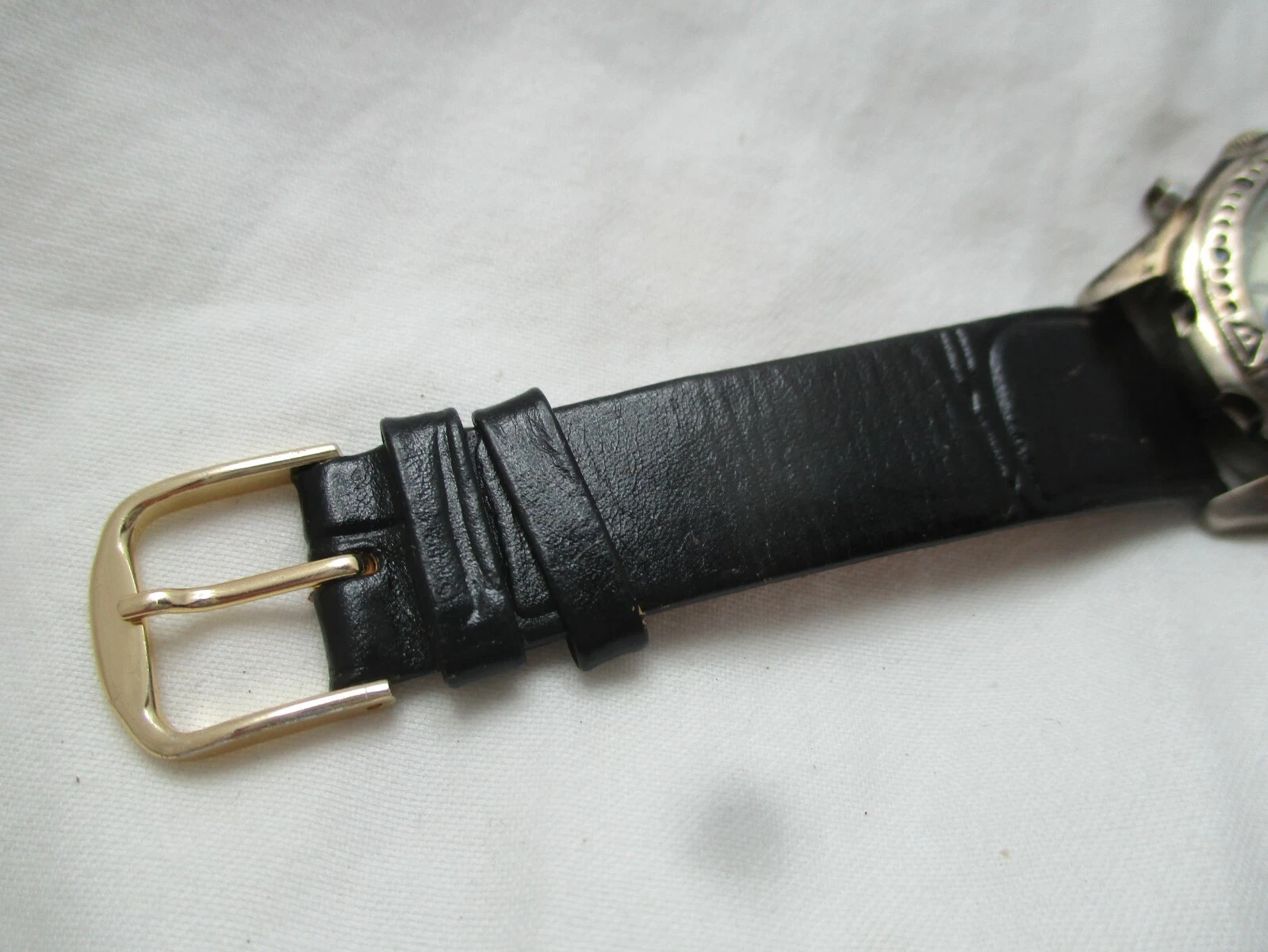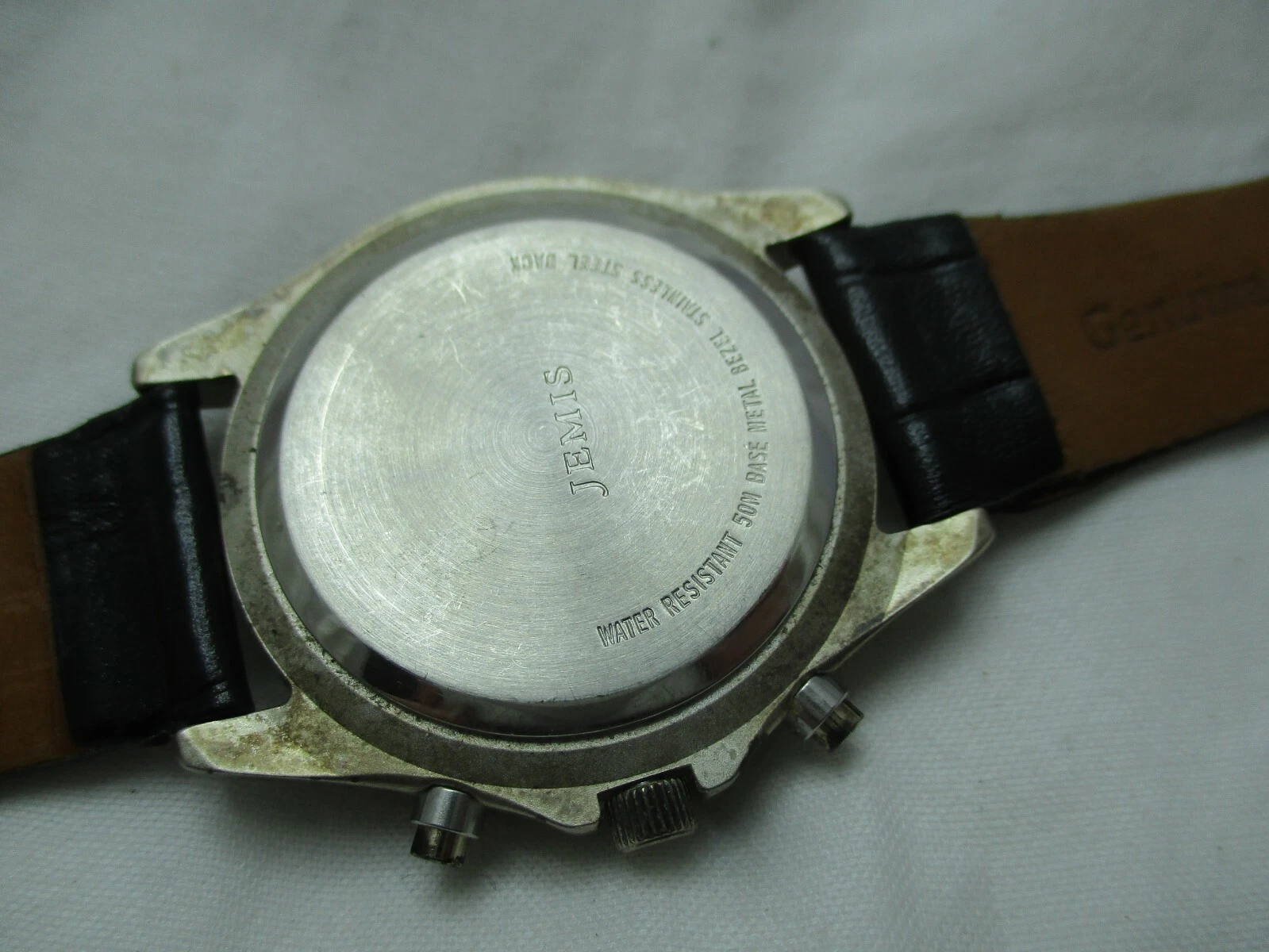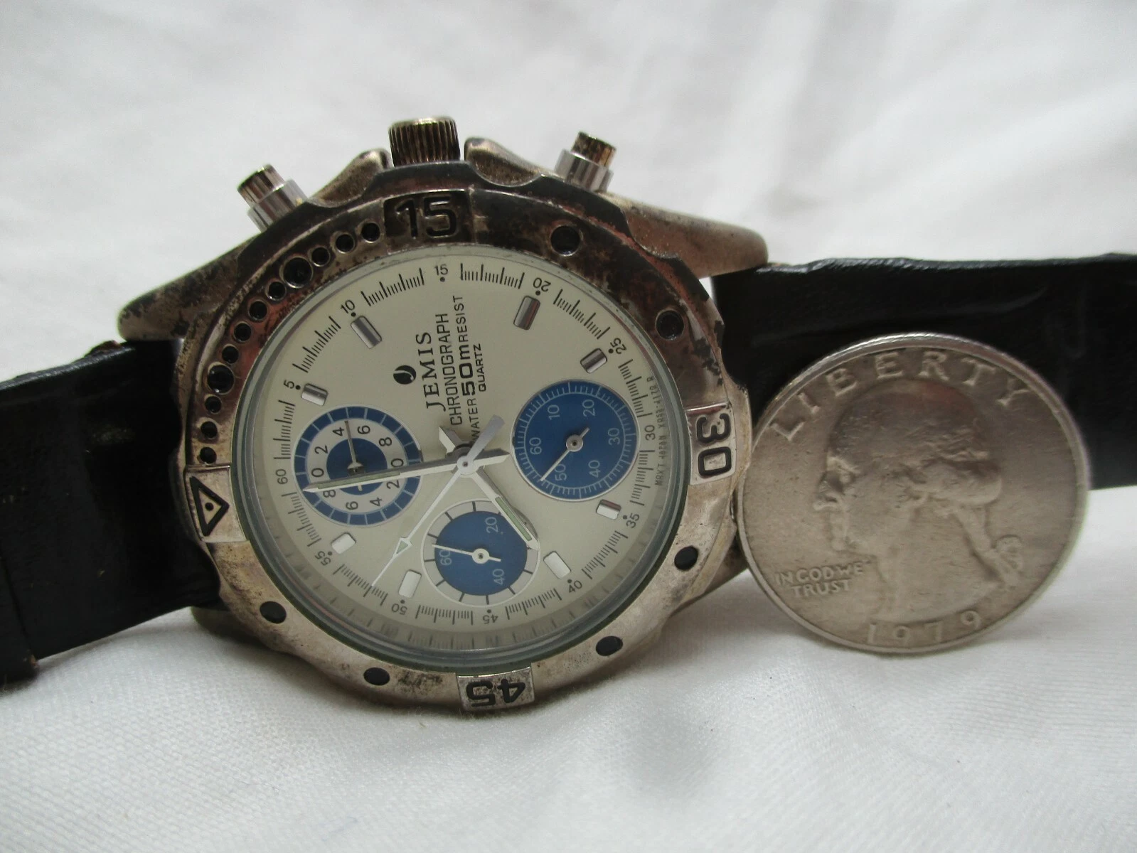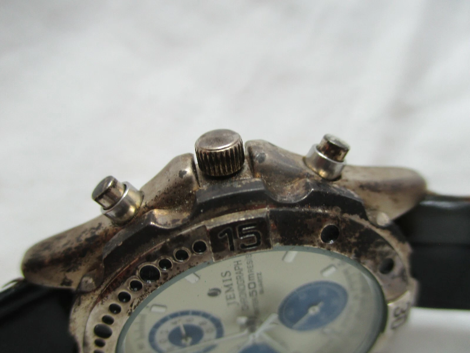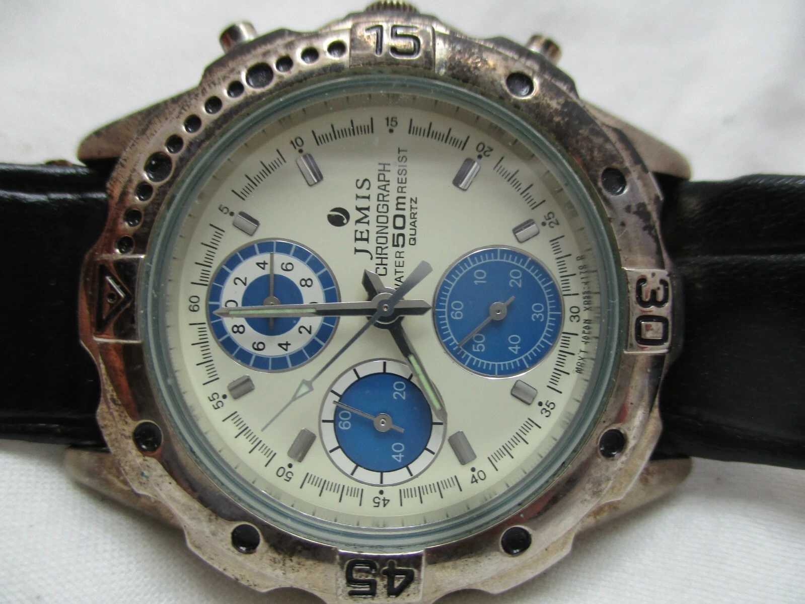 Jemis Chronograph Watch Wr 50m Silver Tone Black Leather Buckle Band