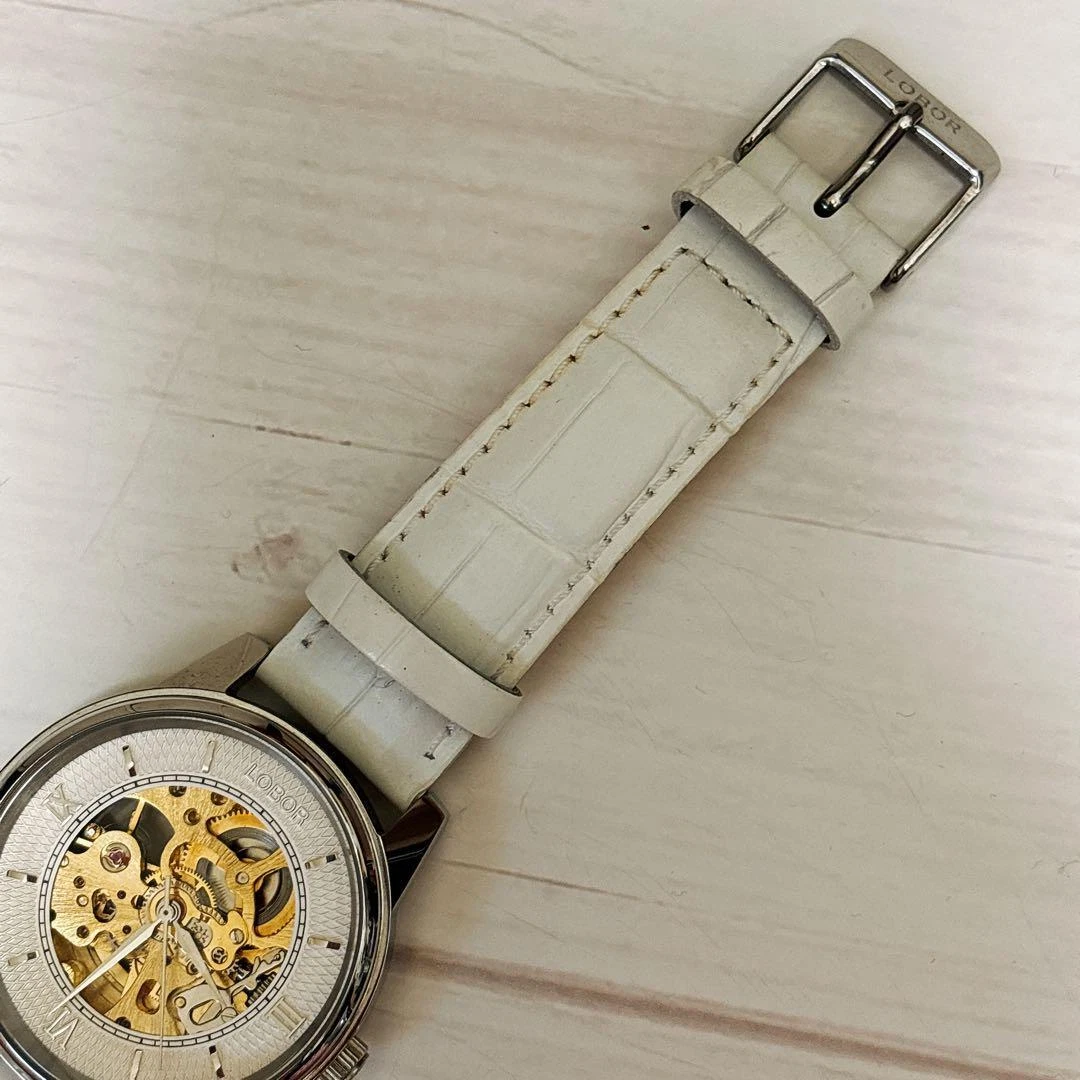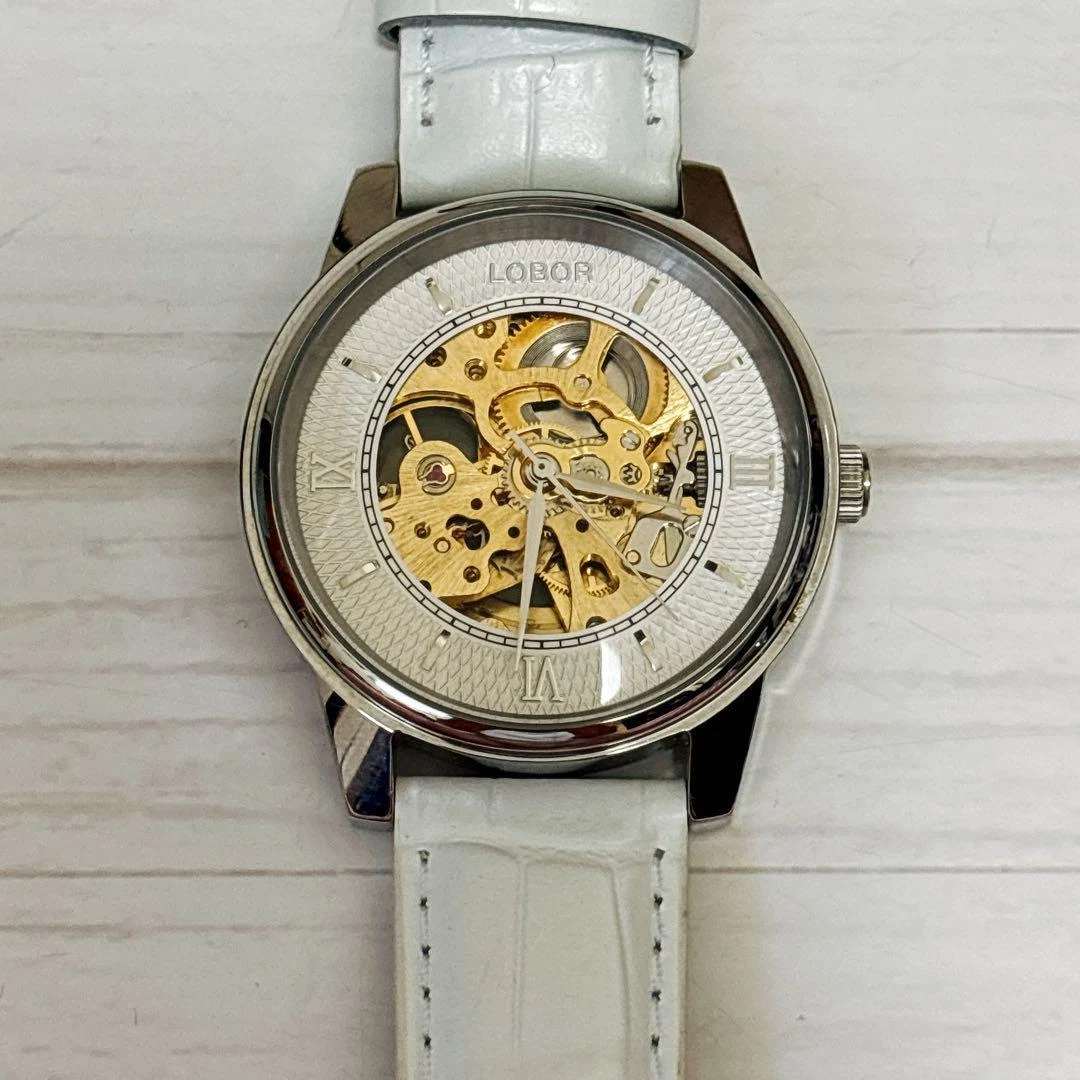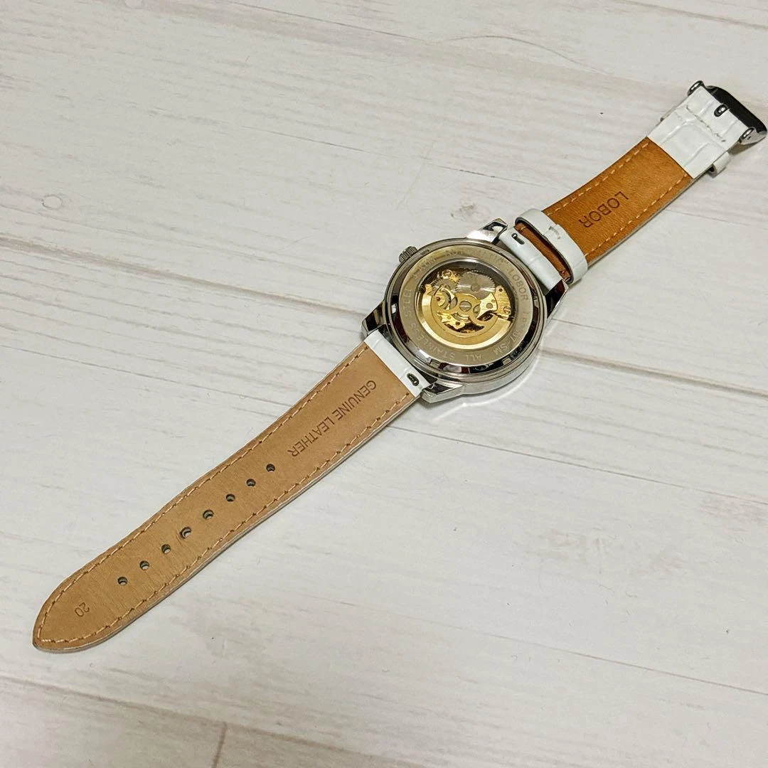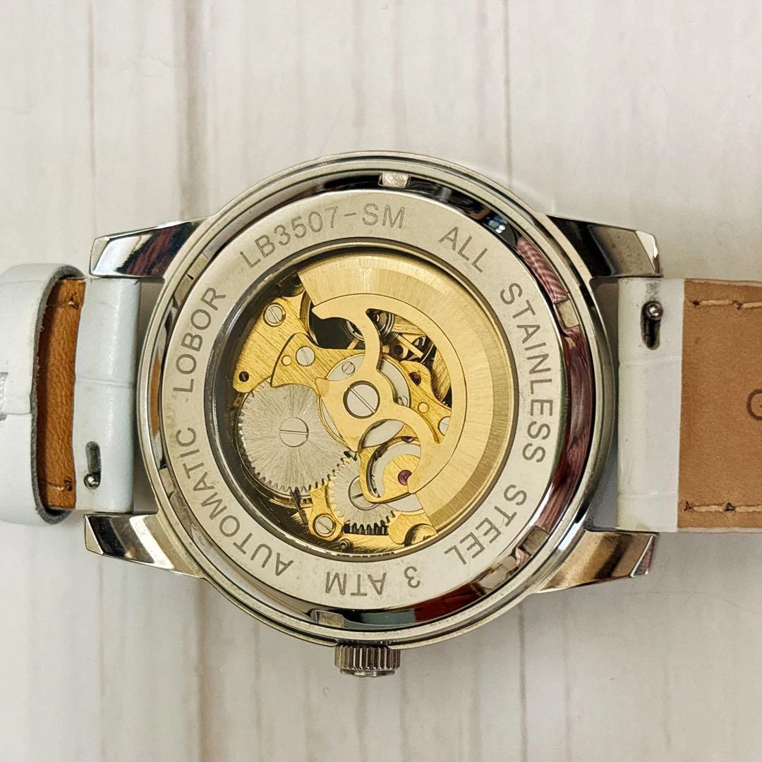 LOBOR Dynasty Constantine 40mm Automatic Watch White/Silver Leather Band