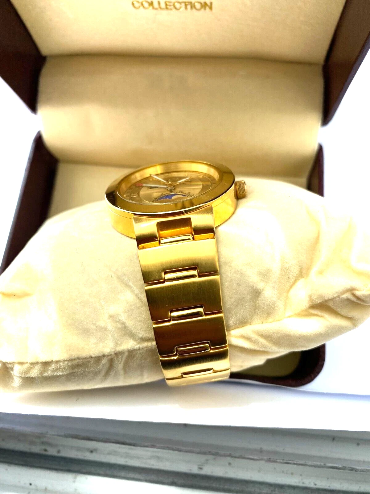 Lobor Collection Vintage Unisex Gold Plated Moon Phase Watch & Box