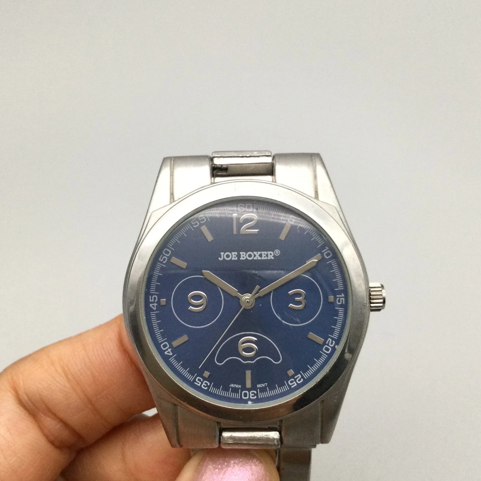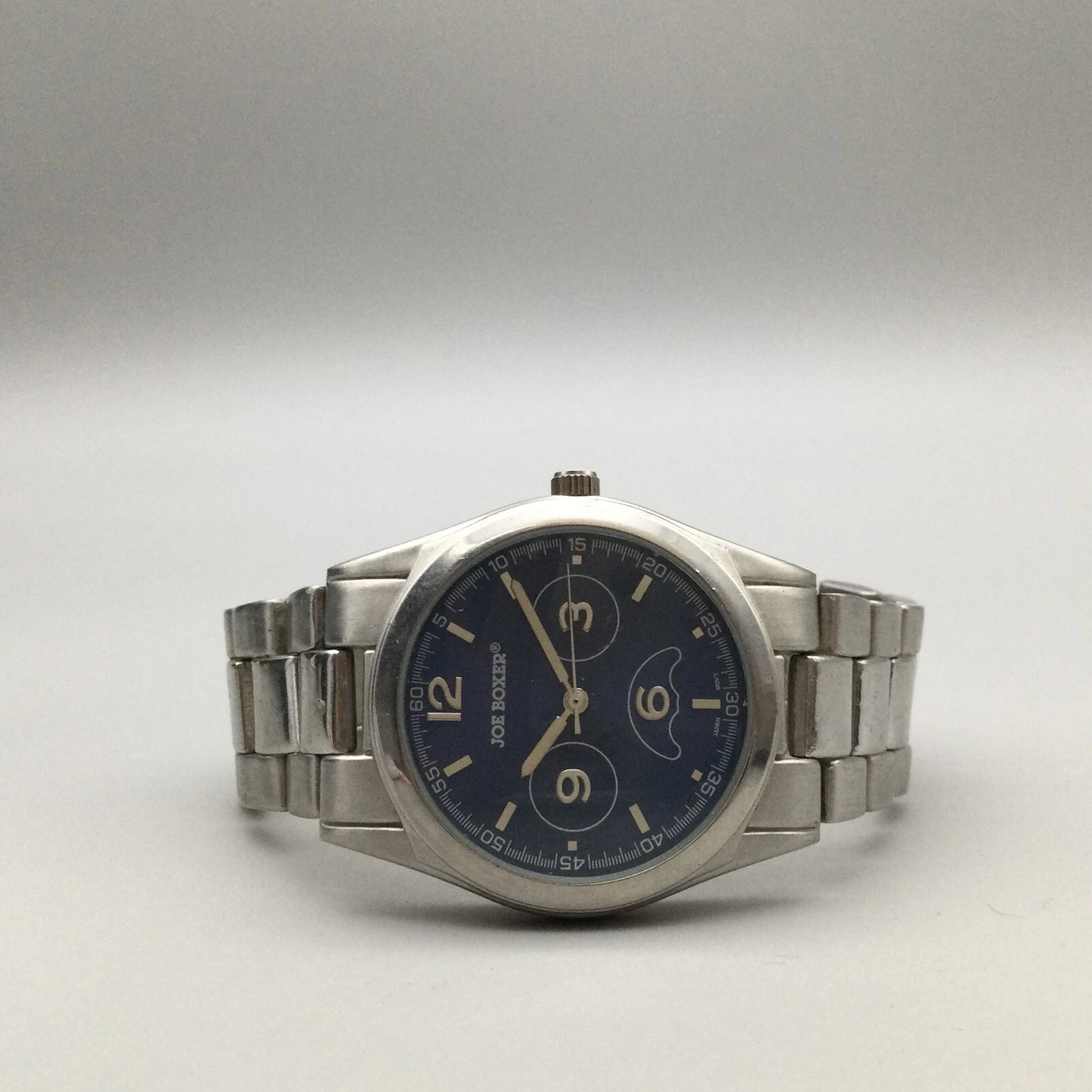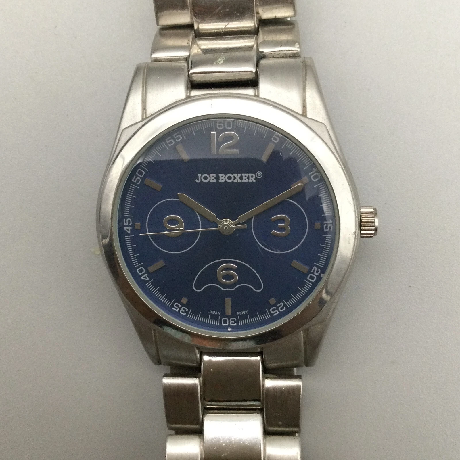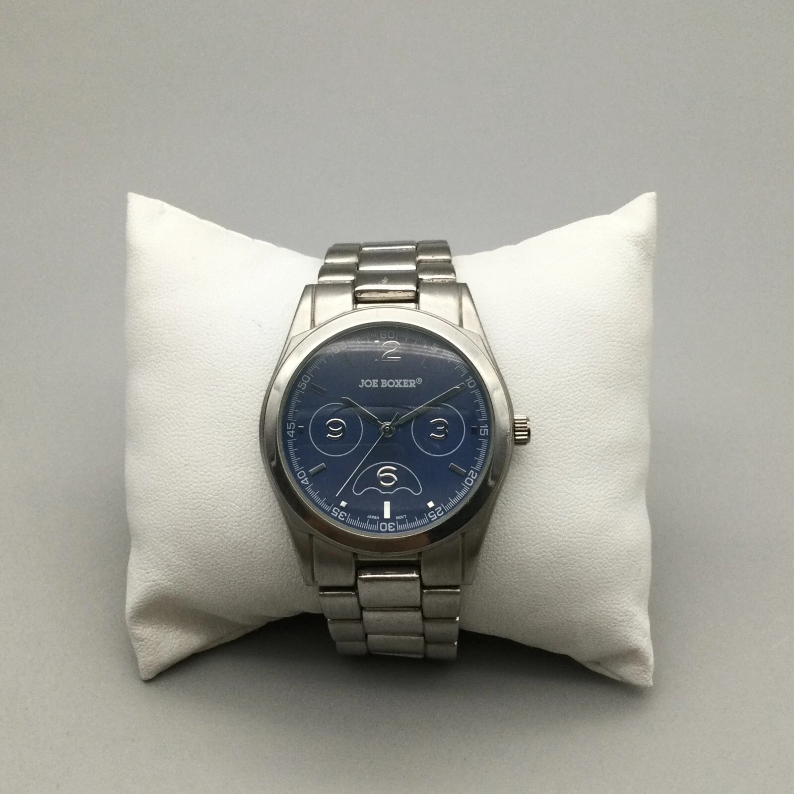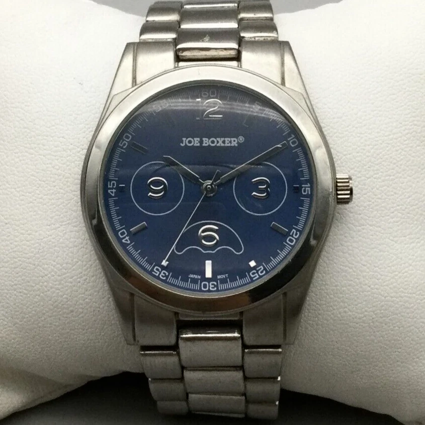 Joe Boxer Watch Men 38mm Silver Tone Blue Dial New Battery 7"