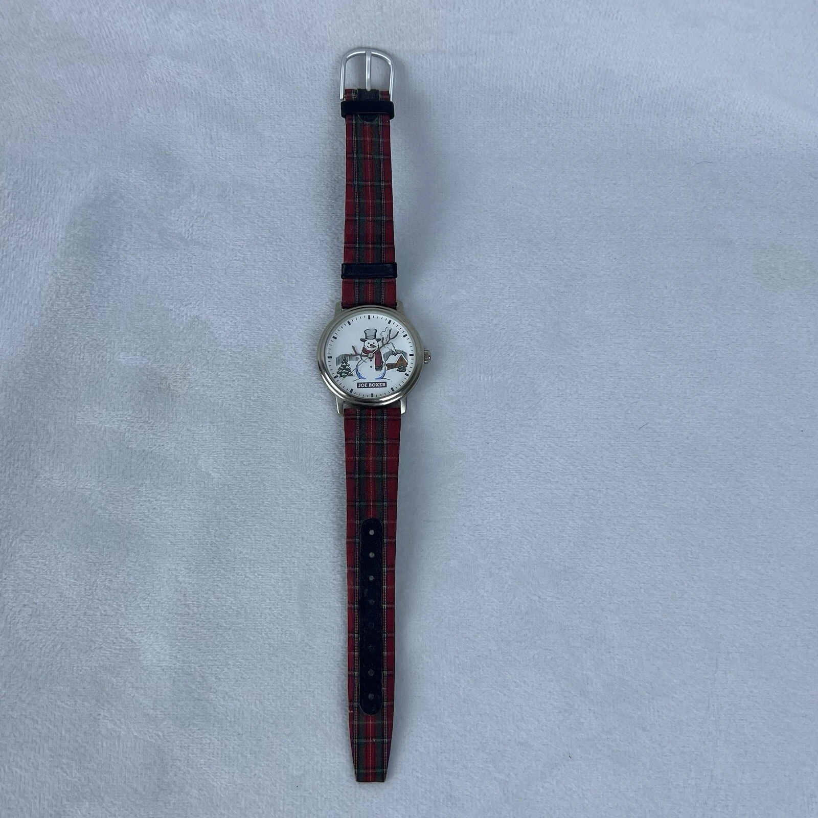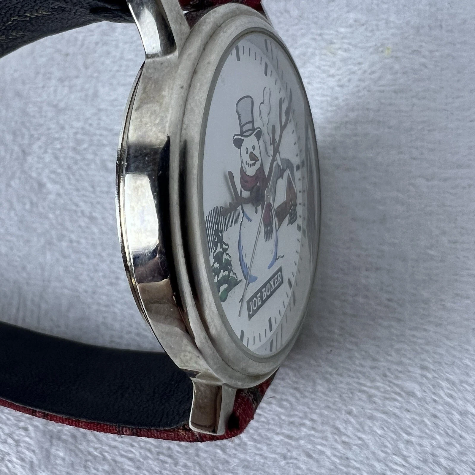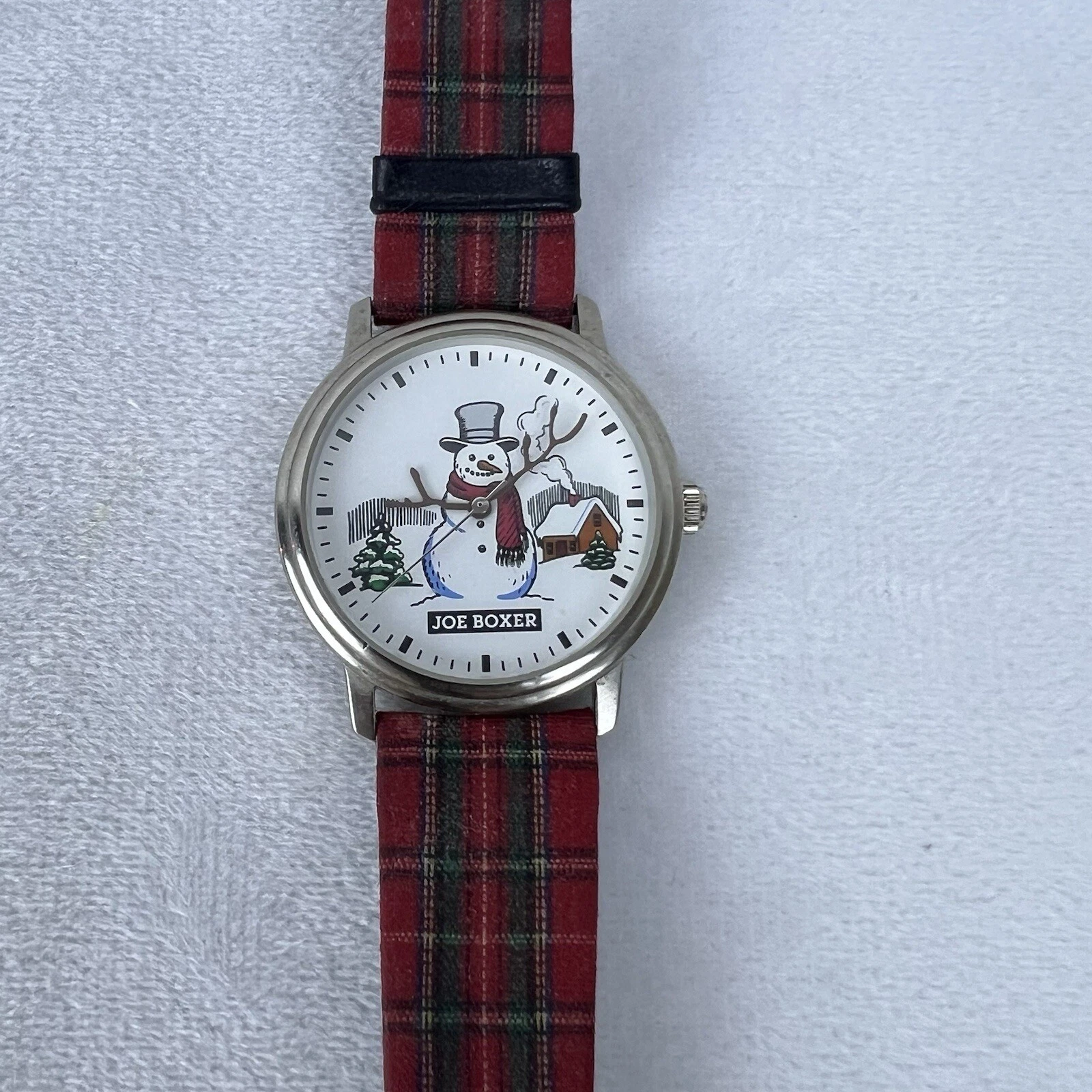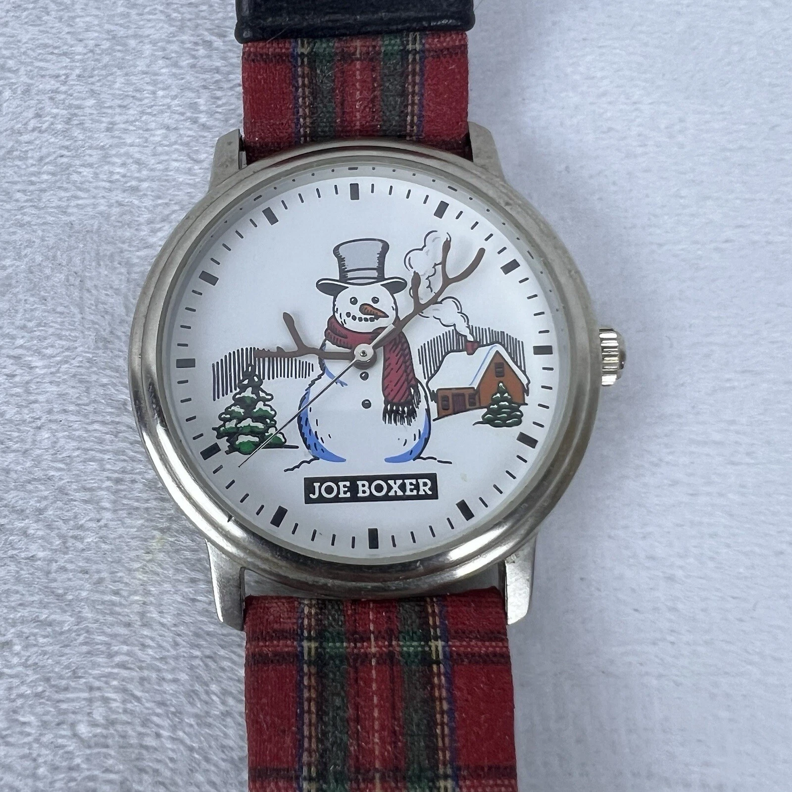 Vintage Joe Boxer Christmas Snowman Plaid Watch Leather Band Battery Needed