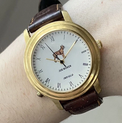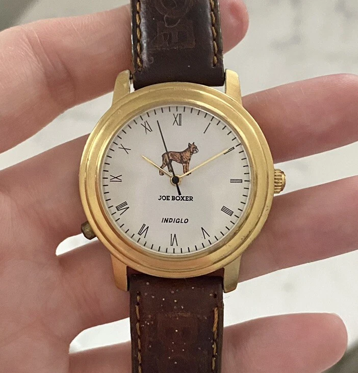 Vtg JOE BOXER Boxers Dog Backlight Men's Watch 90's Leather