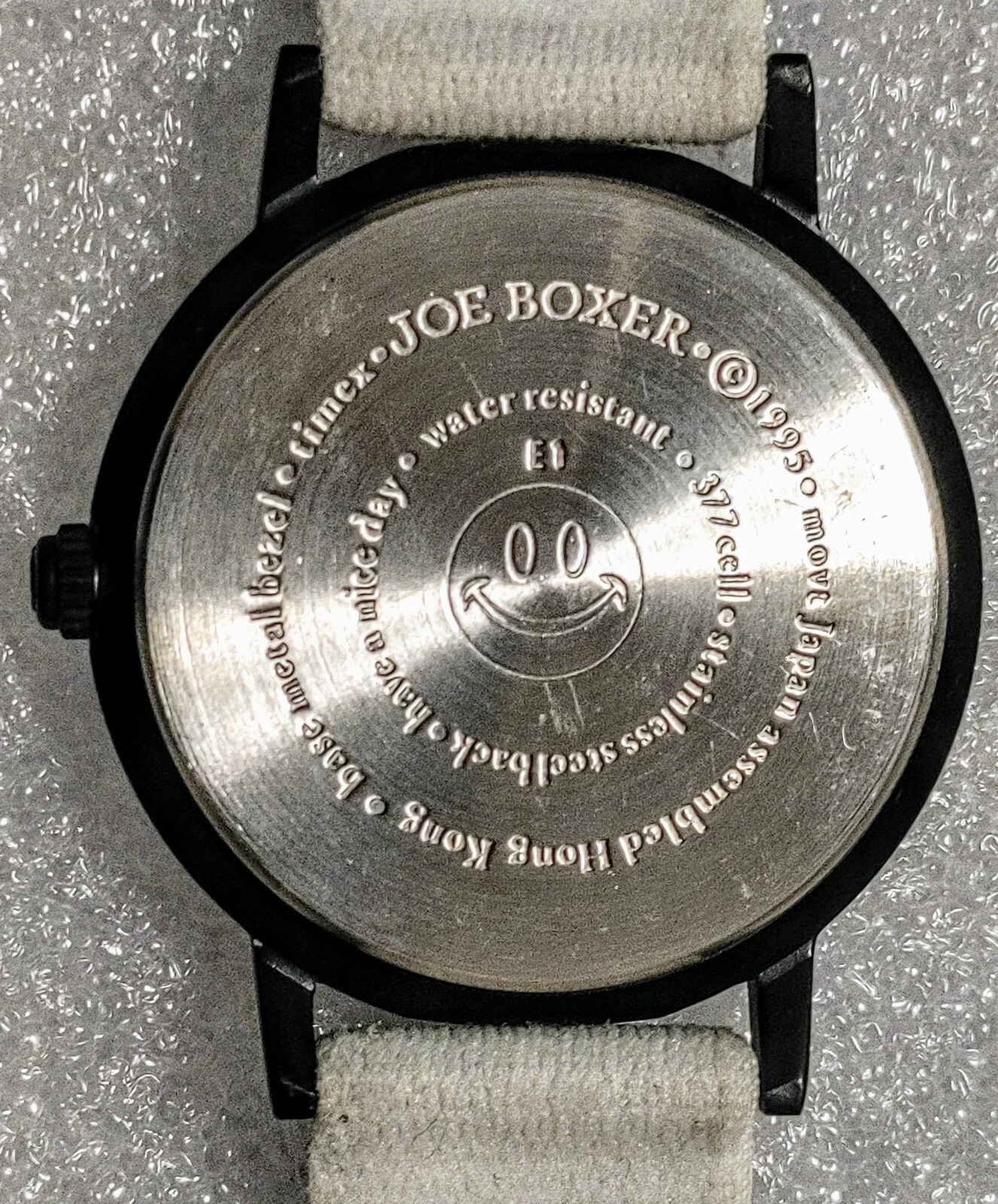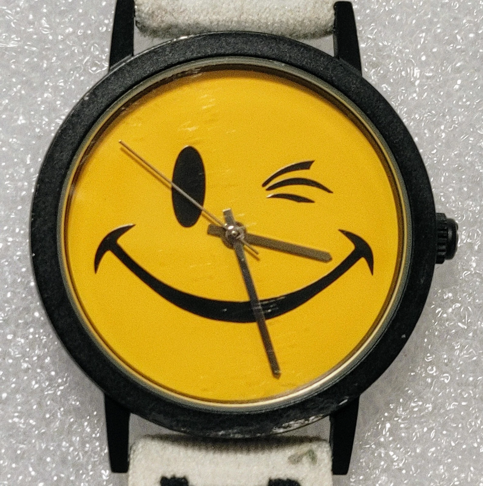 Vintage JOE BOXER ©1995 "Winking" Happy Face Watch RARE White band WORKS