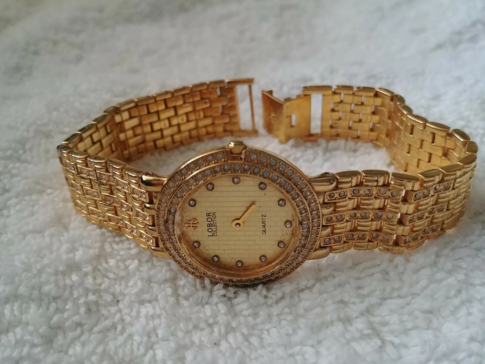 LOBOR Collection Women's Gold Plated Swarovski Crystal Date Watch LB8489