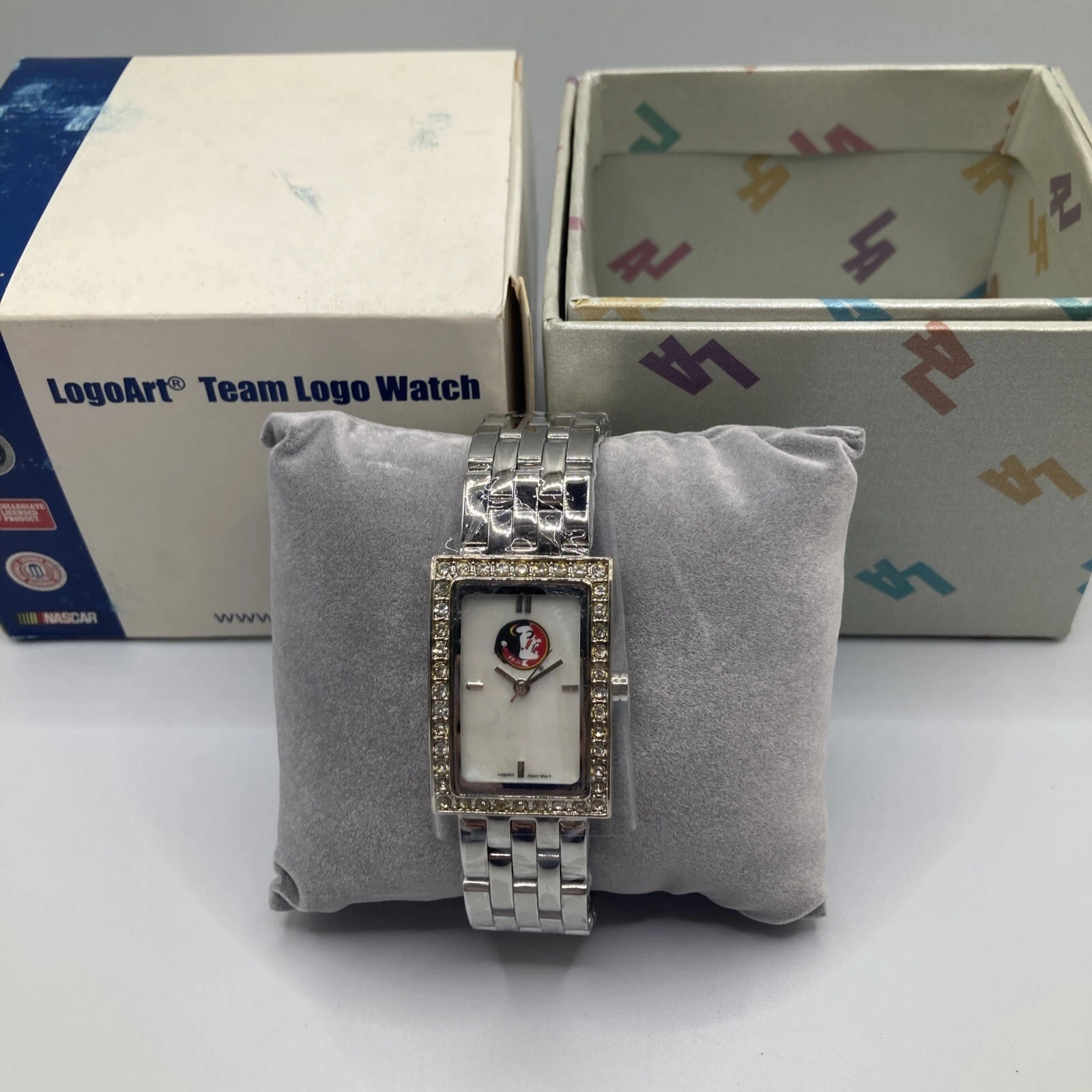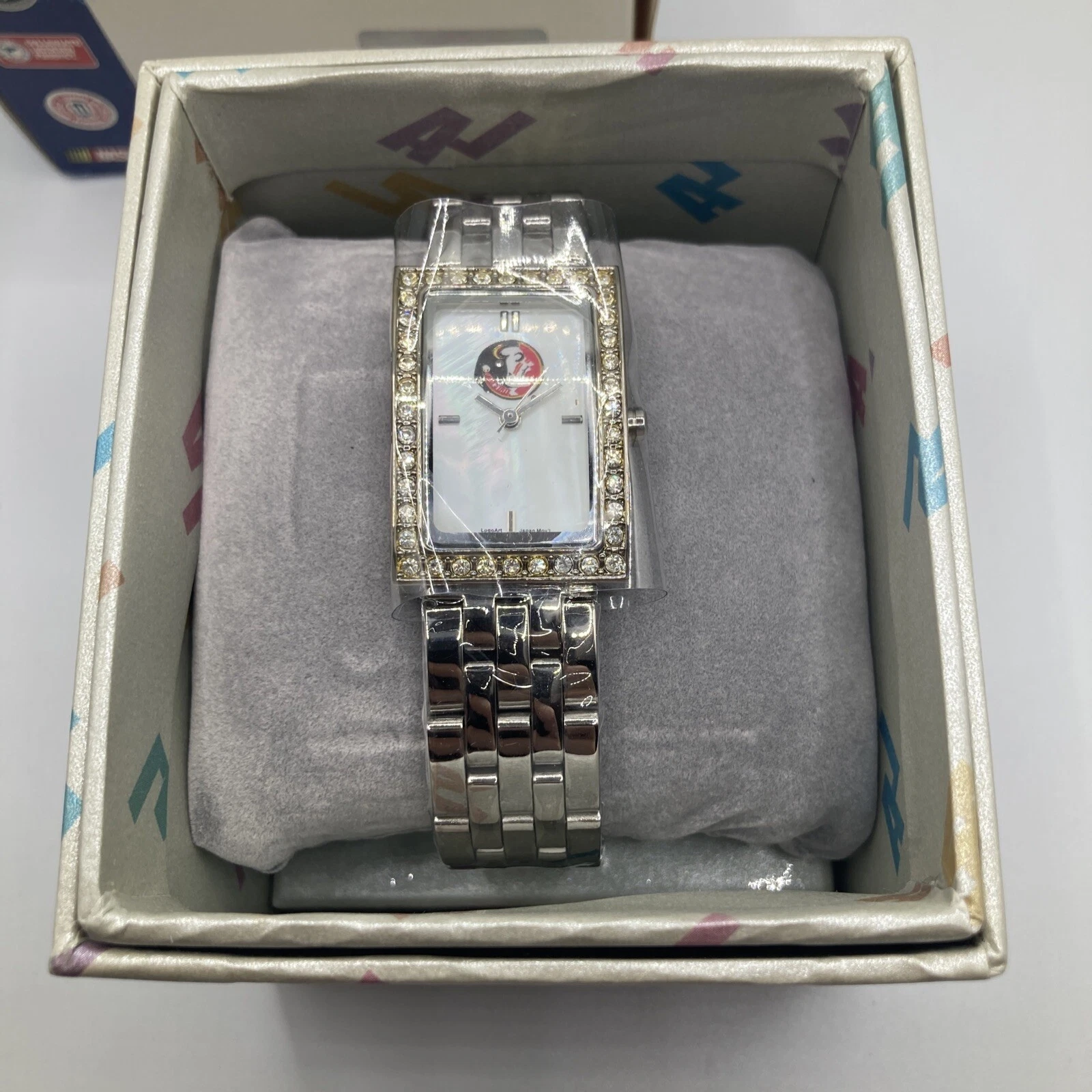 Florida State Seminole Ladies 22mm Watch Silver Tone Stone Rectangle MOP - NEW