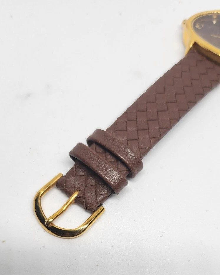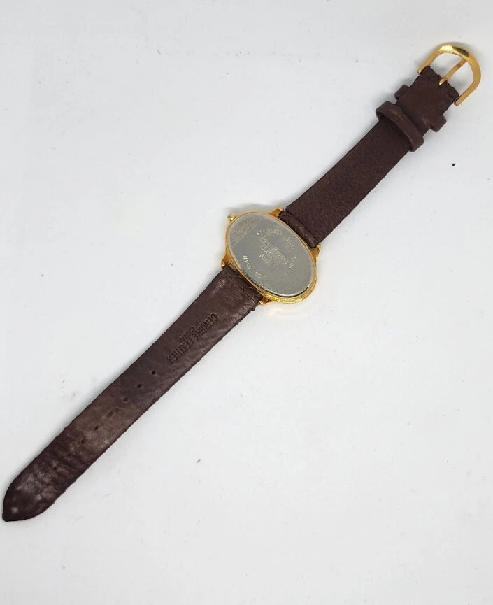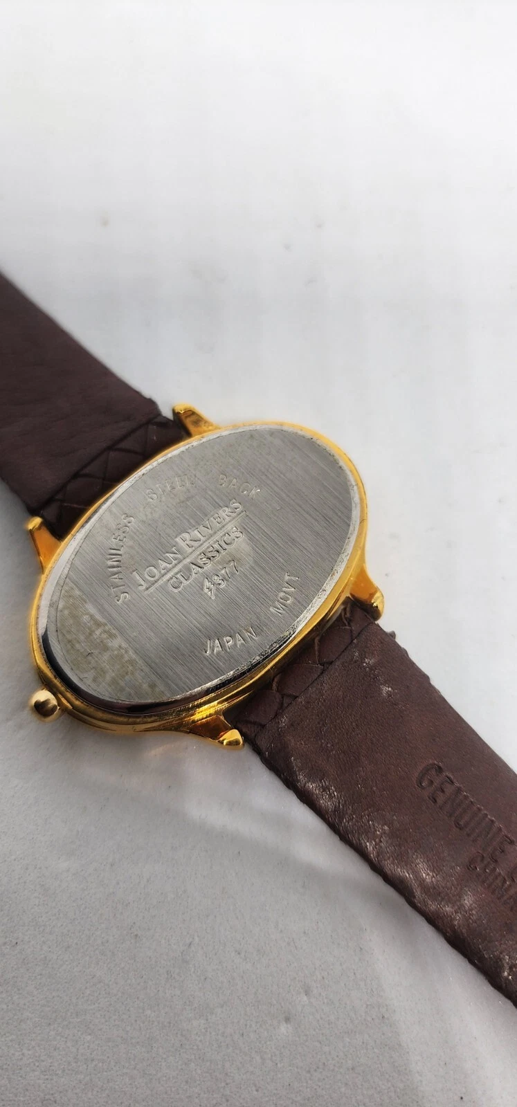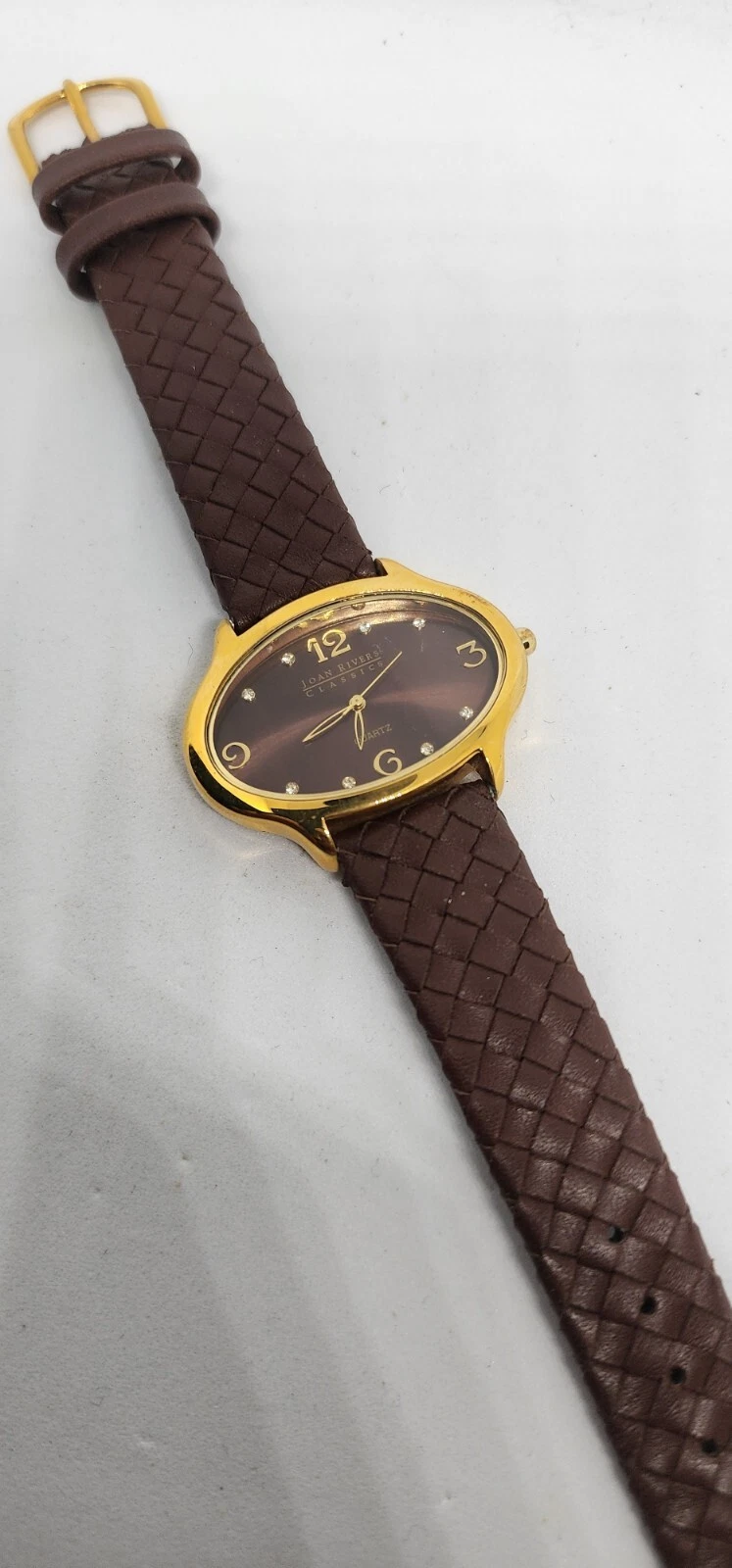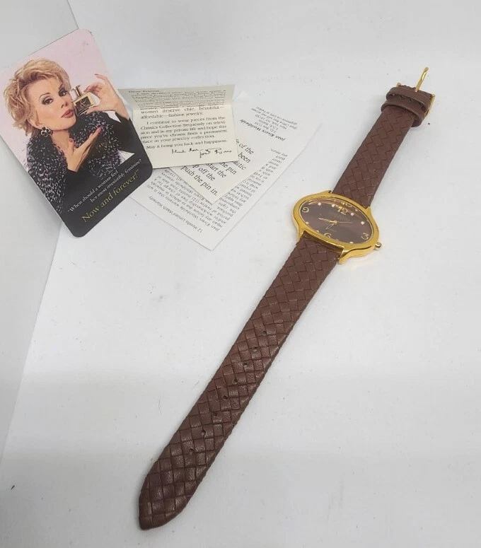 Vintage Joan Rivers Watch Women Gold Tone Oval Brown Leather Band