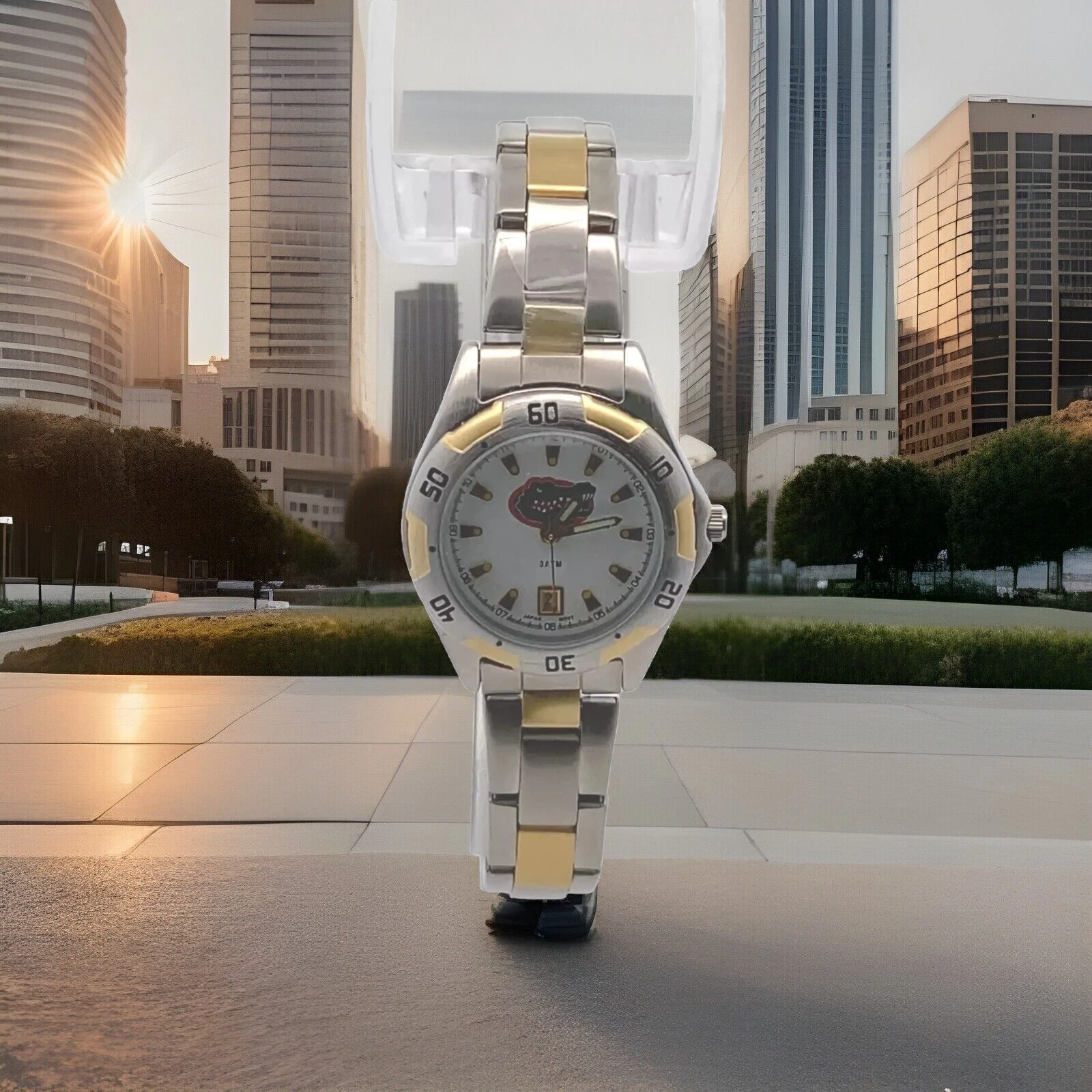 Unisex LogoArt Two-Tone Florida Gators Stainless Steel 29mm Wrist Watch w Box UF