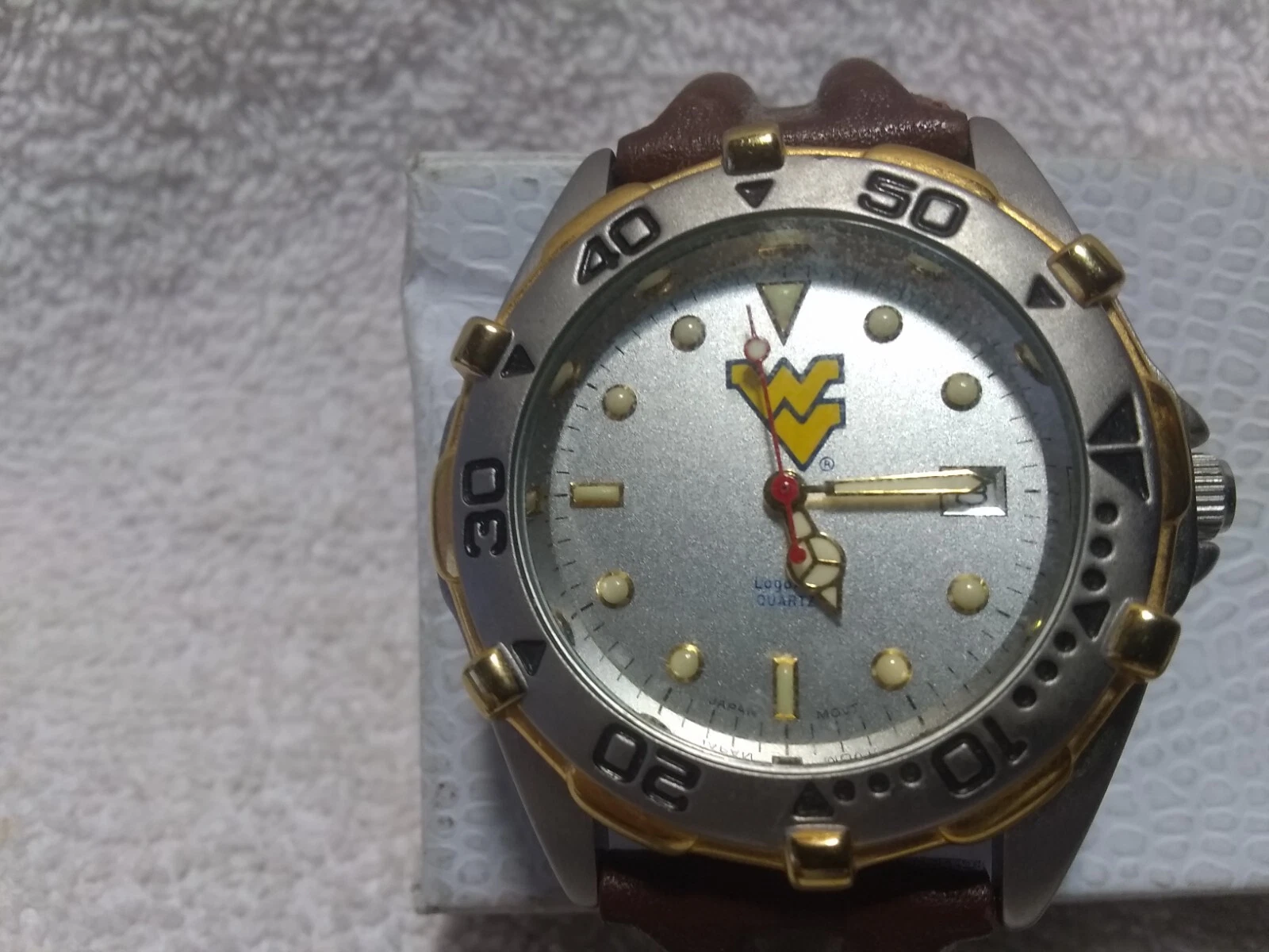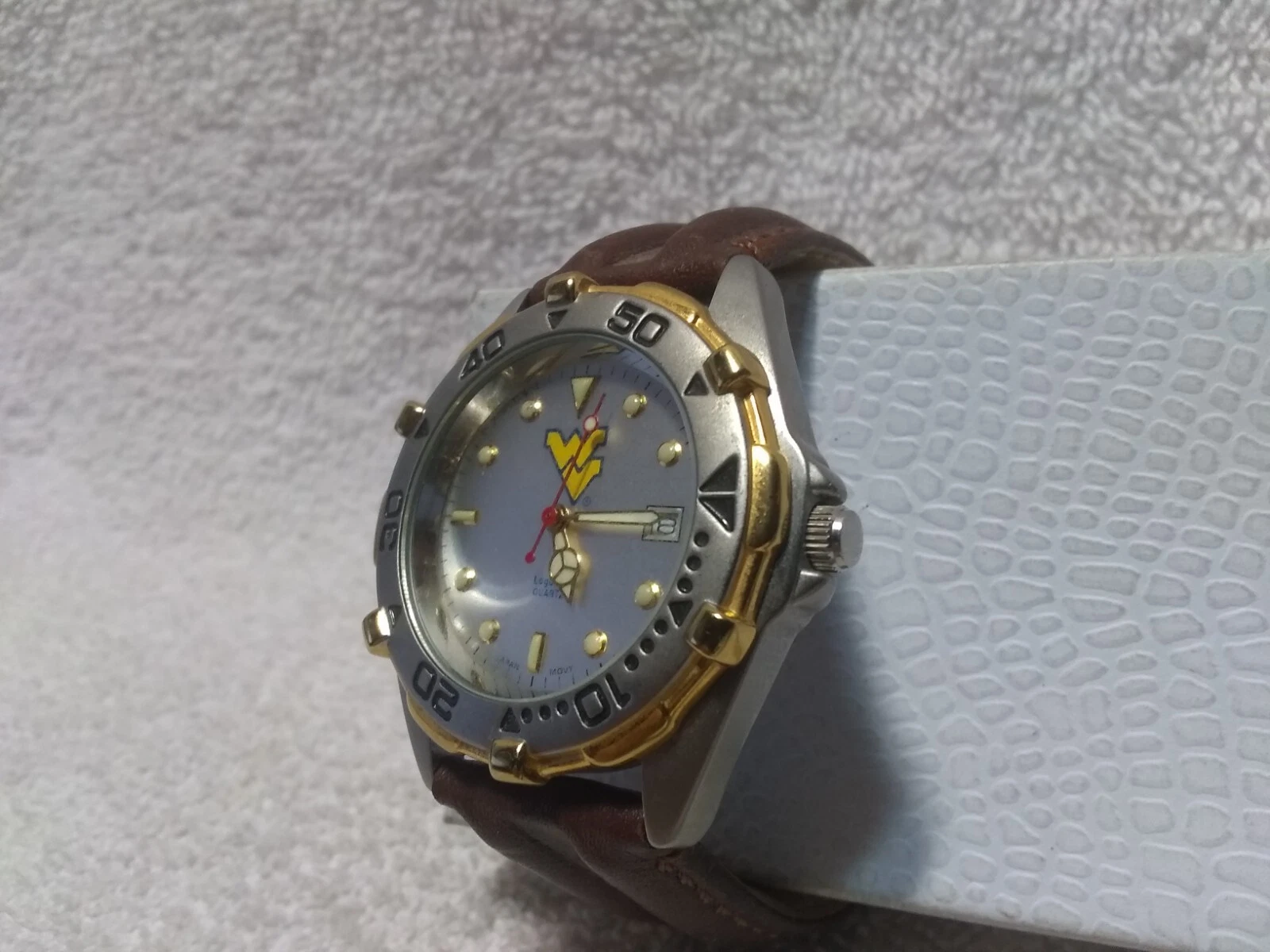Logoart West Virginia Quartz High Quality Watch Date Rot Bez Leather New Bat EC