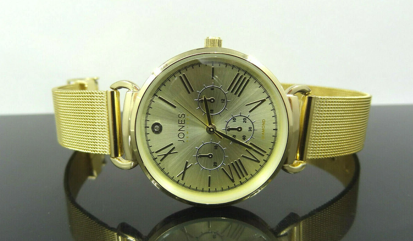 Jones New York JNYS12671 Diamond Collection Gold Tone Mesh Band Women's Watch