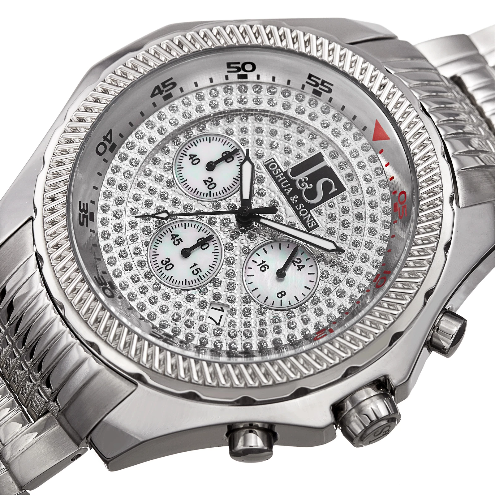 Joshua & Sons Js-43-ss Chronograph Date GMT MOP Subdials Silvertone Mens Watch