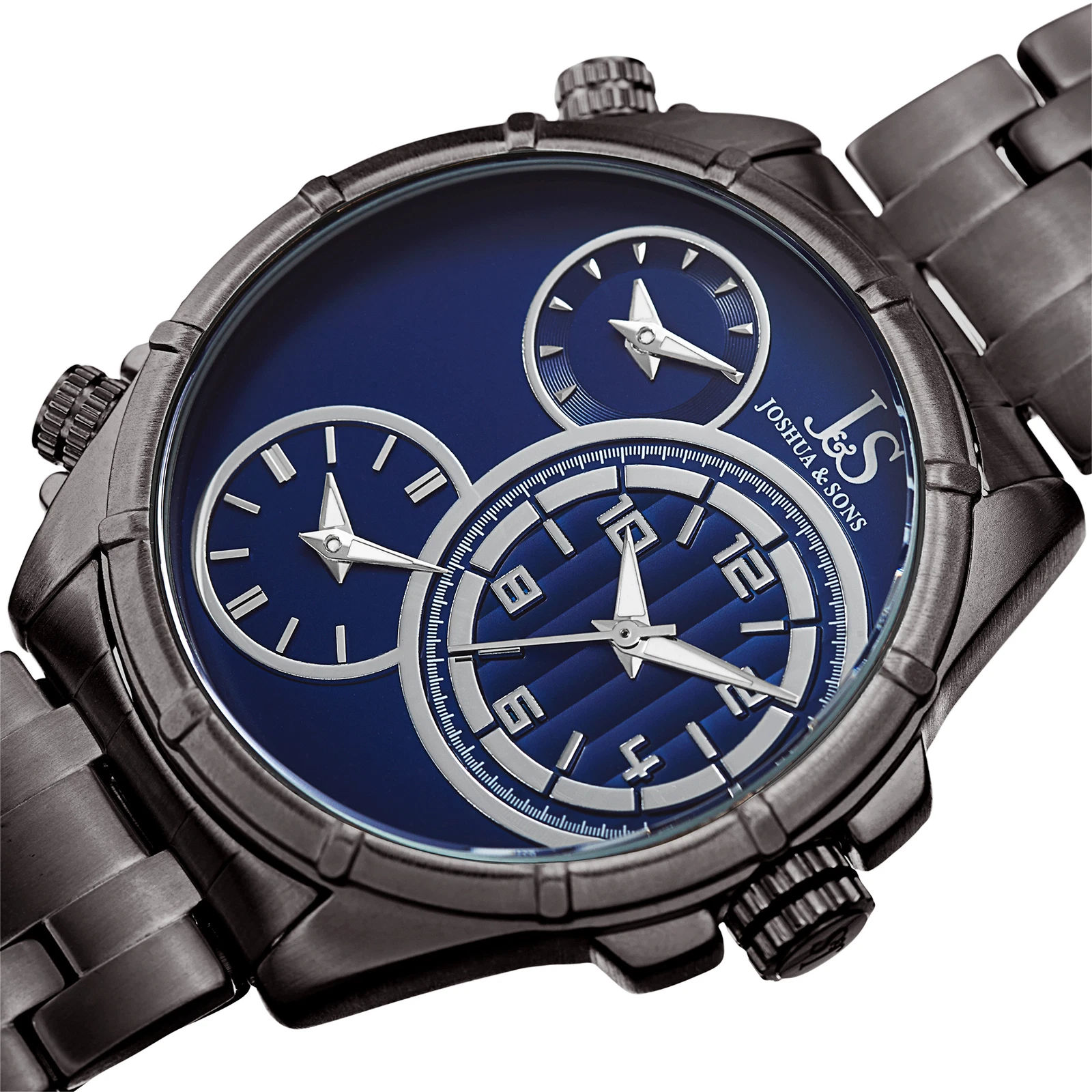 Men's Joshua & Sons JX128GNBU Triple Time Zone Stainless Steel Bracelet Watch