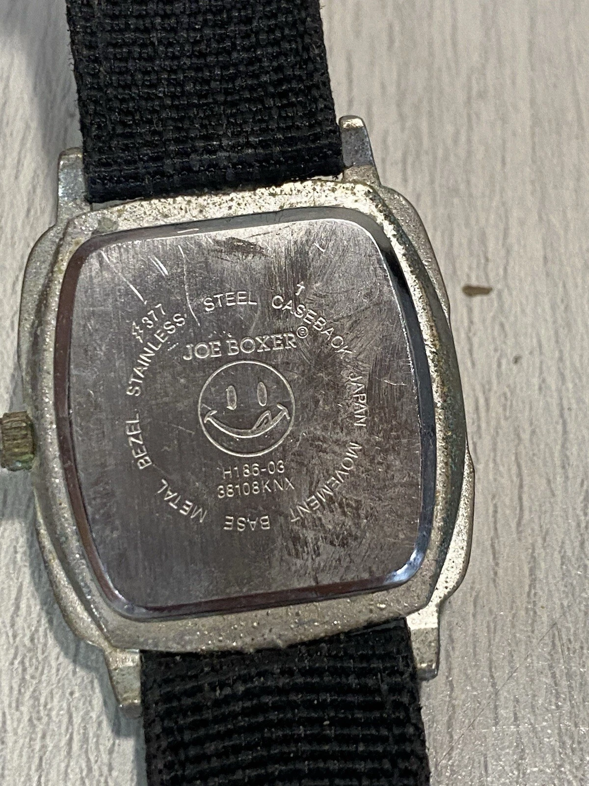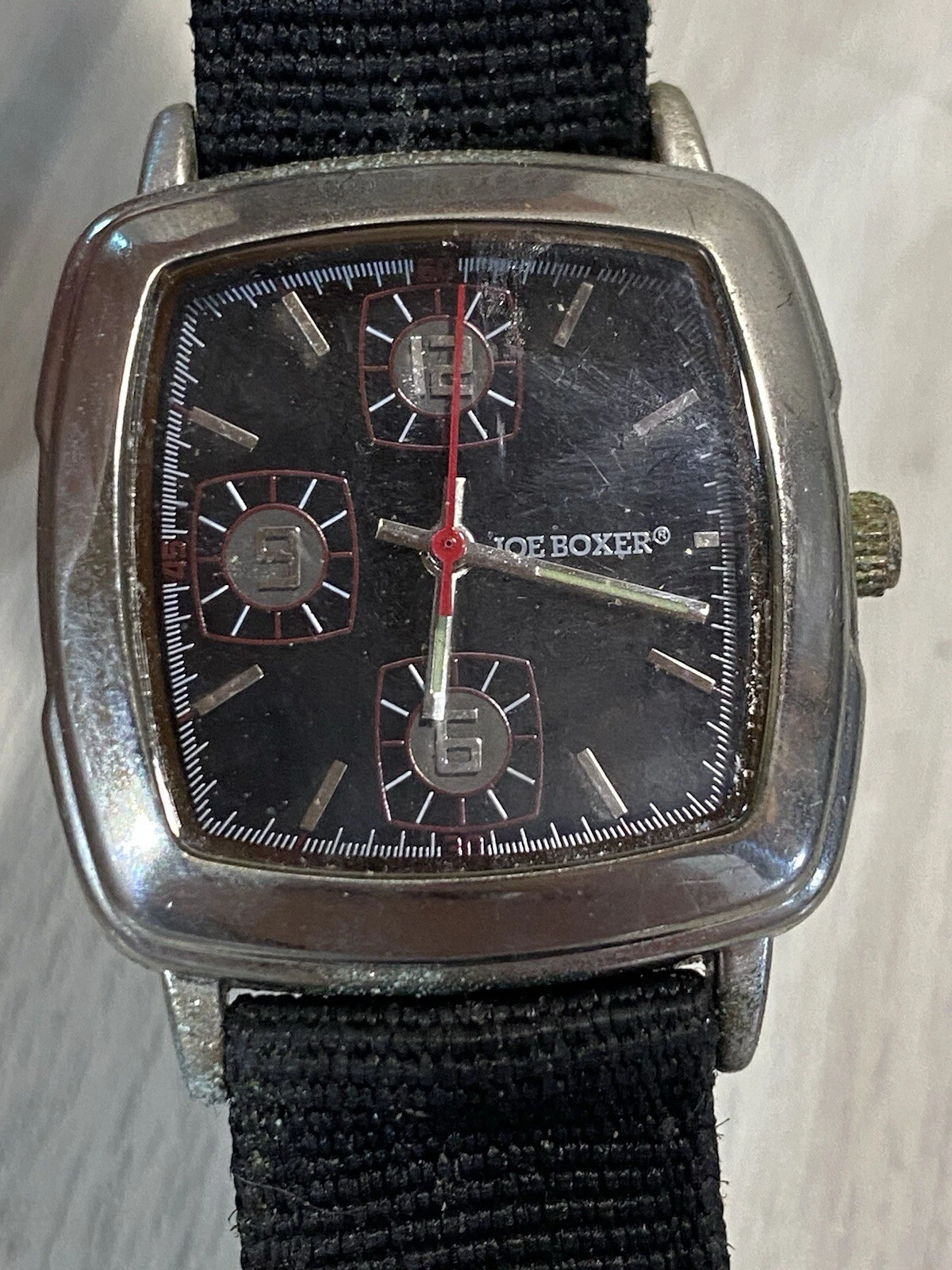 Vintage Joe Boxer Watch Mens Silver Tone Black Band