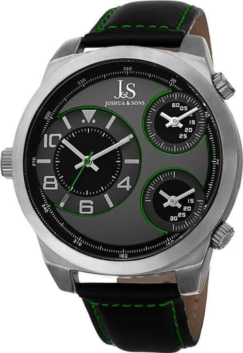 Joshua & Sons Men's JS88GN Silver Triple Time Zone Quartz Watch With Green Accen