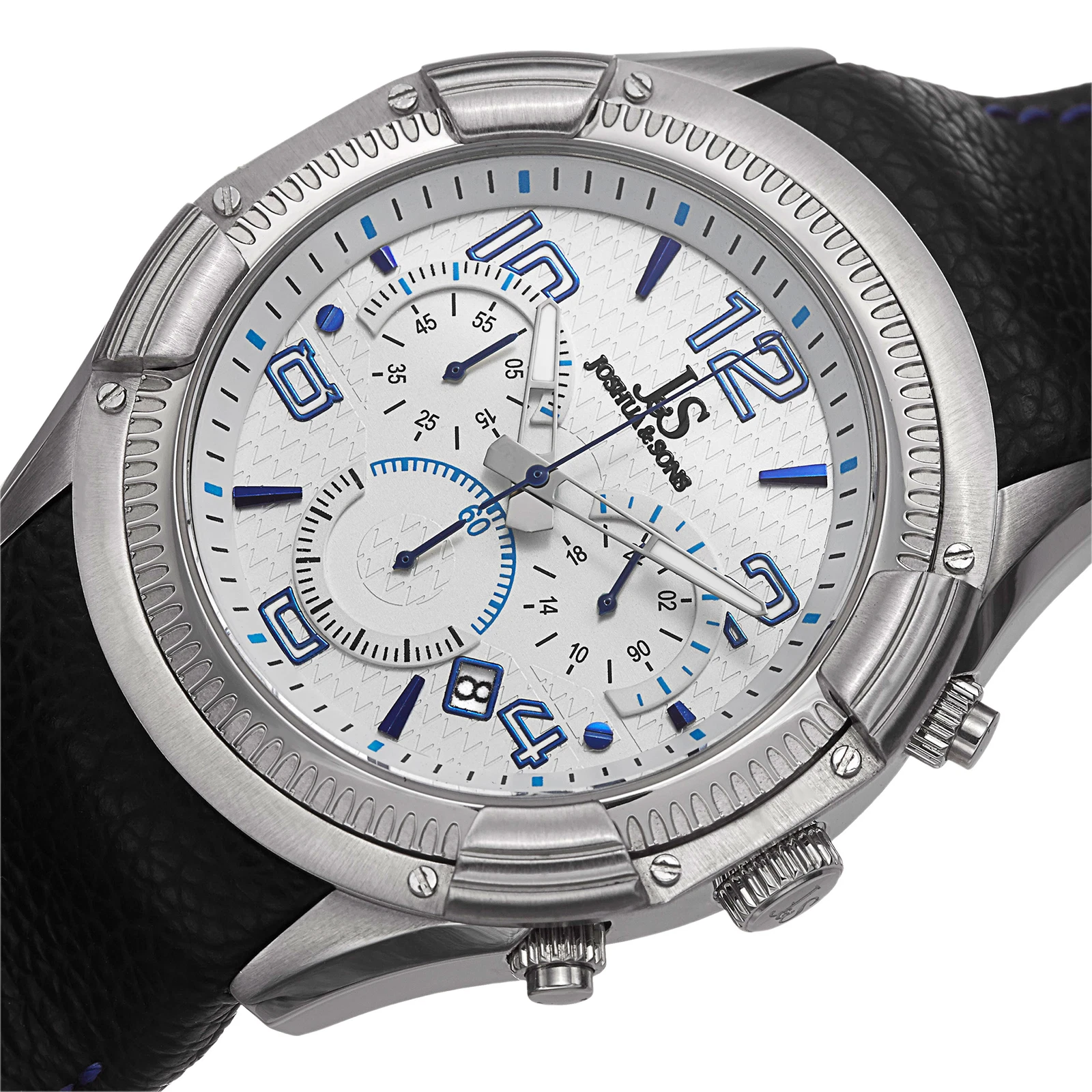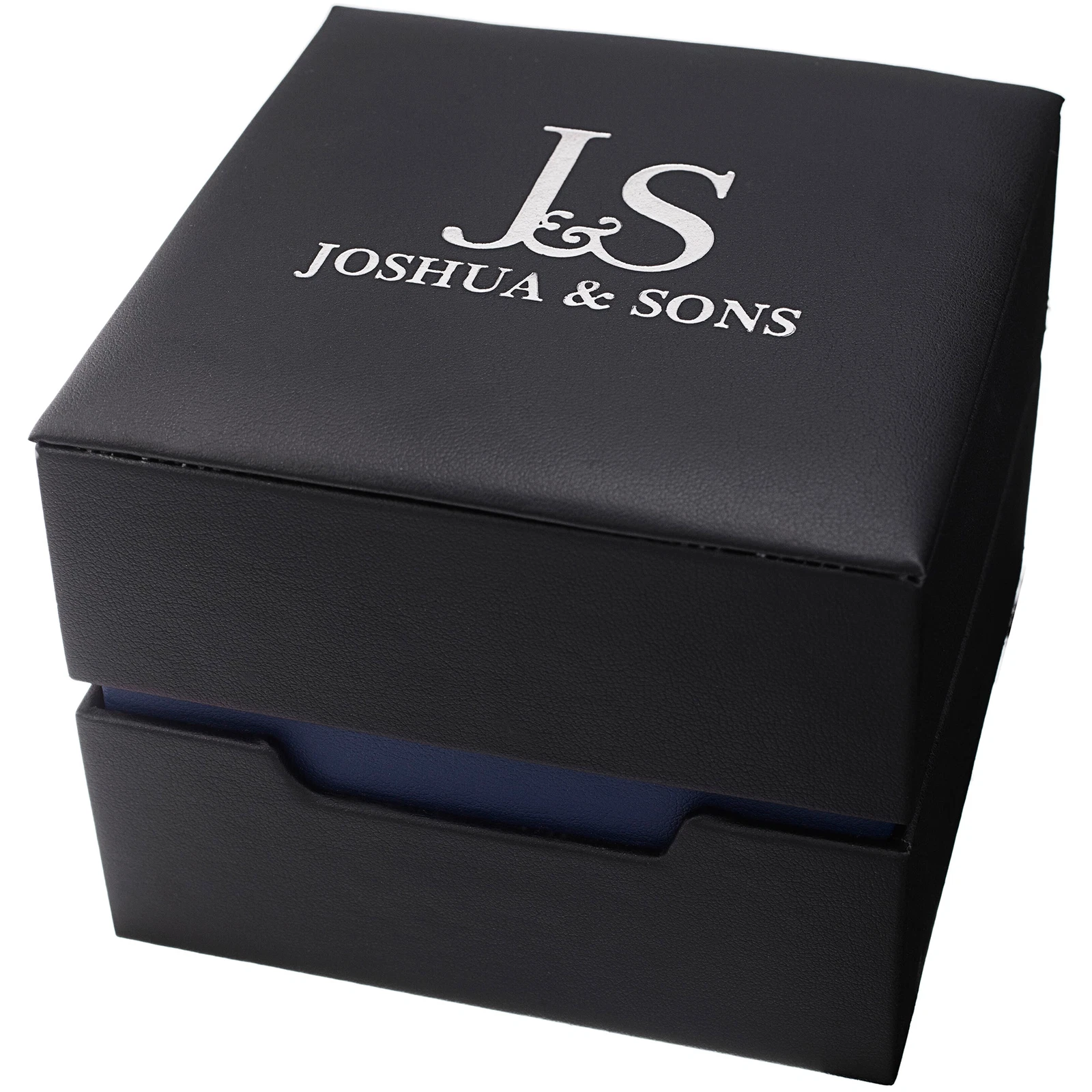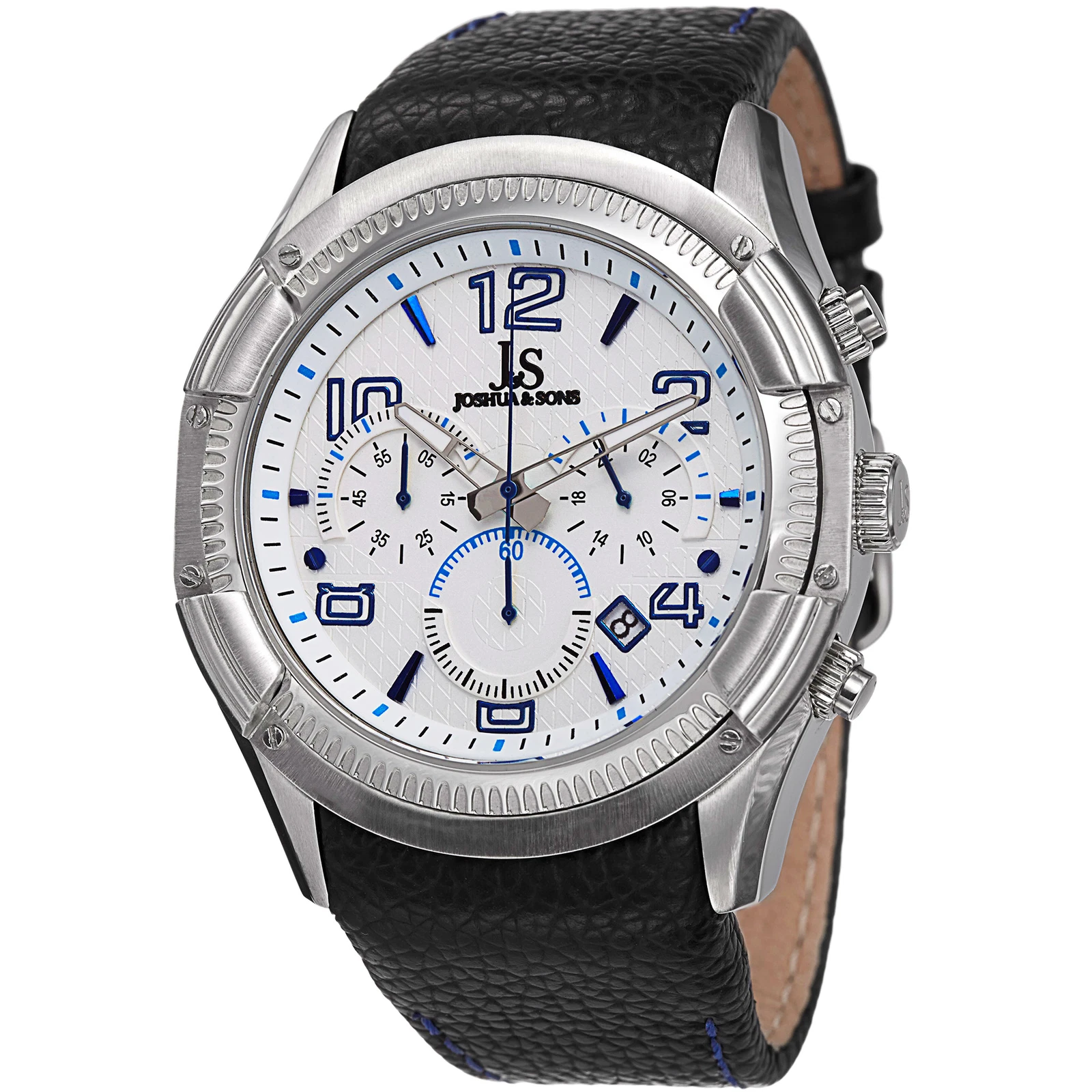 New Men's Joshua & Sons JS69BU Silver-tone Chronograph GMT Leather Strap Watch