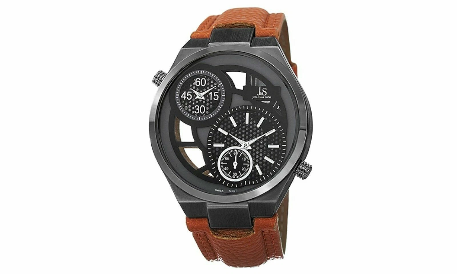 NEW Joshua & Sons JS76TN Mens Swiss Quartz Dual Time Black/Tan Leather Watch 10M