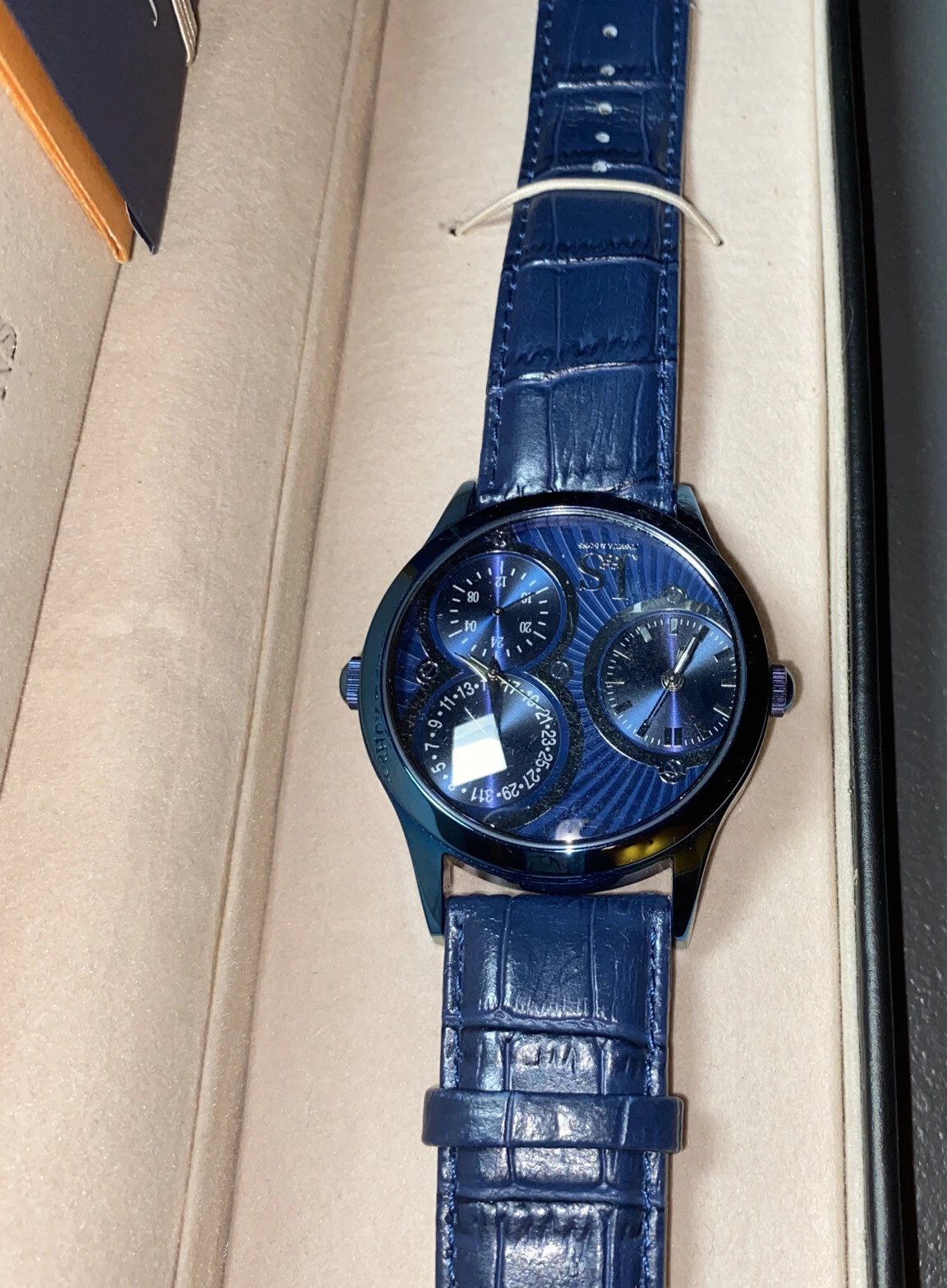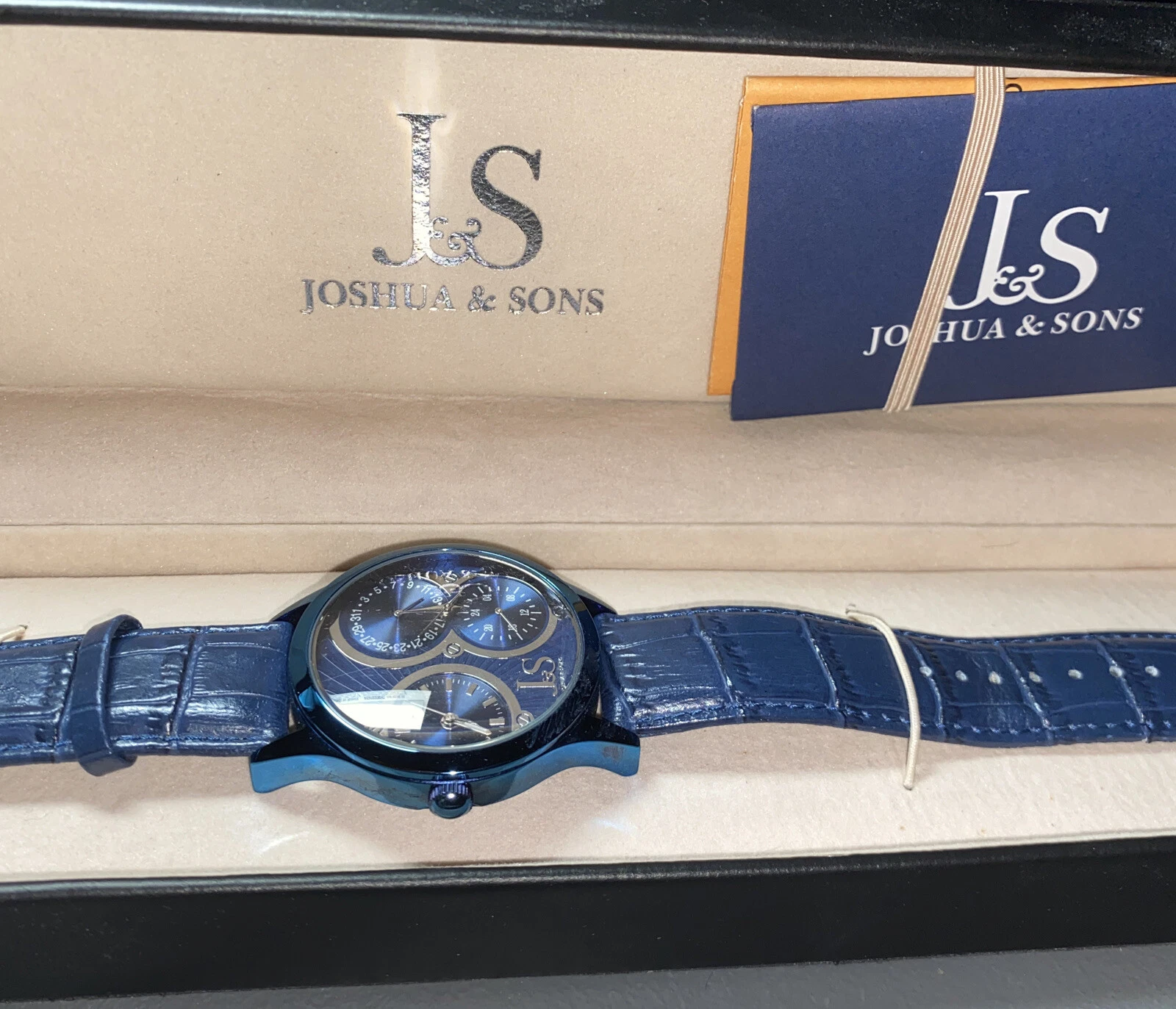 Joshua & Sons Automatic & Quartz Watch: 3 Time Zones Men Blue NWT