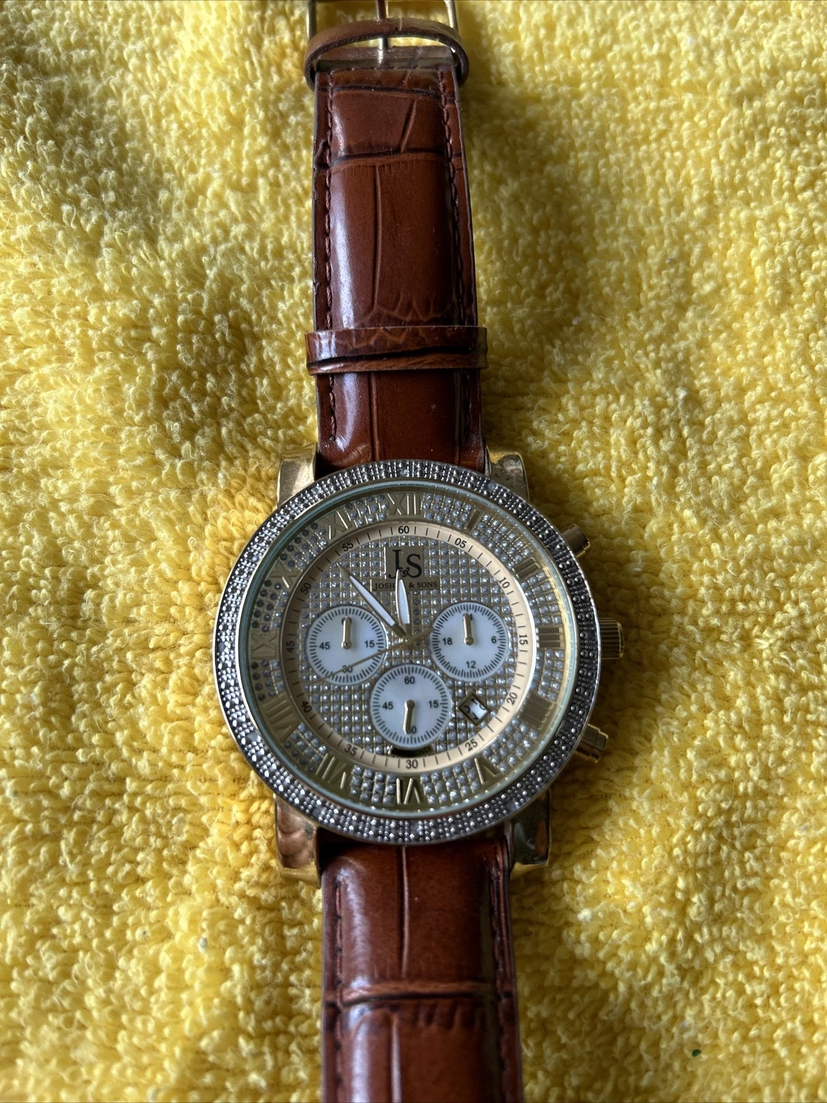 Brand: Joshua & Sons Men's Gold Dial Leather Band Watch - JS-28-03