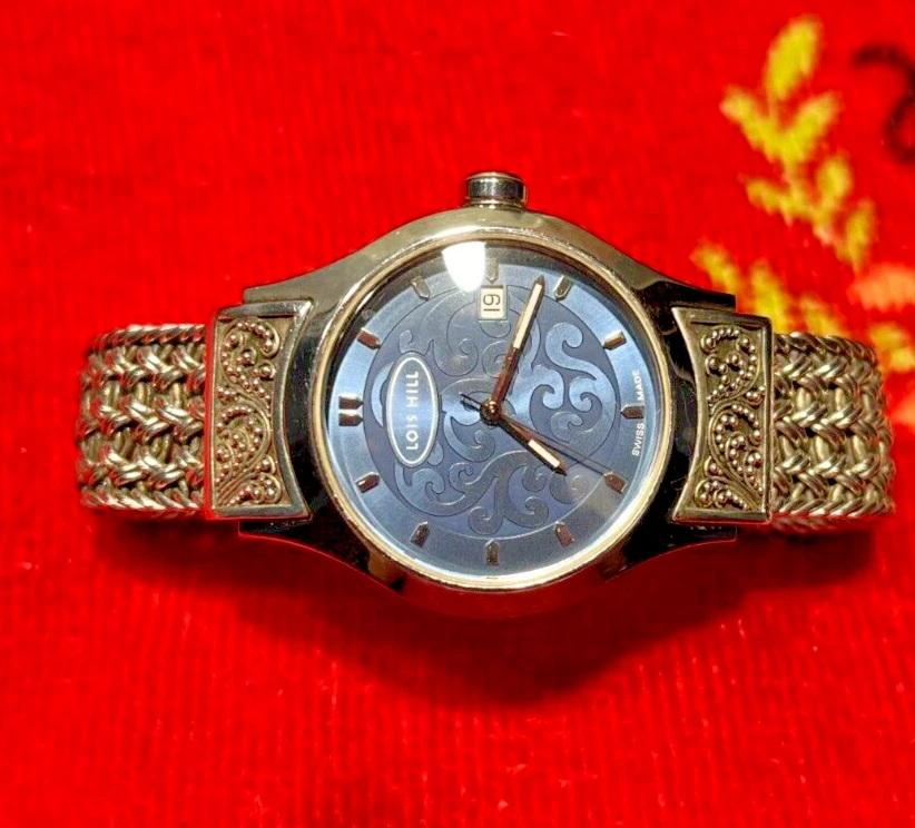 Vintage Lois Hill Sterling Silver Blue Face Wristwatch LH-0006 Swiss Movement NB