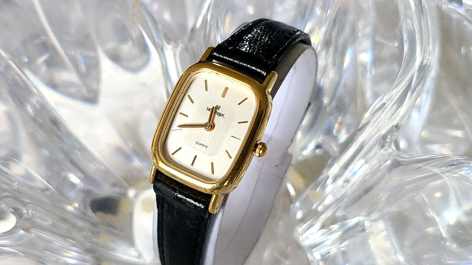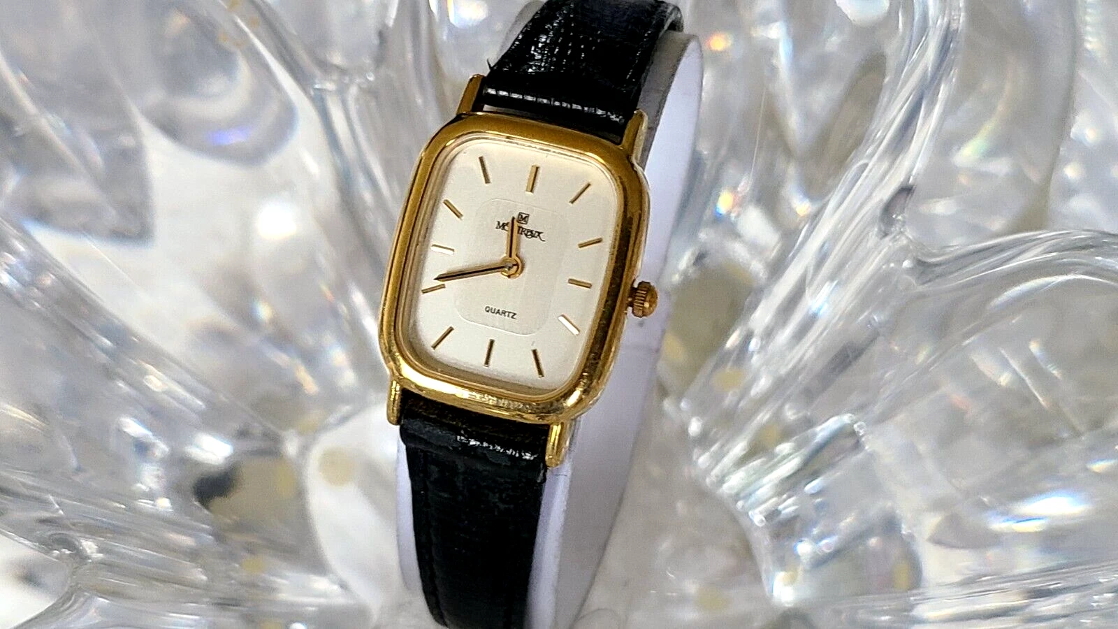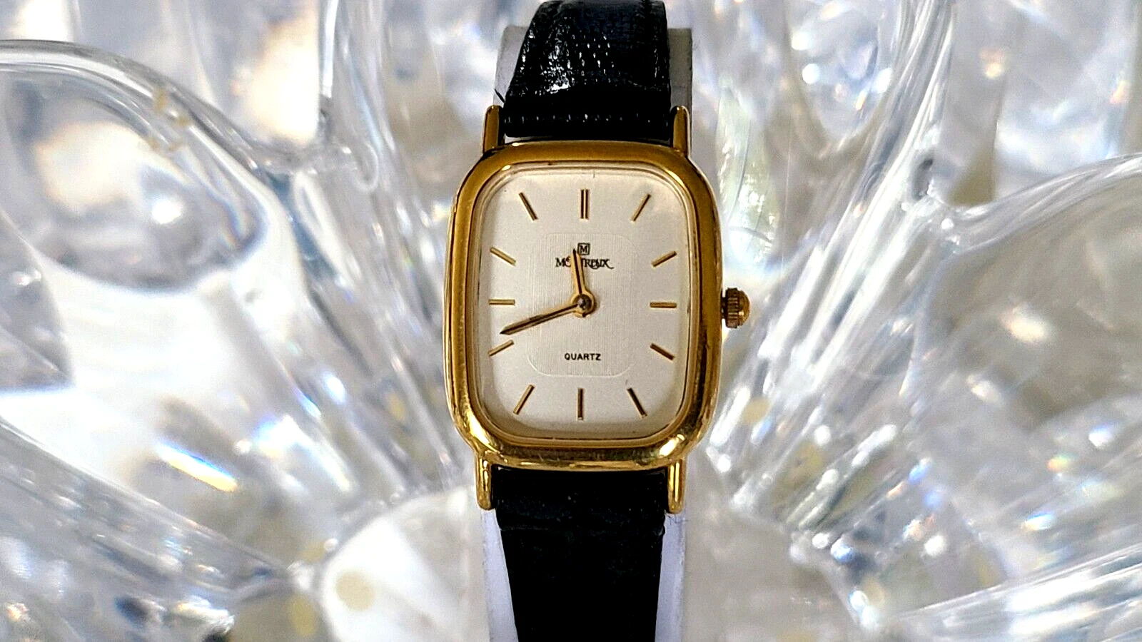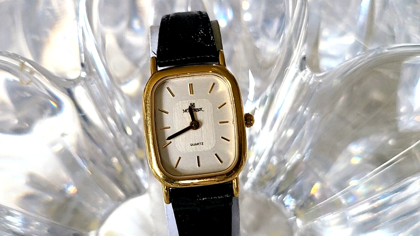 Montreux Jostens 7 jewels quartz Gold Tone Black Leather women's Watch (M62)