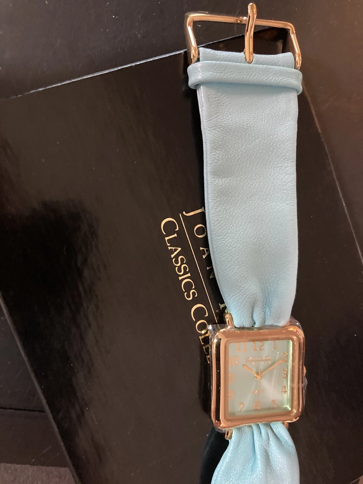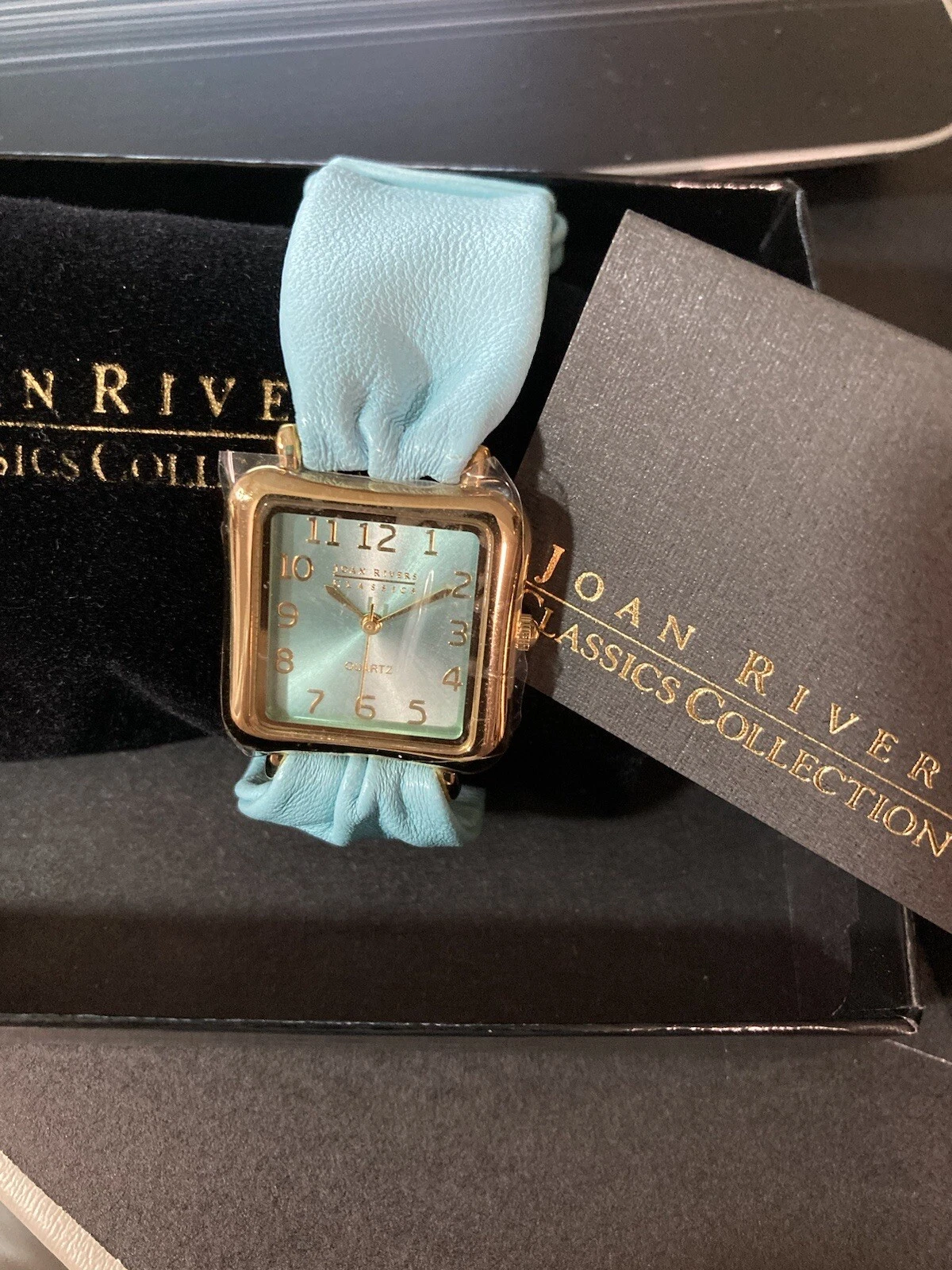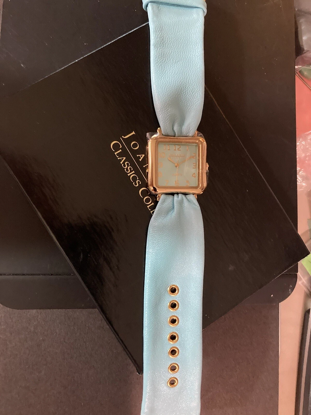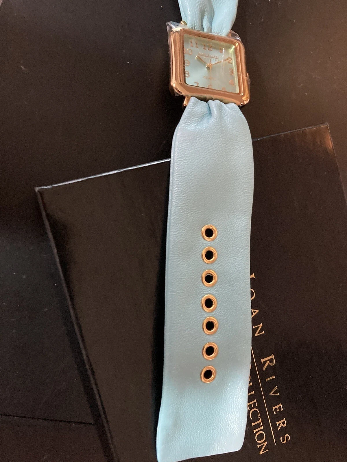 Joan Rivers Soft Pale Aqua Leather Band Watch Gold Tone Quartz