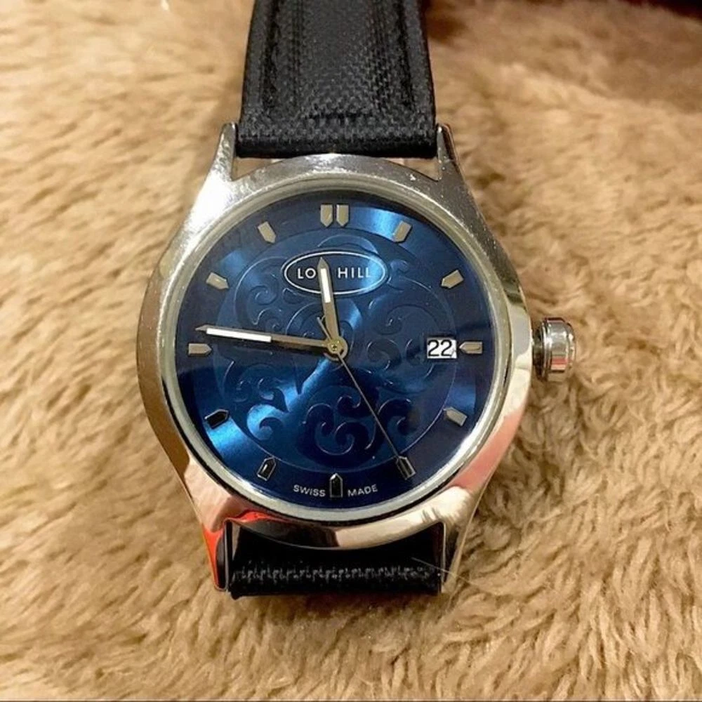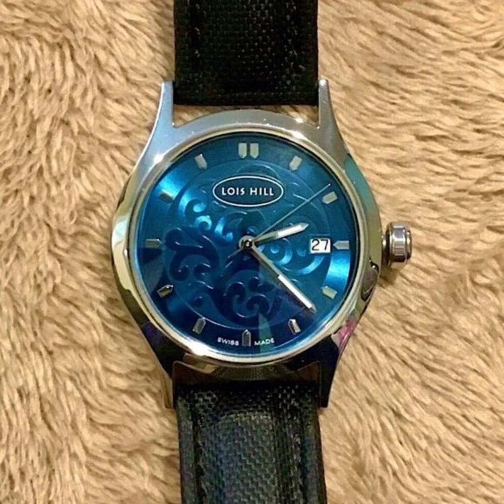 LOIS HILL Swiss Watch Blue Face Black Leather Band