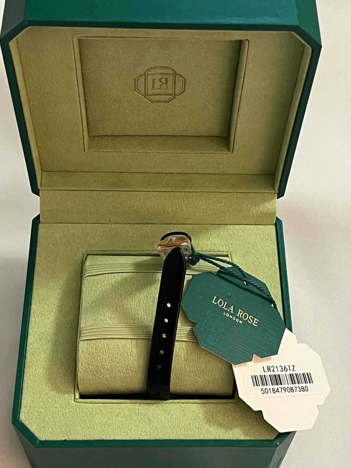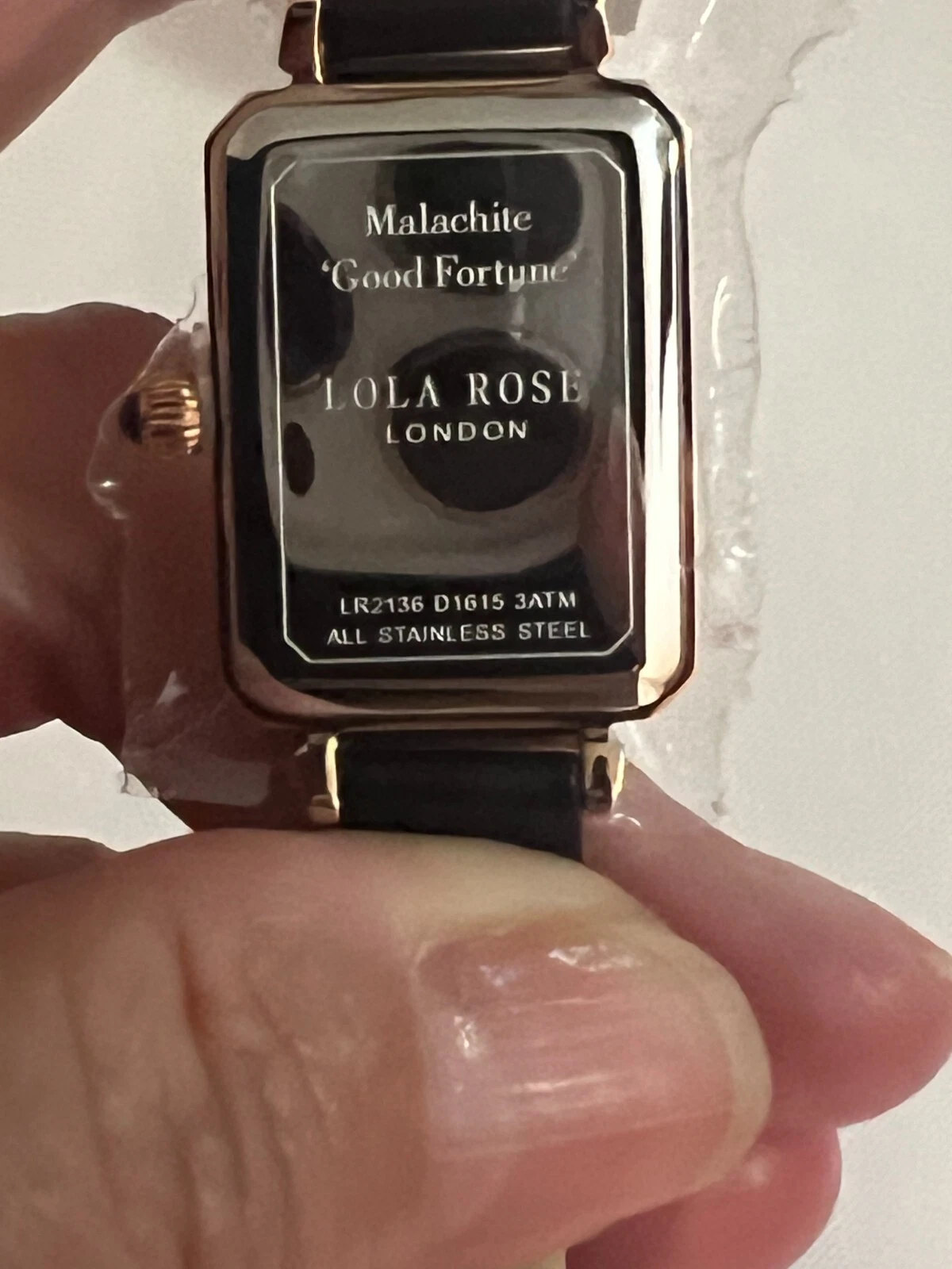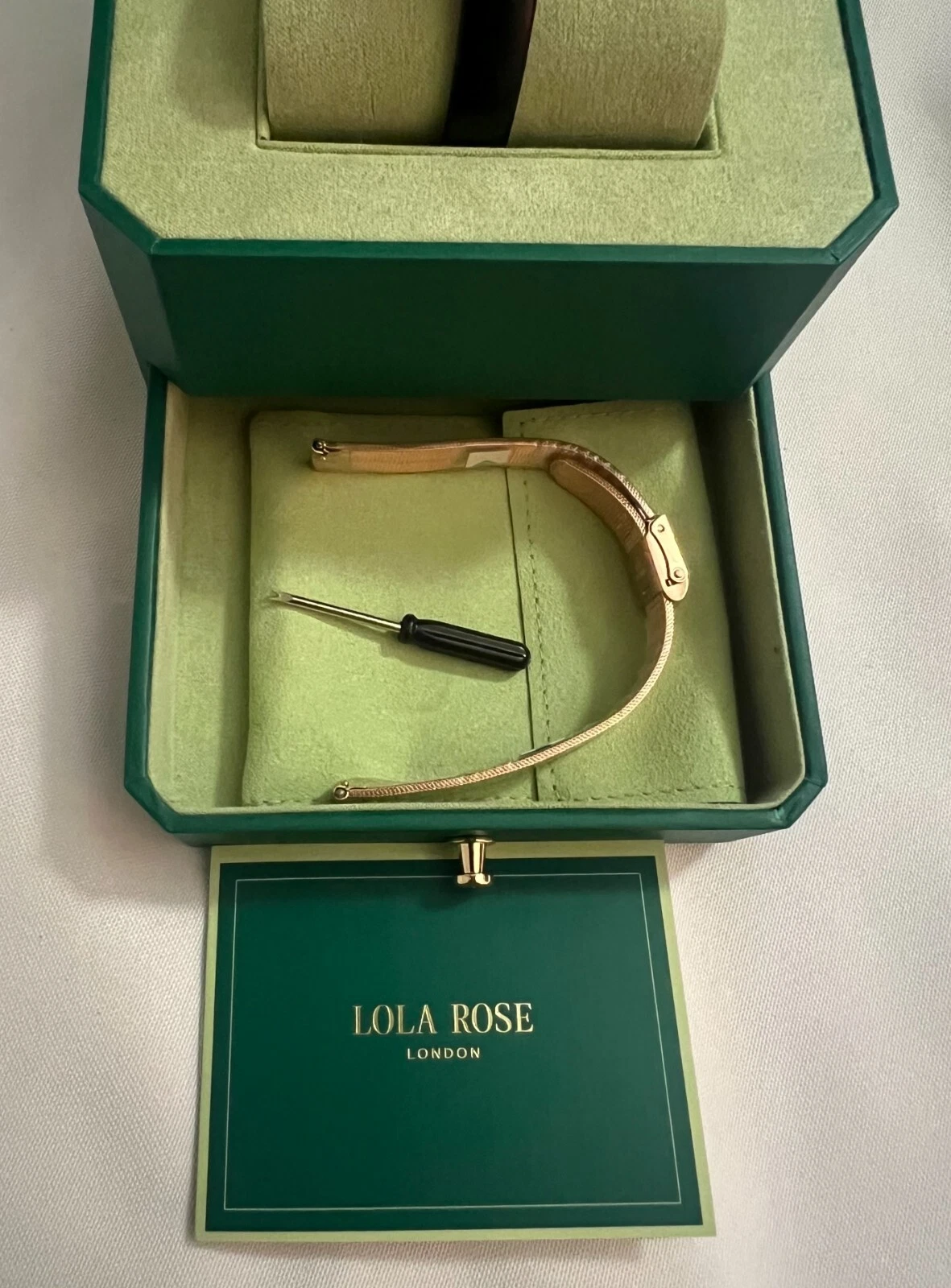 Lola Rose Gold Black Band Malachite Textured Watch w/ extra Metal Strap