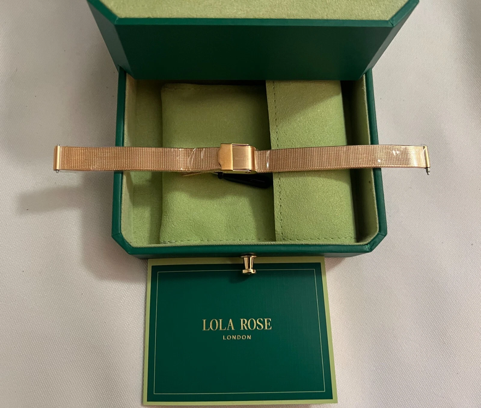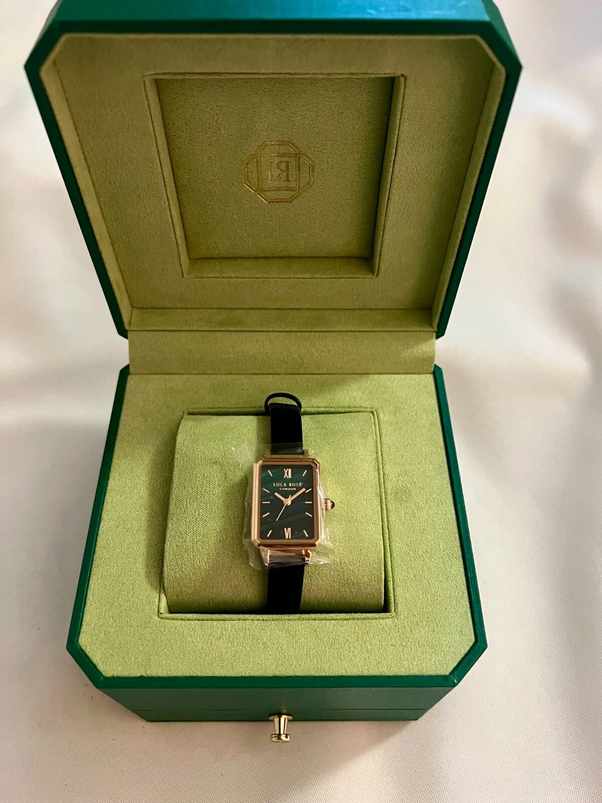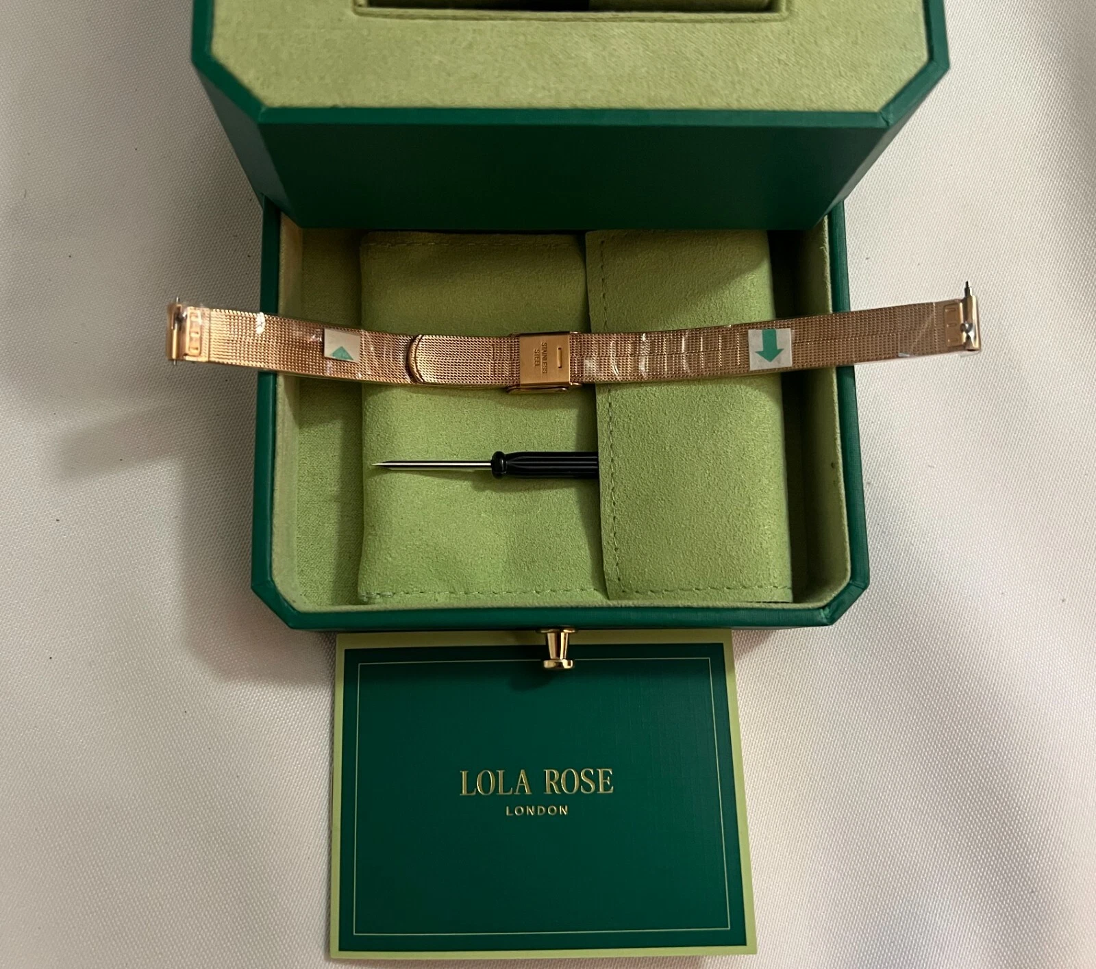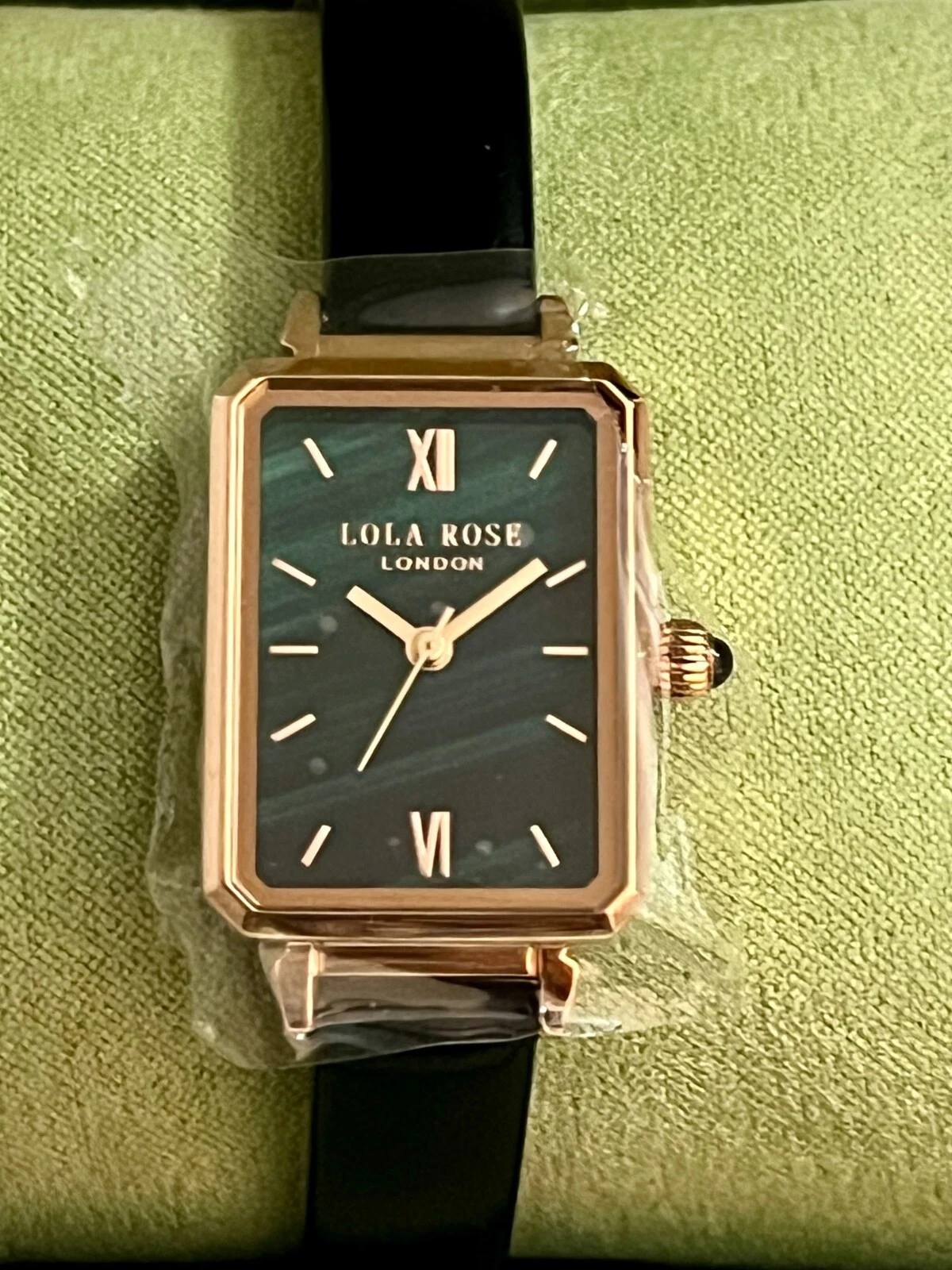 Lola Rose Gold Black Band Malachite Textured Watch w/ extra Metal Strap