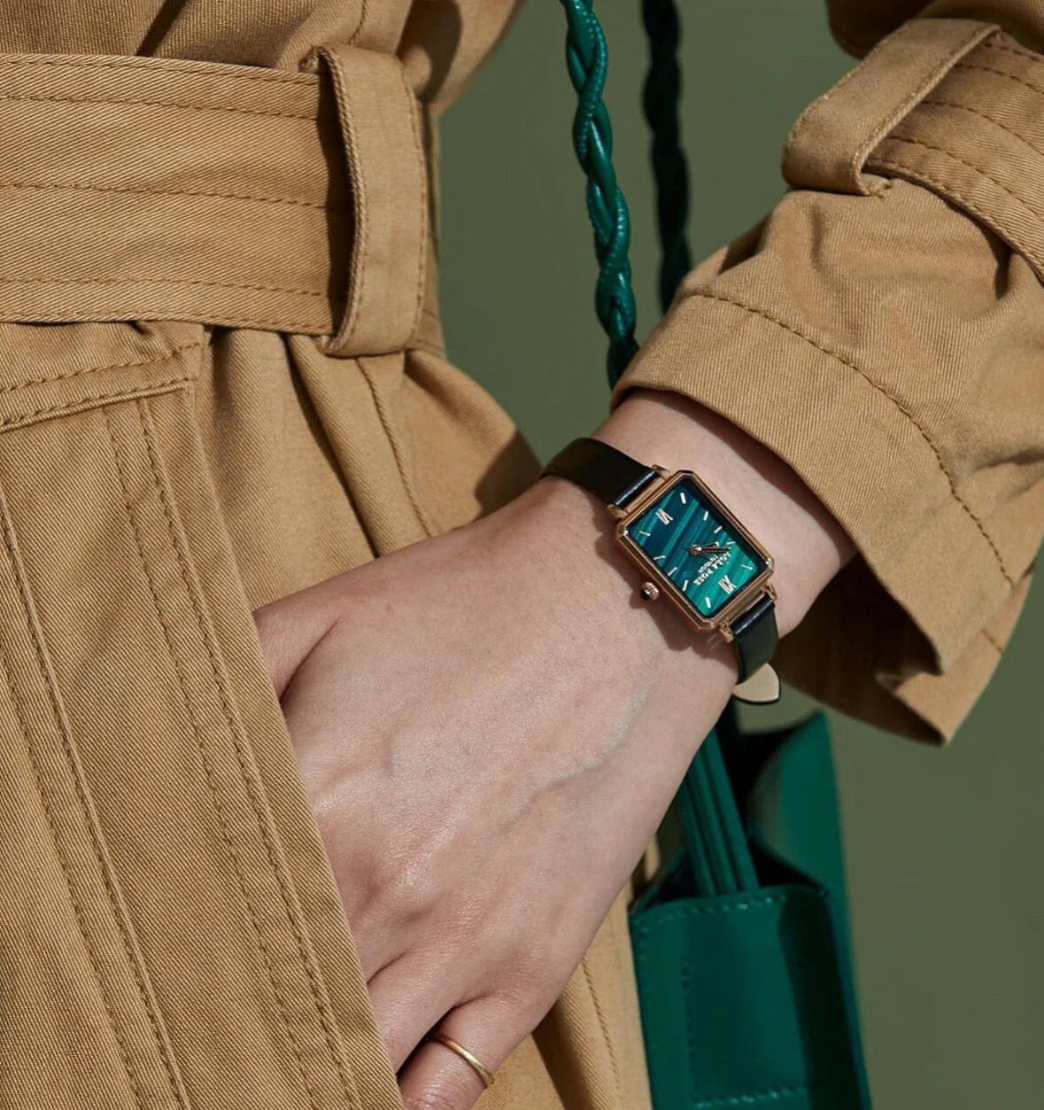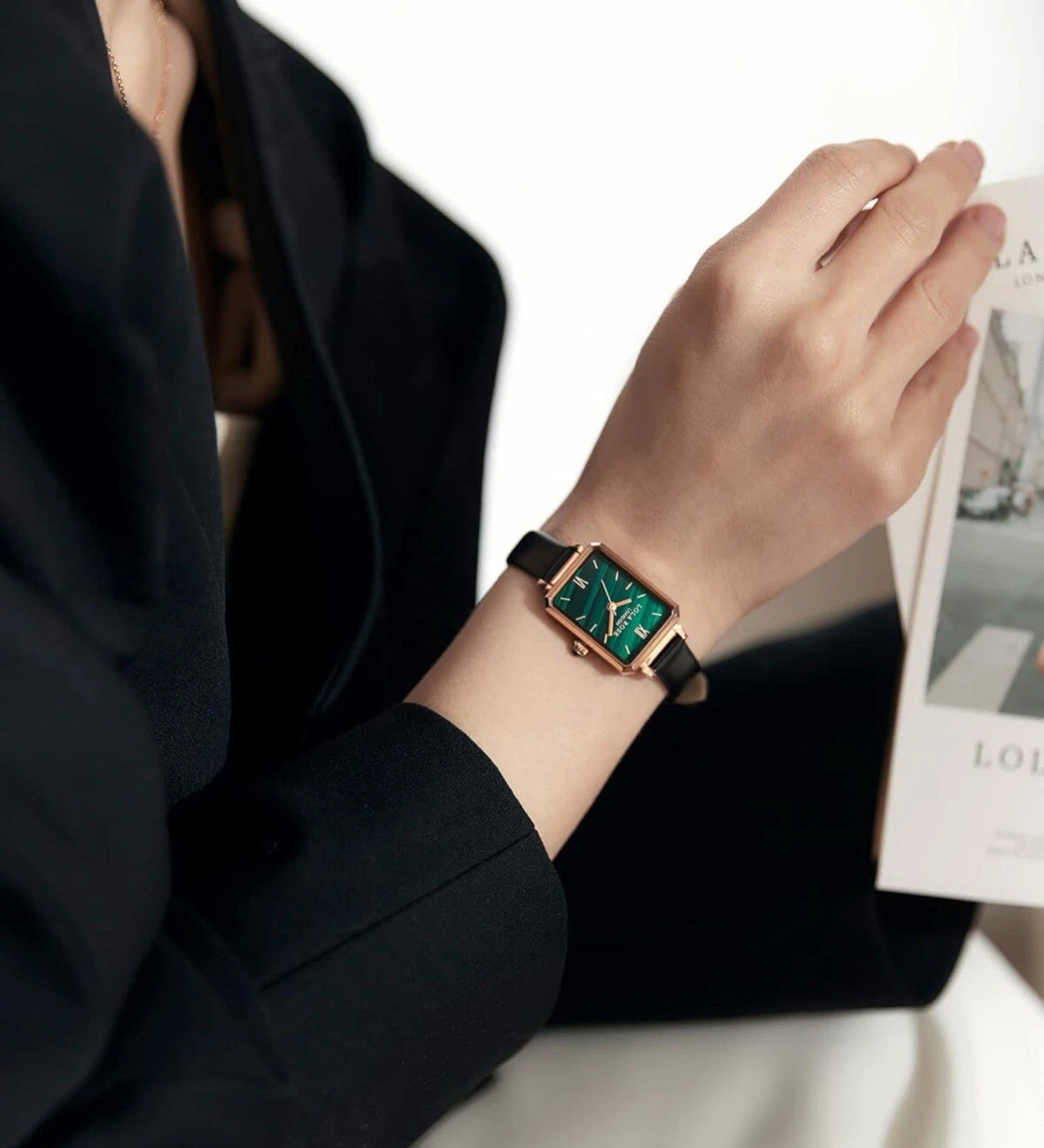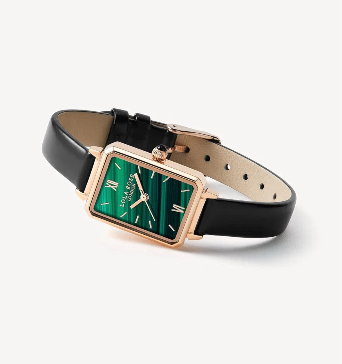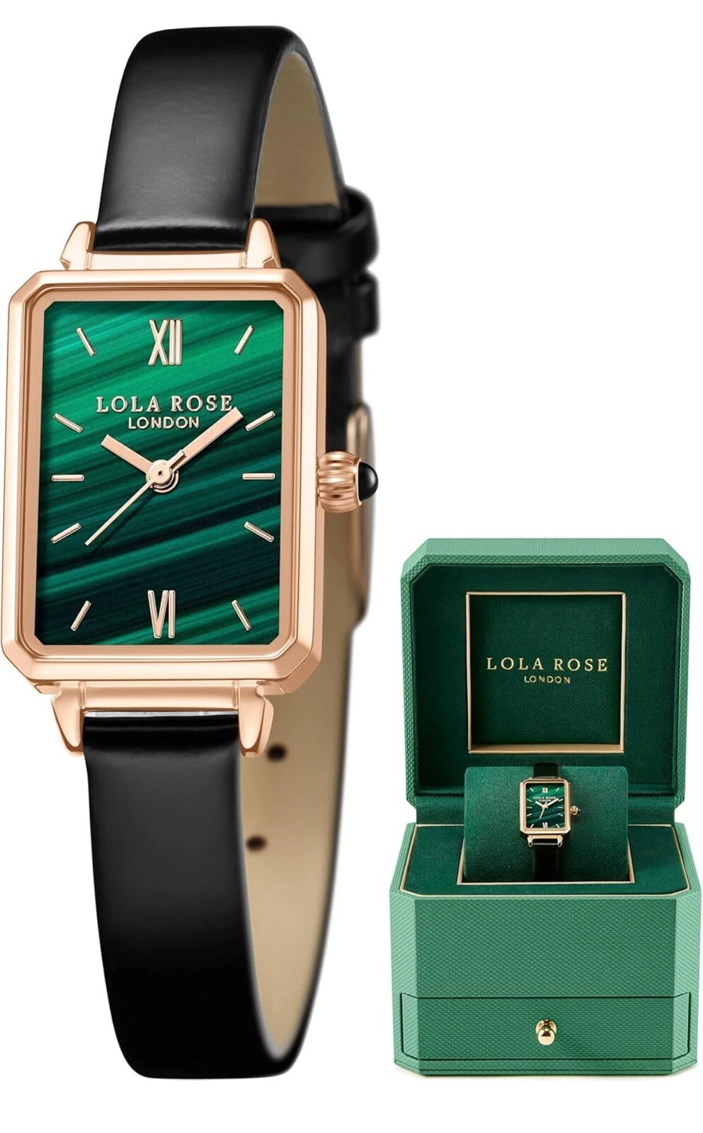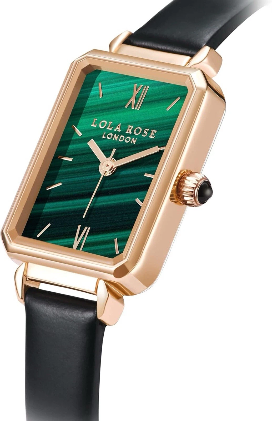 Lola Rose Women Green Malachite Watch W/Black Leather Band Luxury Watch