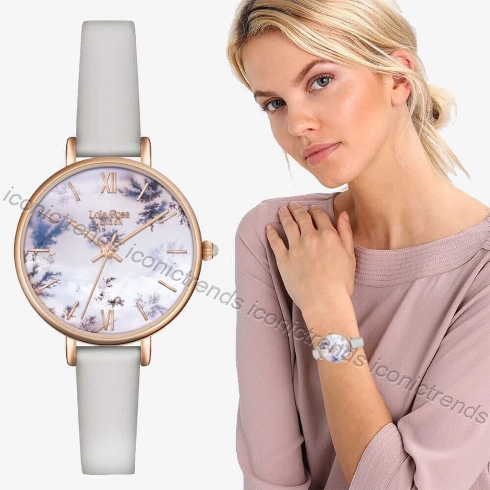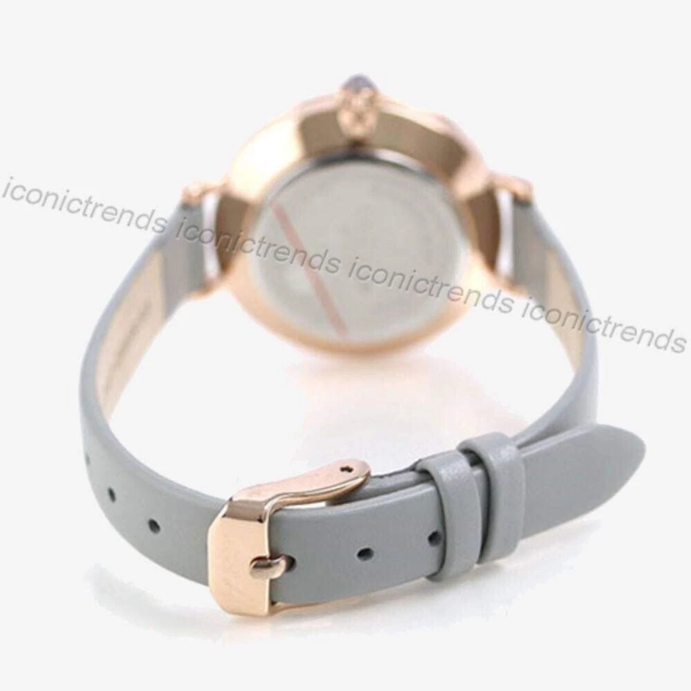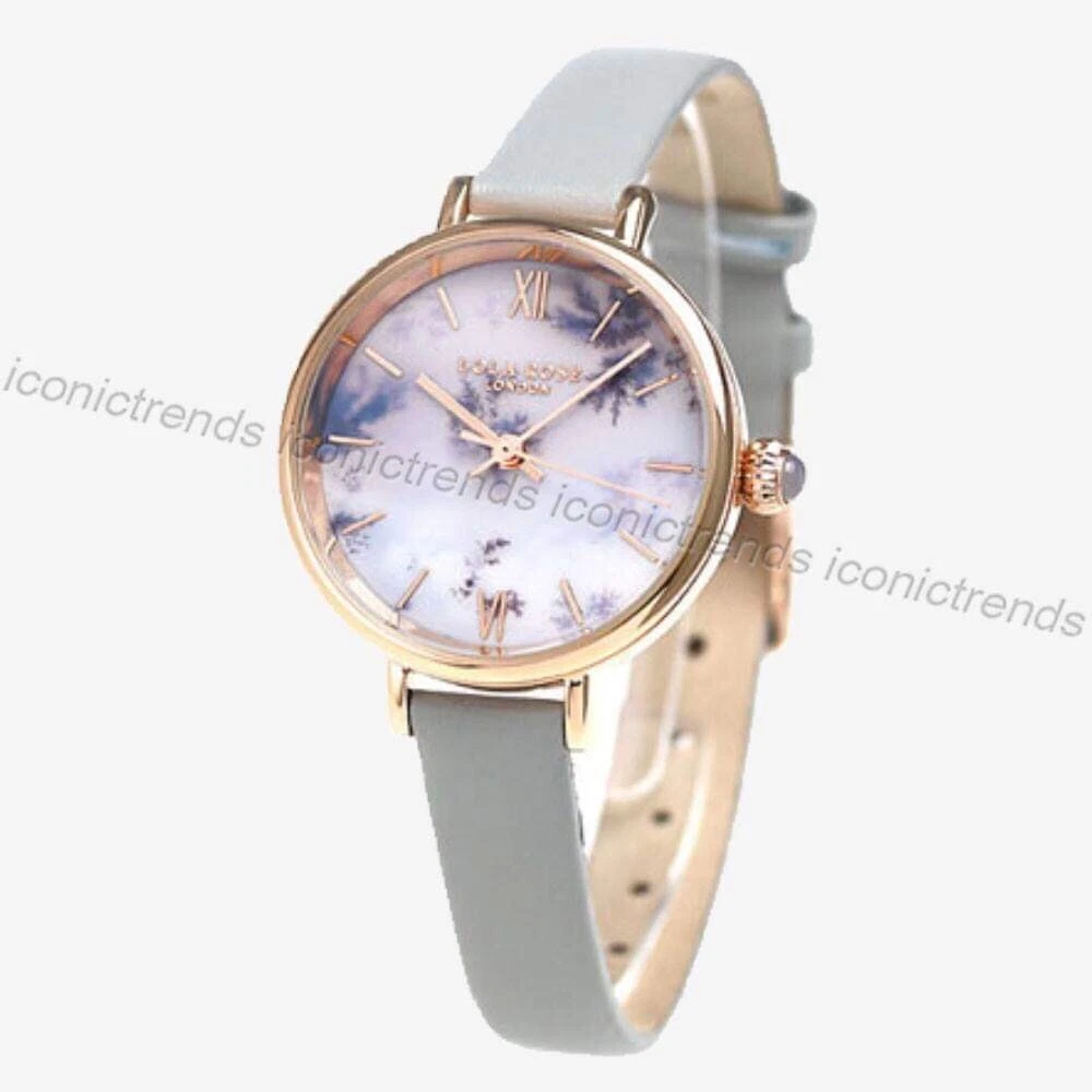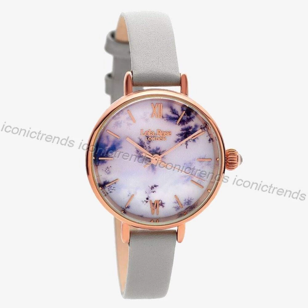 NWT 🦄  Lola Rose LR2042 Purple Display Silver Grey Leather Band 30mm Watch