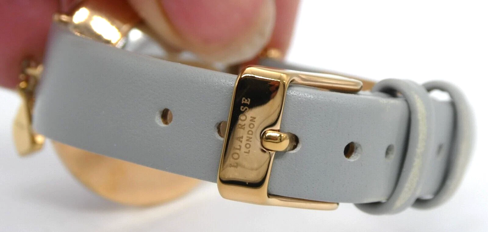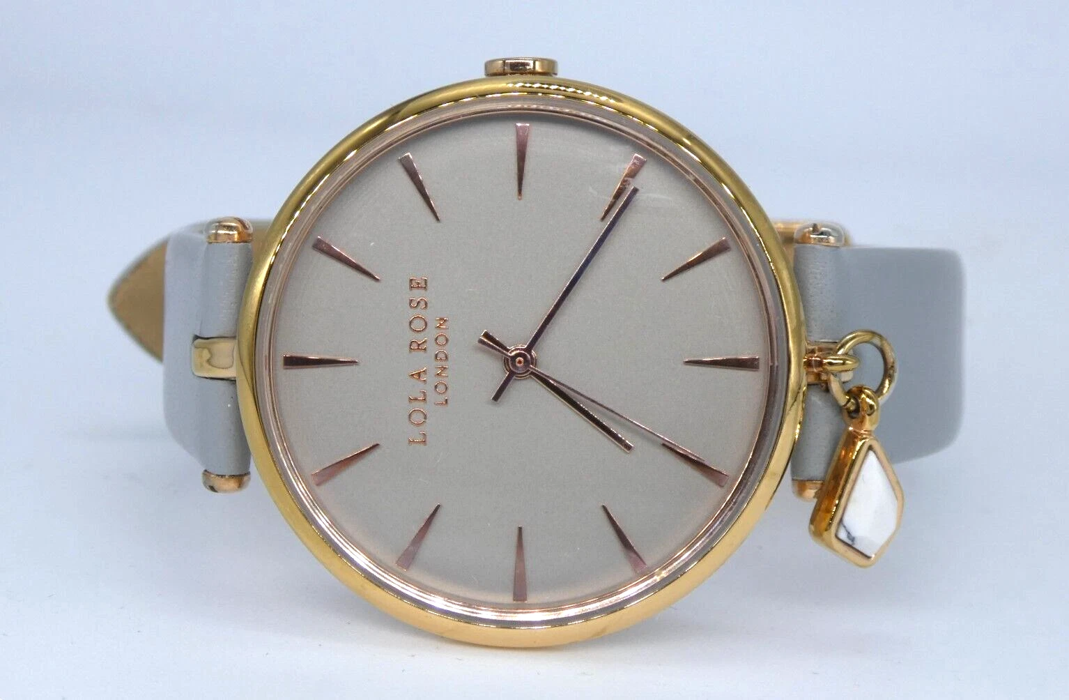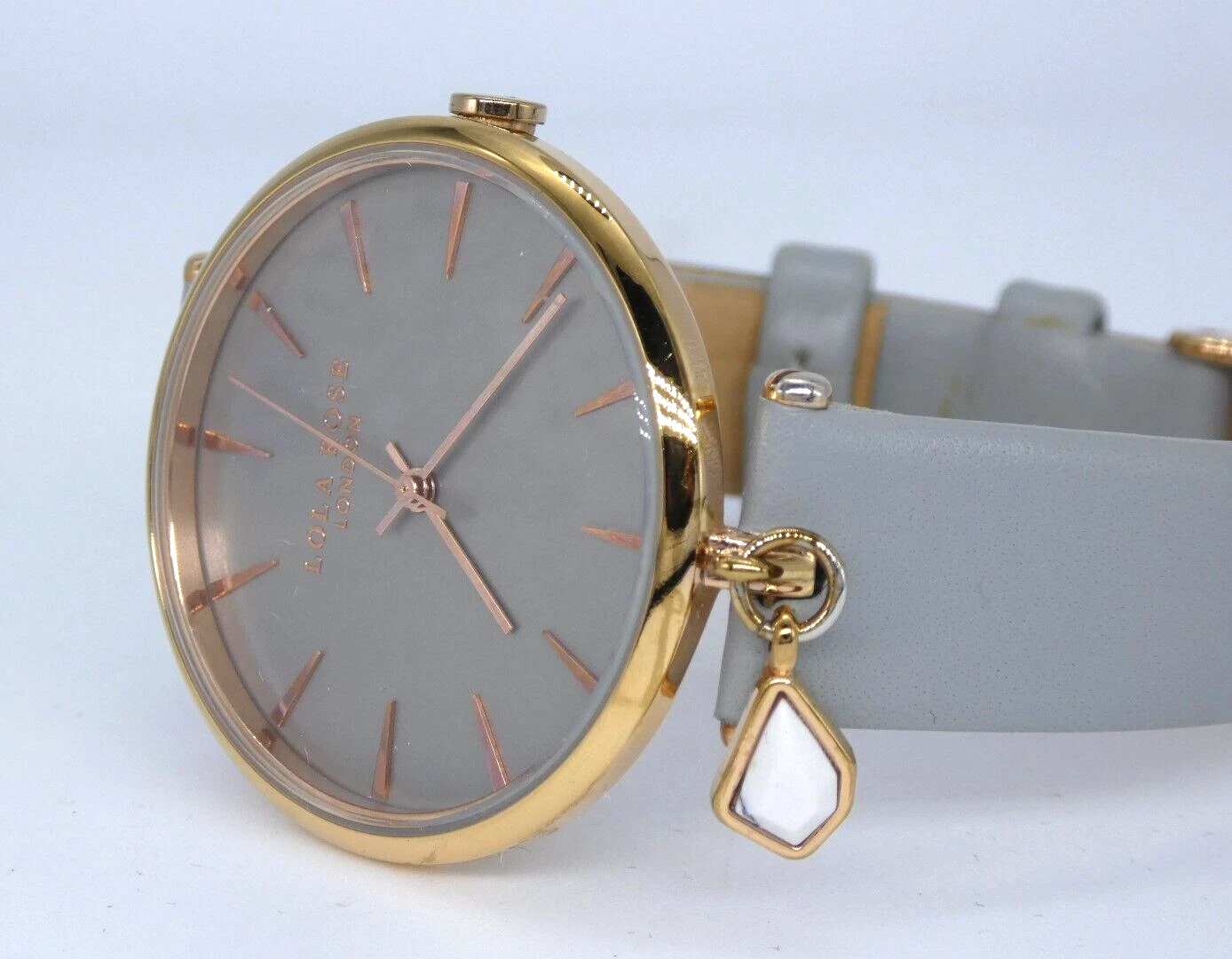 Lola Rose Ladies Watch Rose Gold Plated White Howlite Charm Grey Leather  Boxed