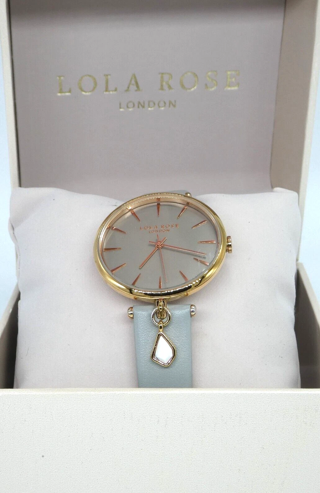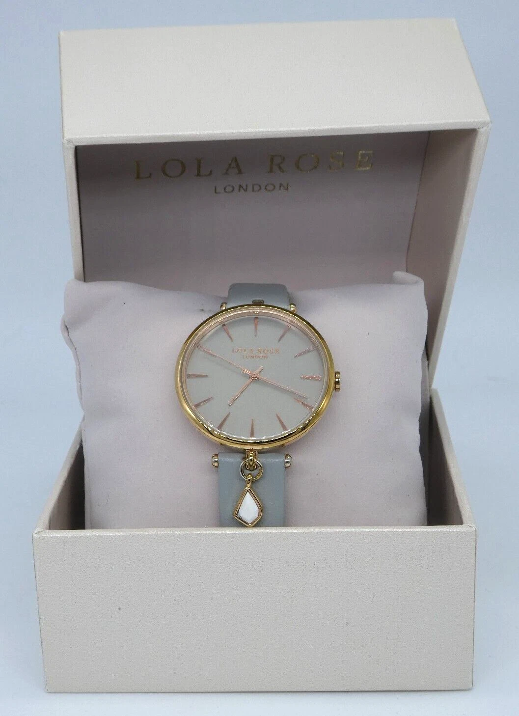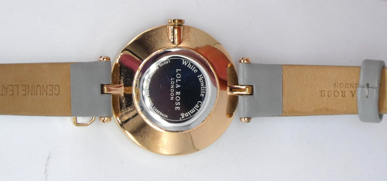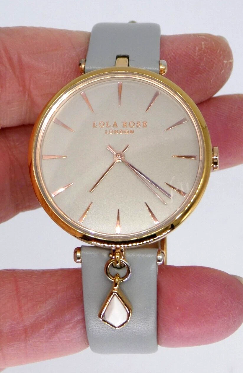 Lola Rose Ladies Watch Rose Gold Plated White Howlite Charm Grey Leather  Boxed