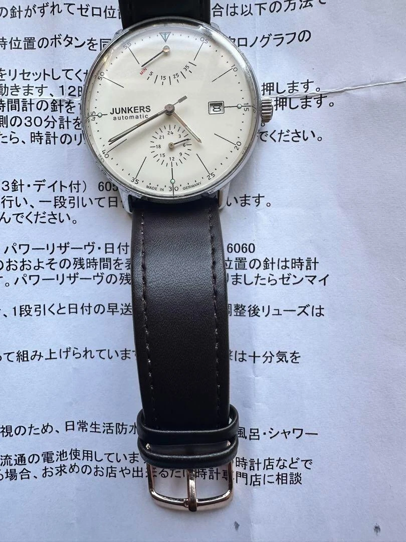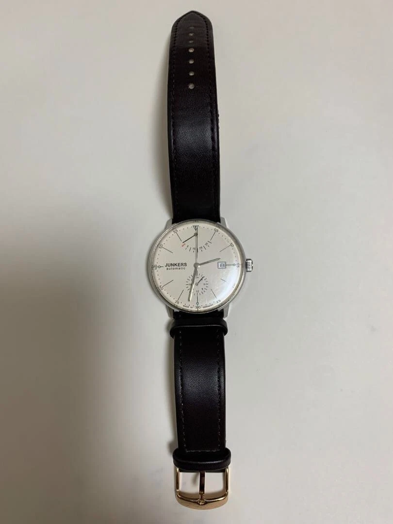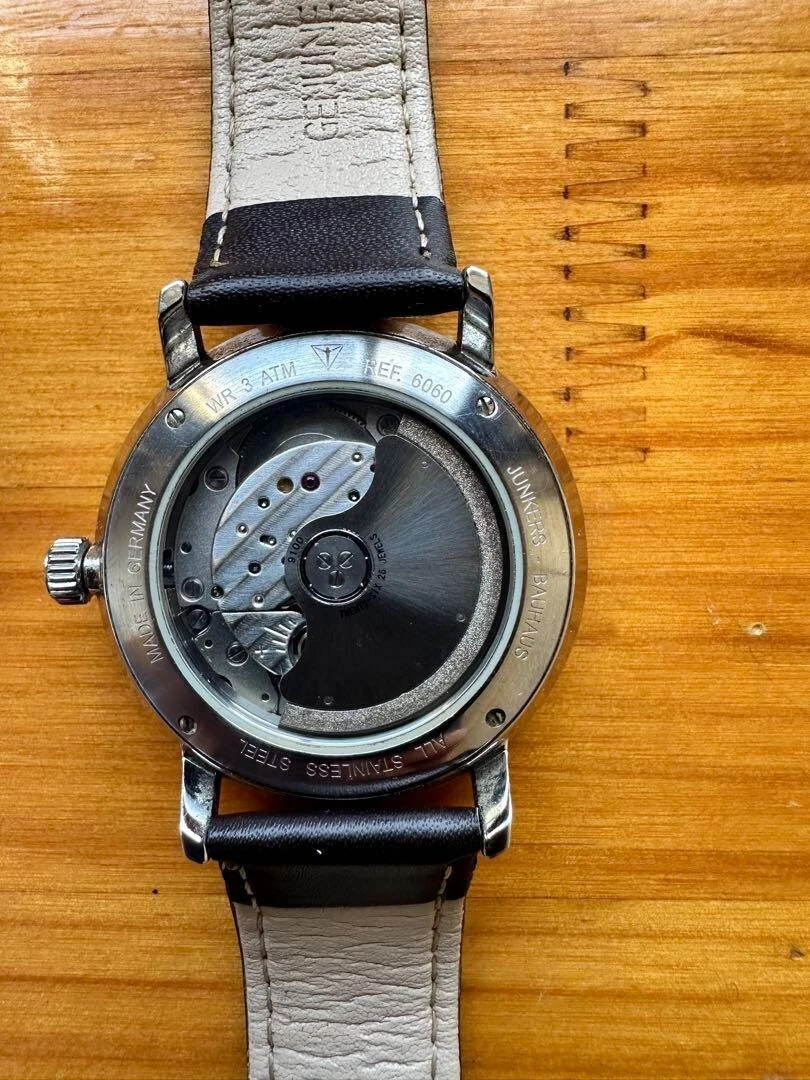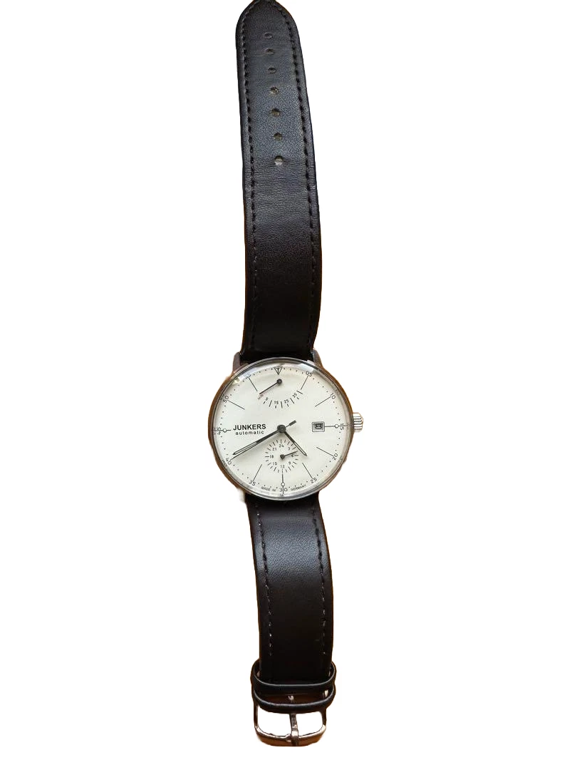 Junkers Bauhaus Automatic Watch 40mm White Dial Brown Strap Germany Made JP