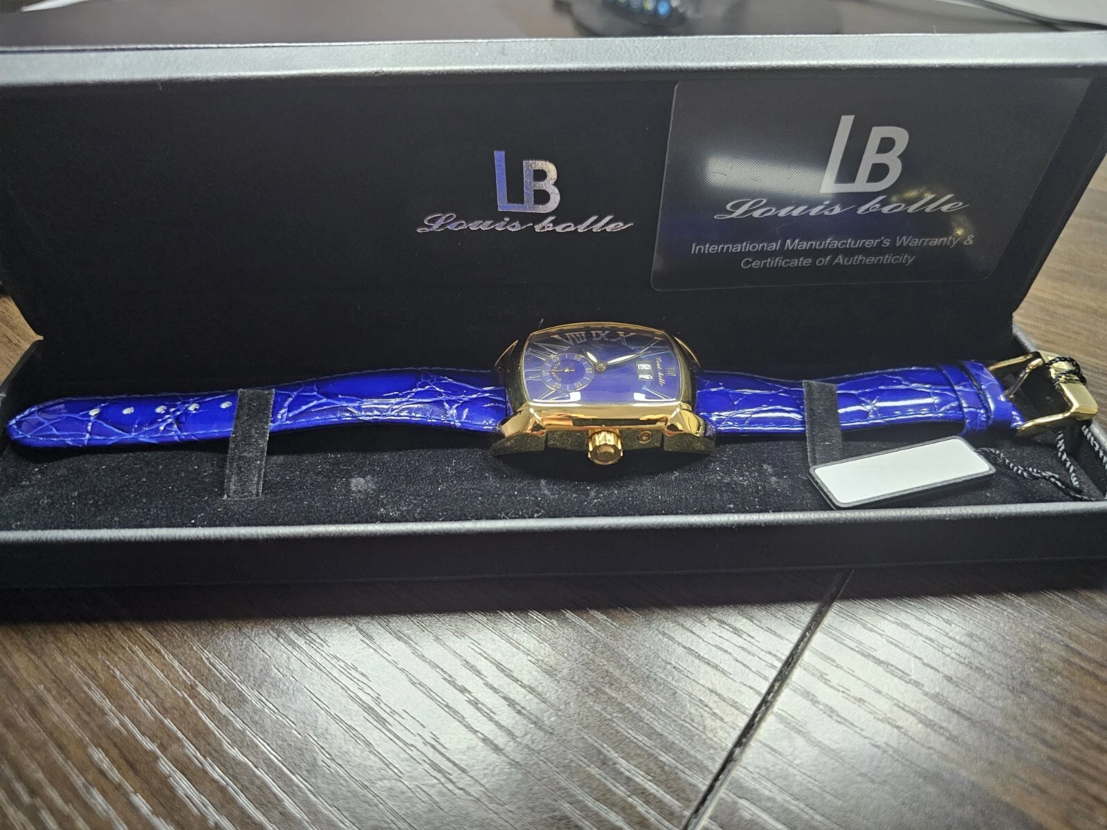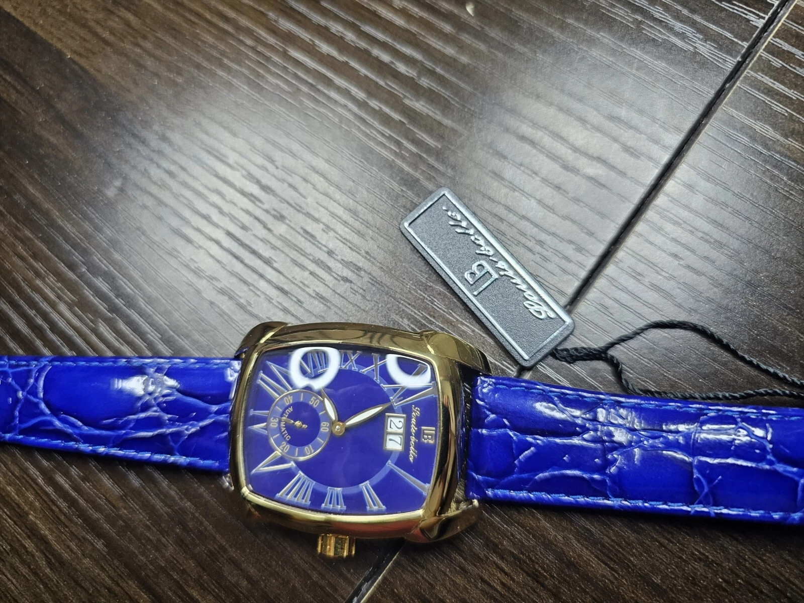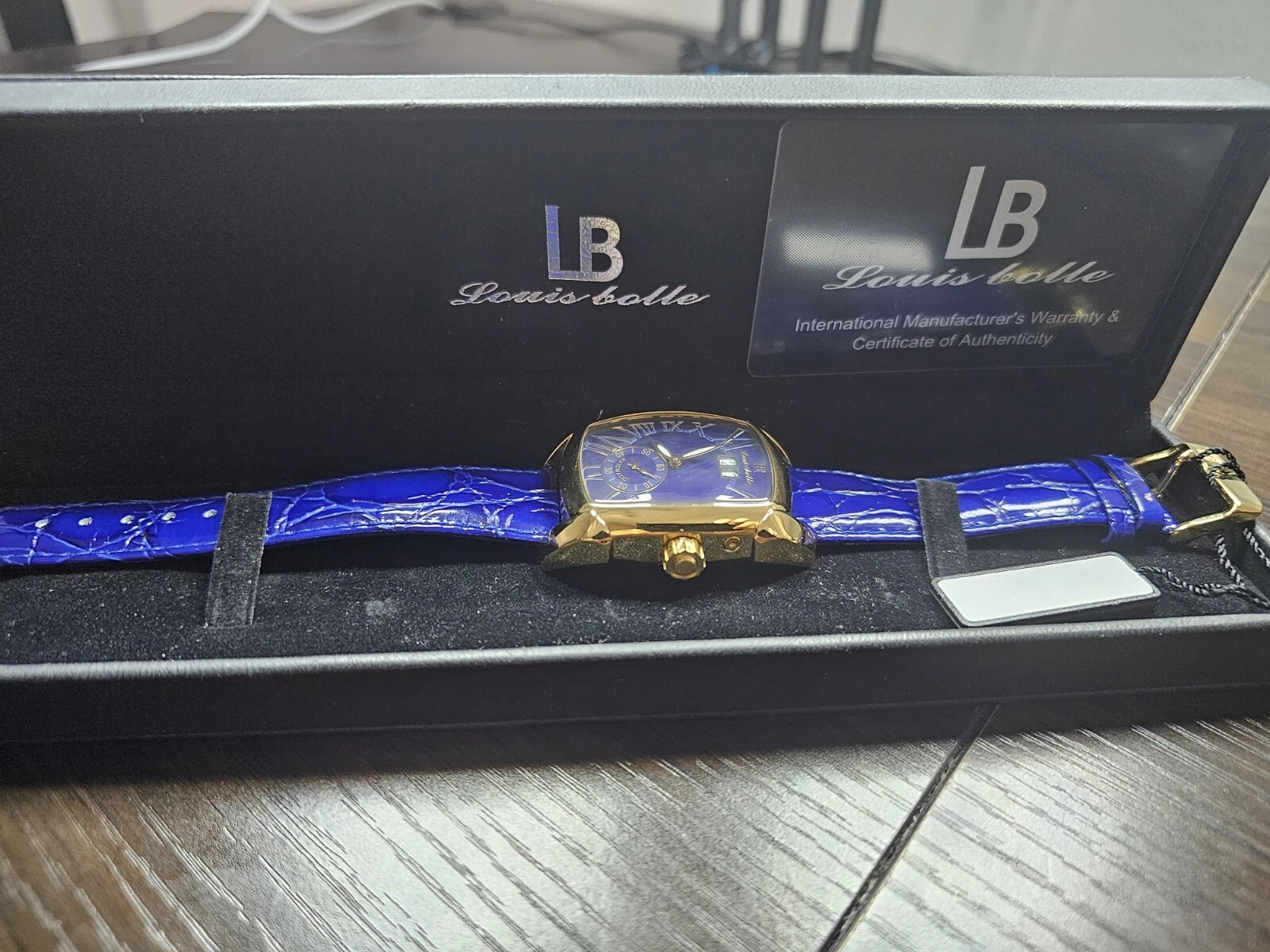 New In Box Louis Bolle automatic watch with Blue Dial and Blue Leather Band