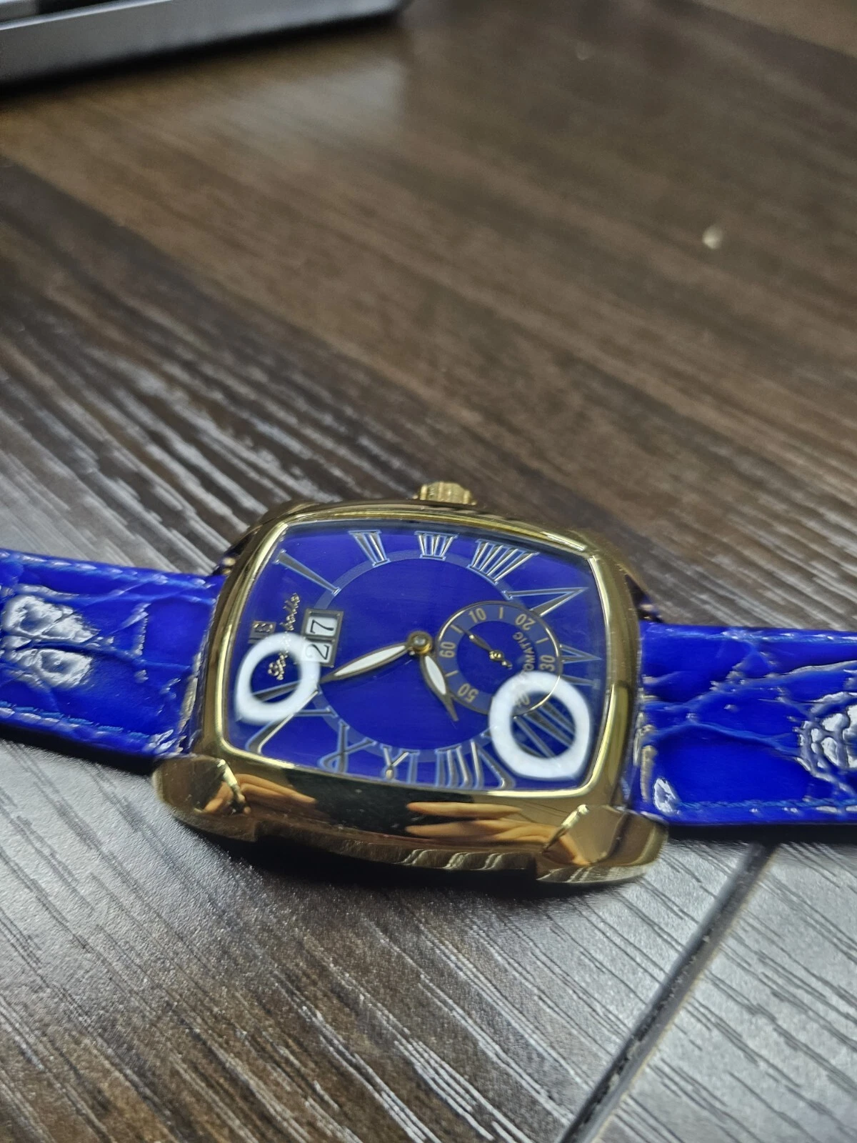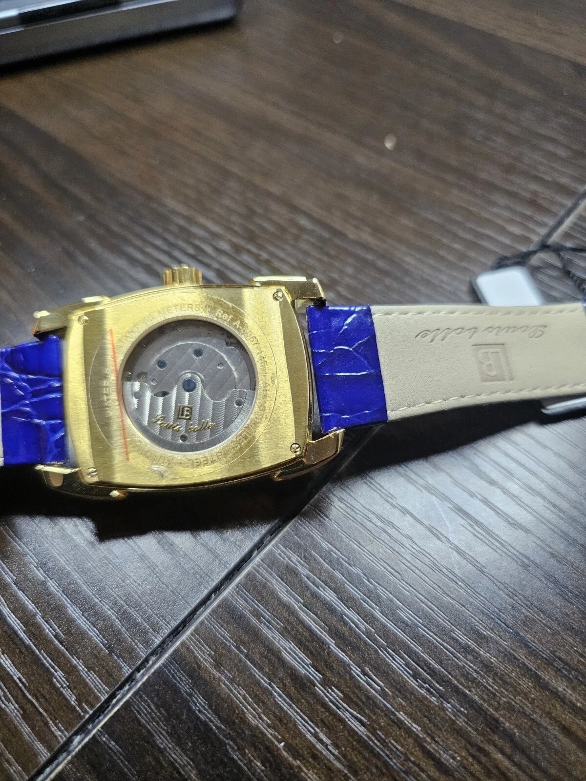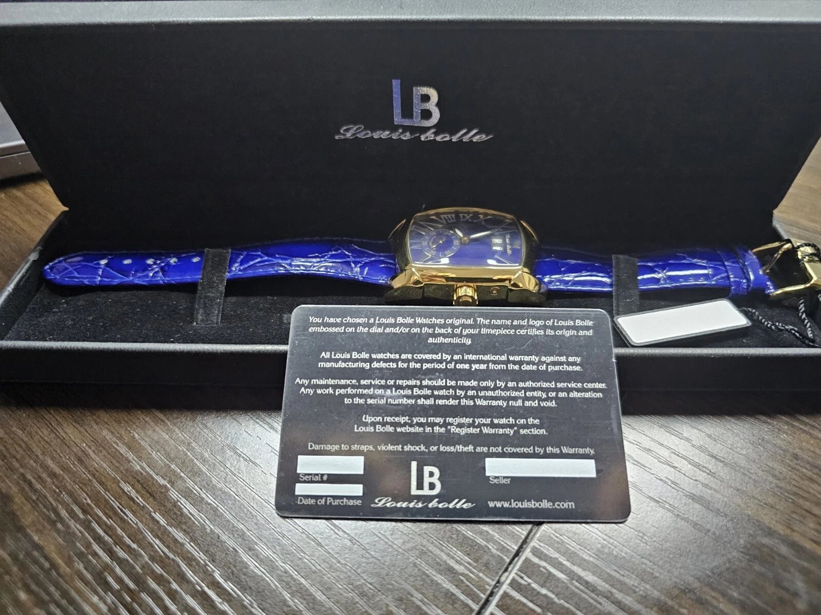 New In Box Louis Bolle automatic watch with Blue Dial and Blue Leather Band