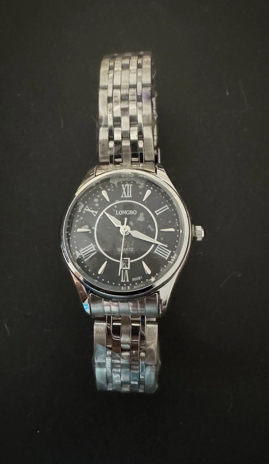 Womans Longbo Black Dial Date Indicator NEW in Plastic Stainless Steel Watch
