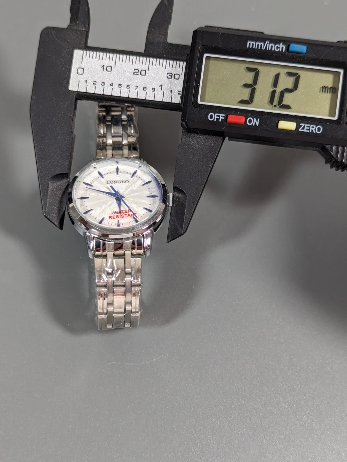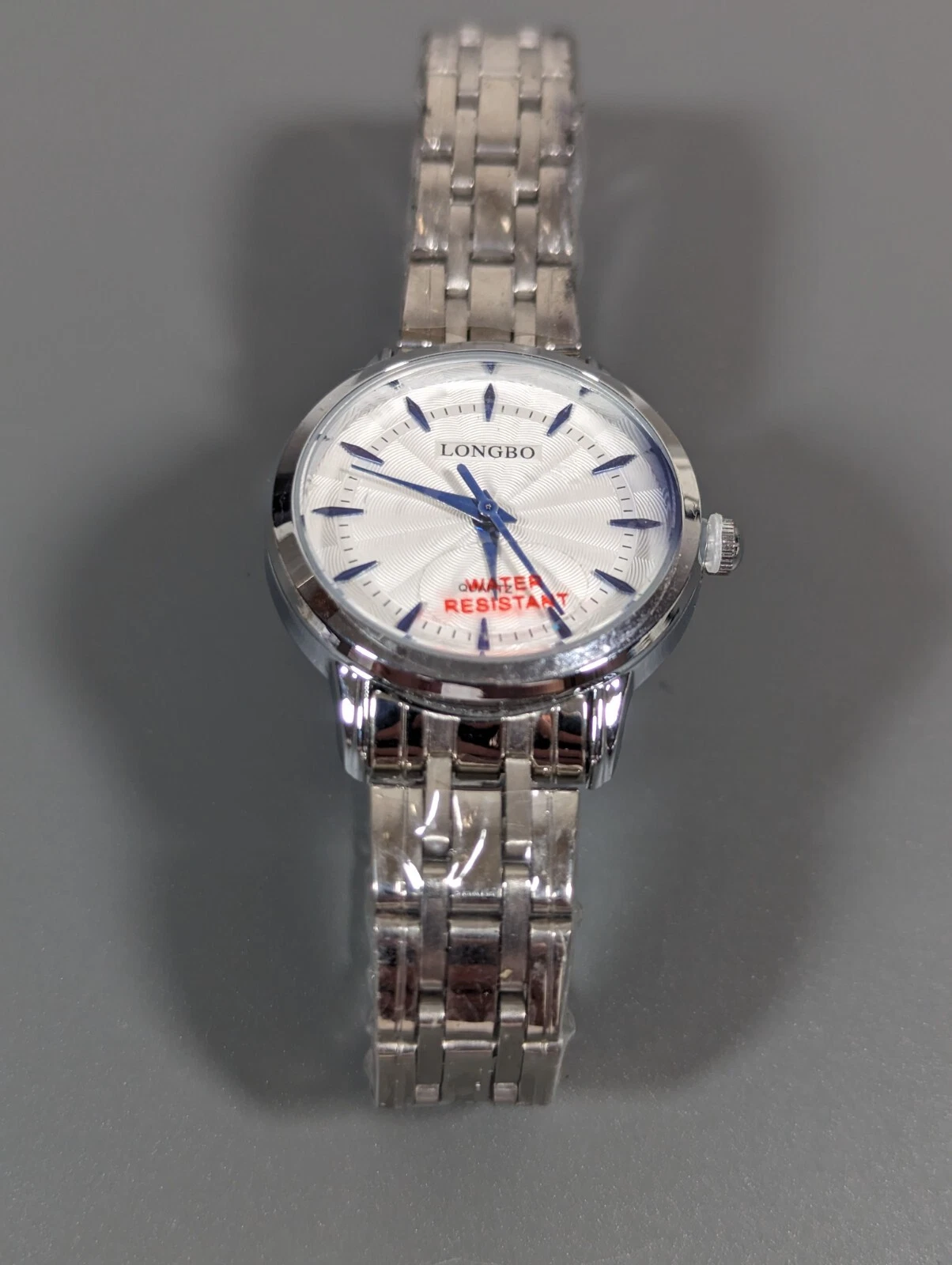 Longbo White Dial Round Silver Tone Case Stainless Steel Link Band Watch NEW