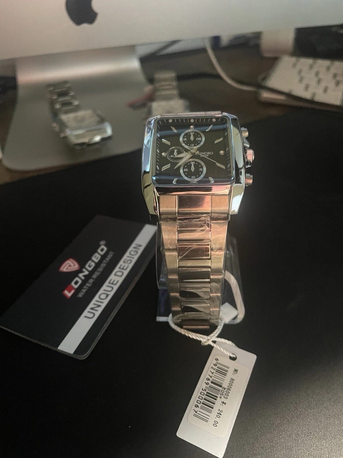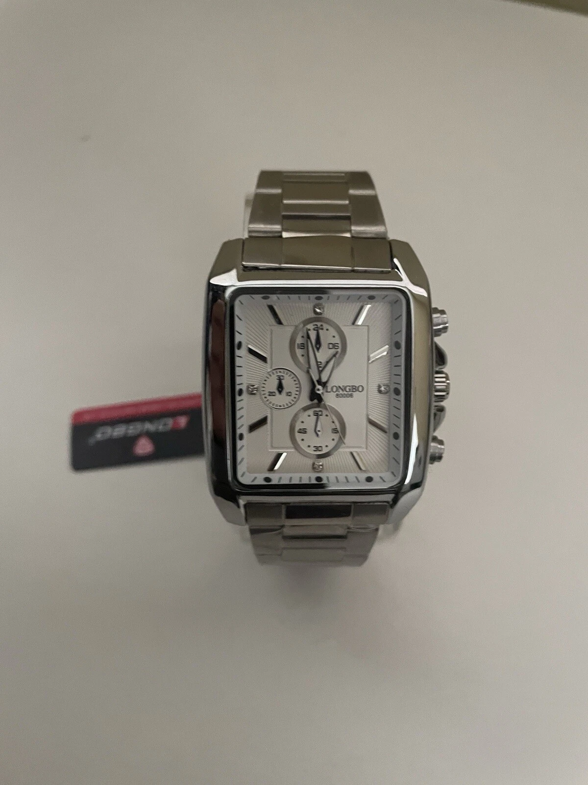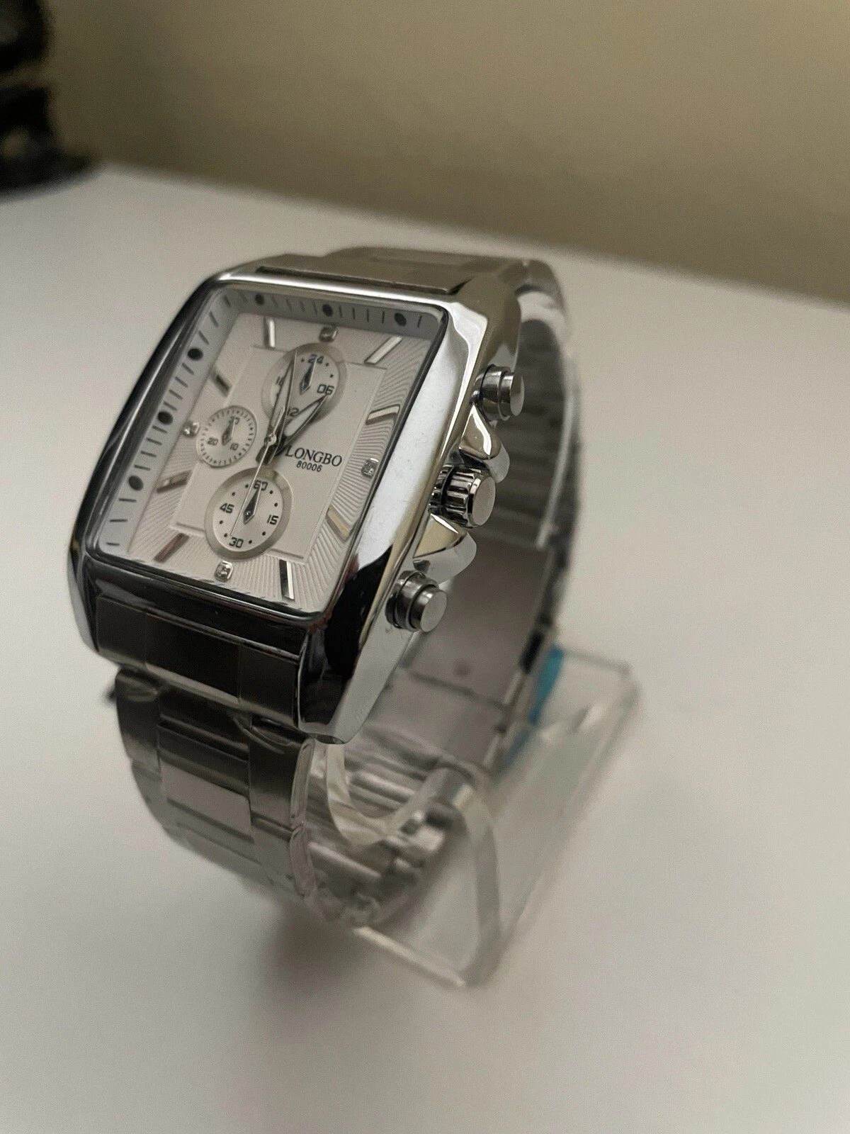 Longbo Mens Quartz Dial Prism Crystal Silver Tone Stainless St Band Watch NEW