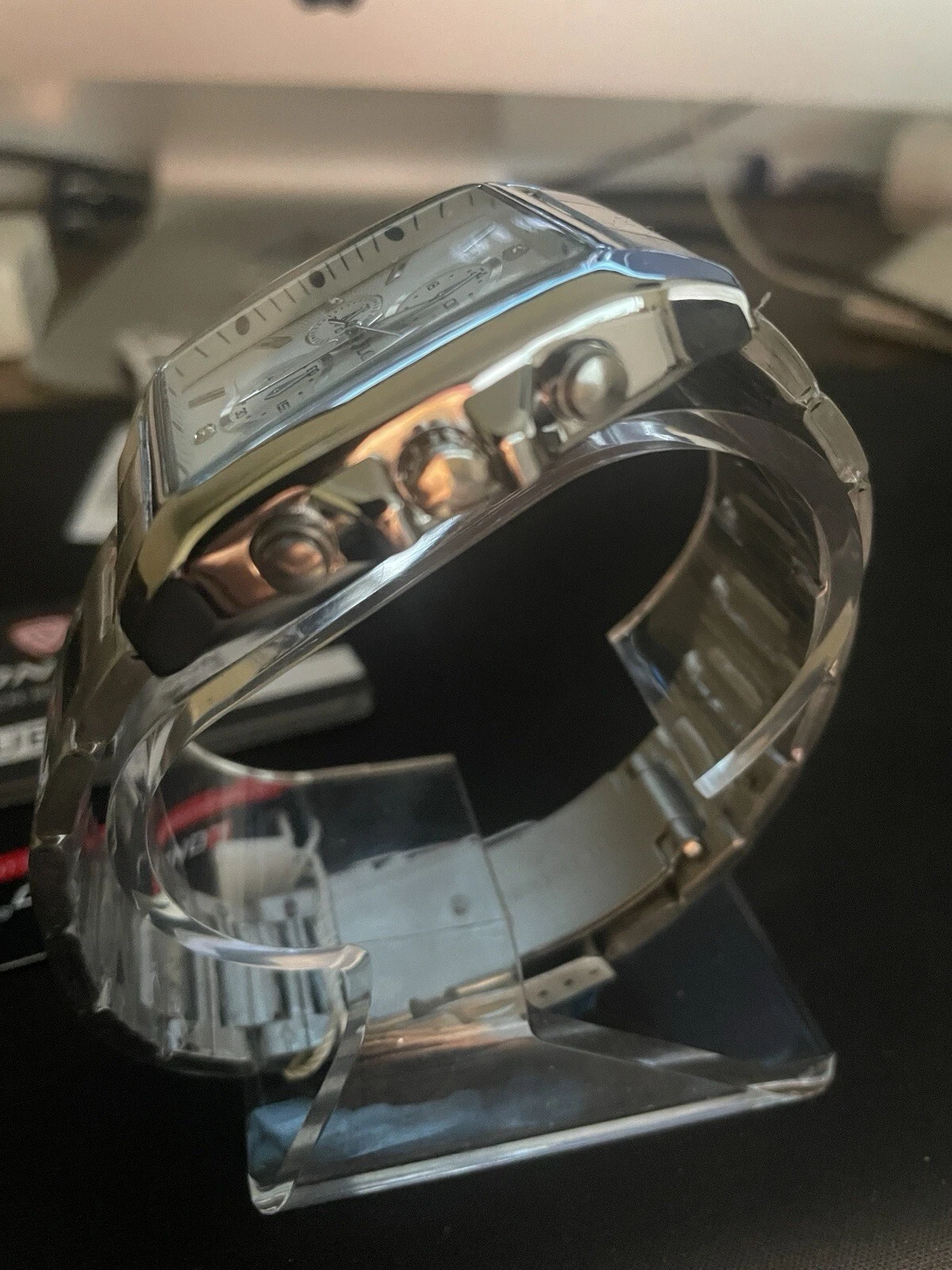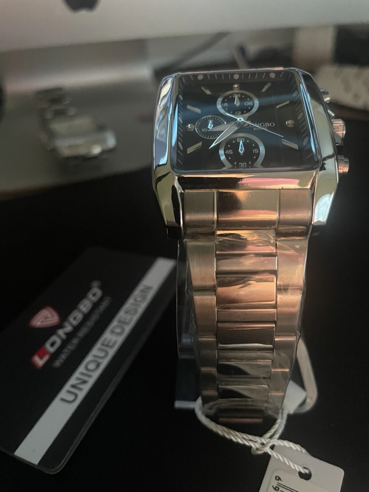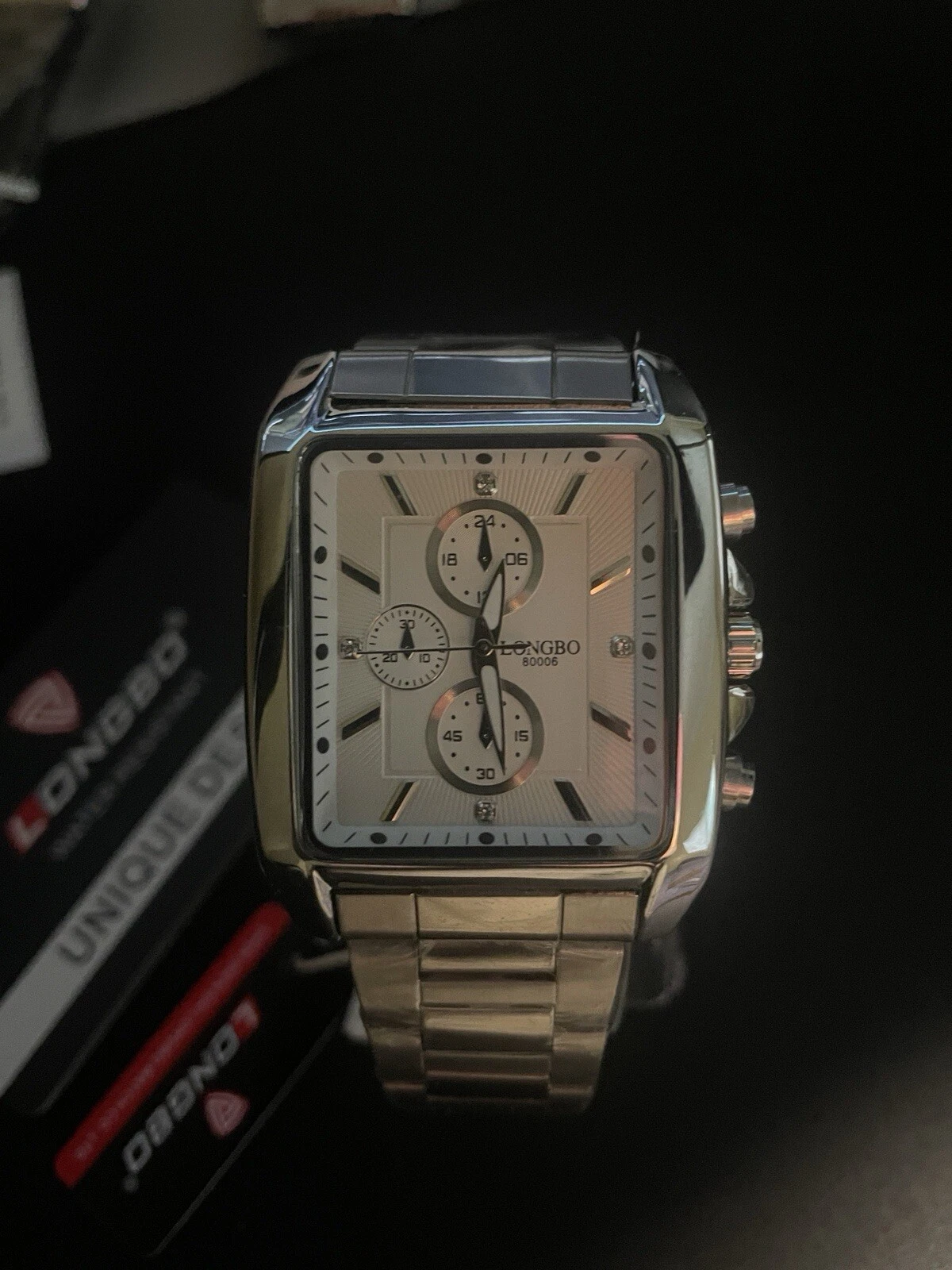 Longbo Mens Quartz Dial Prism Crystal Silver Tone Stainless St Band Watch NEW