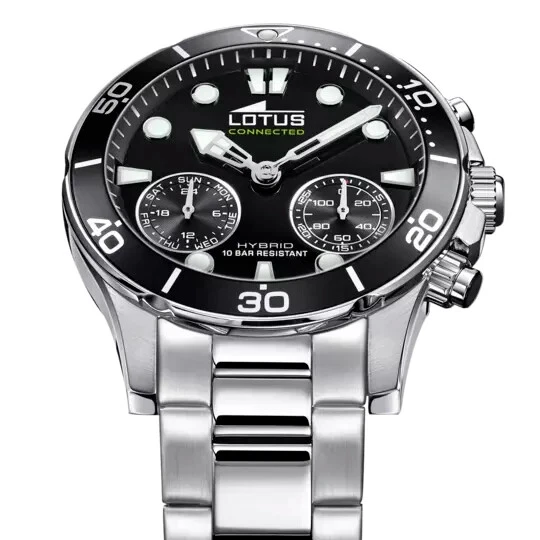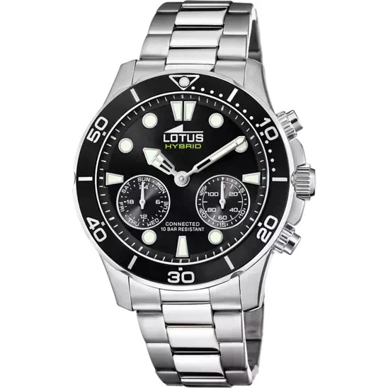 Lotus Hybrid 188002 Men Stainless Black Chrono Dial Connected Smart Watch 44.5mm