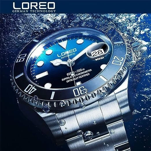 44mm Loreo Men Luxury Automatic Sub Diver Stainless Steel 200M Waterproof Watch