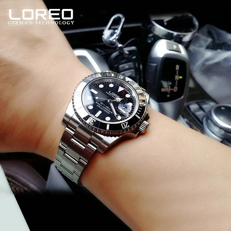 44mm Loreo Men Luxury Automatic Sub Diver Stainless Steel 200M Waterproof Watch