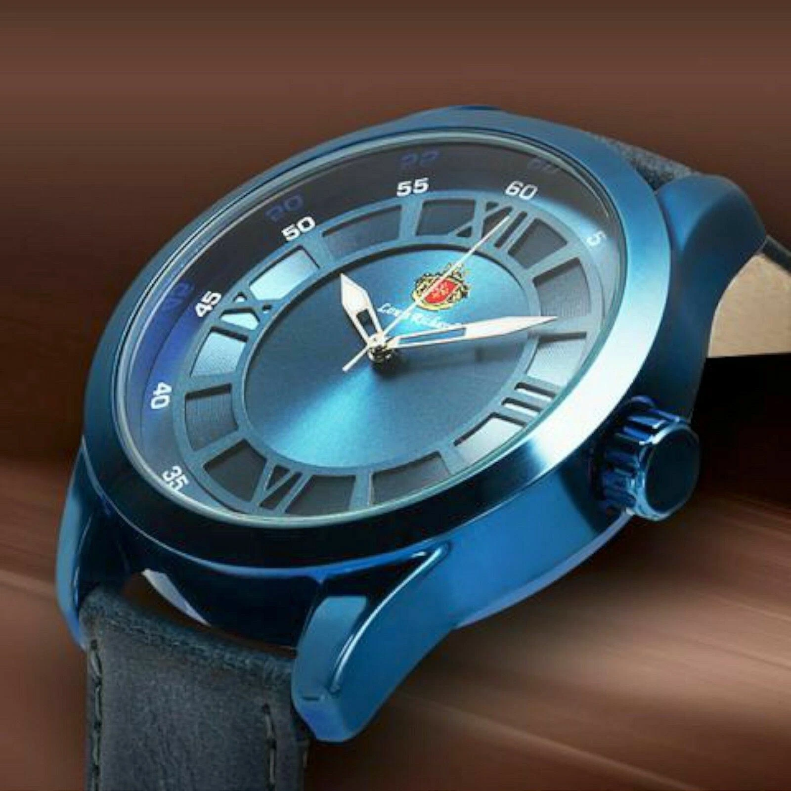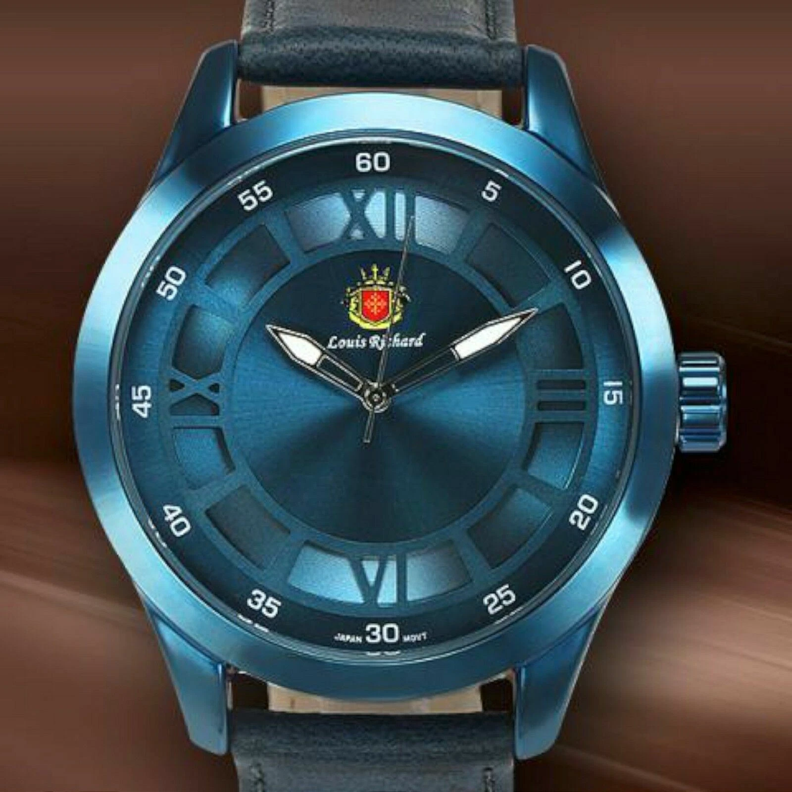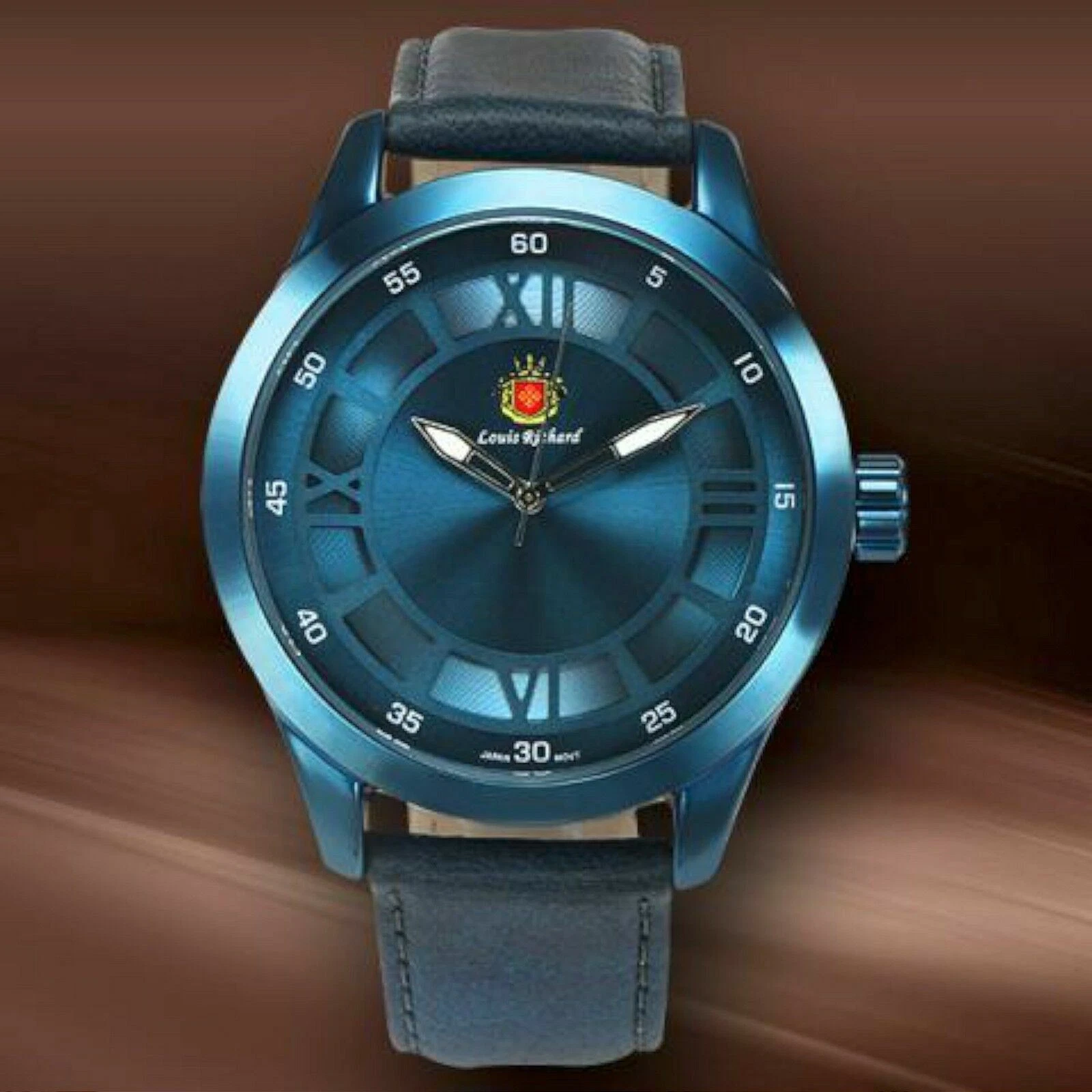 NEW Louis Richard 9901 Men's Brandis Blue Dial Leather Watch hipster style roman