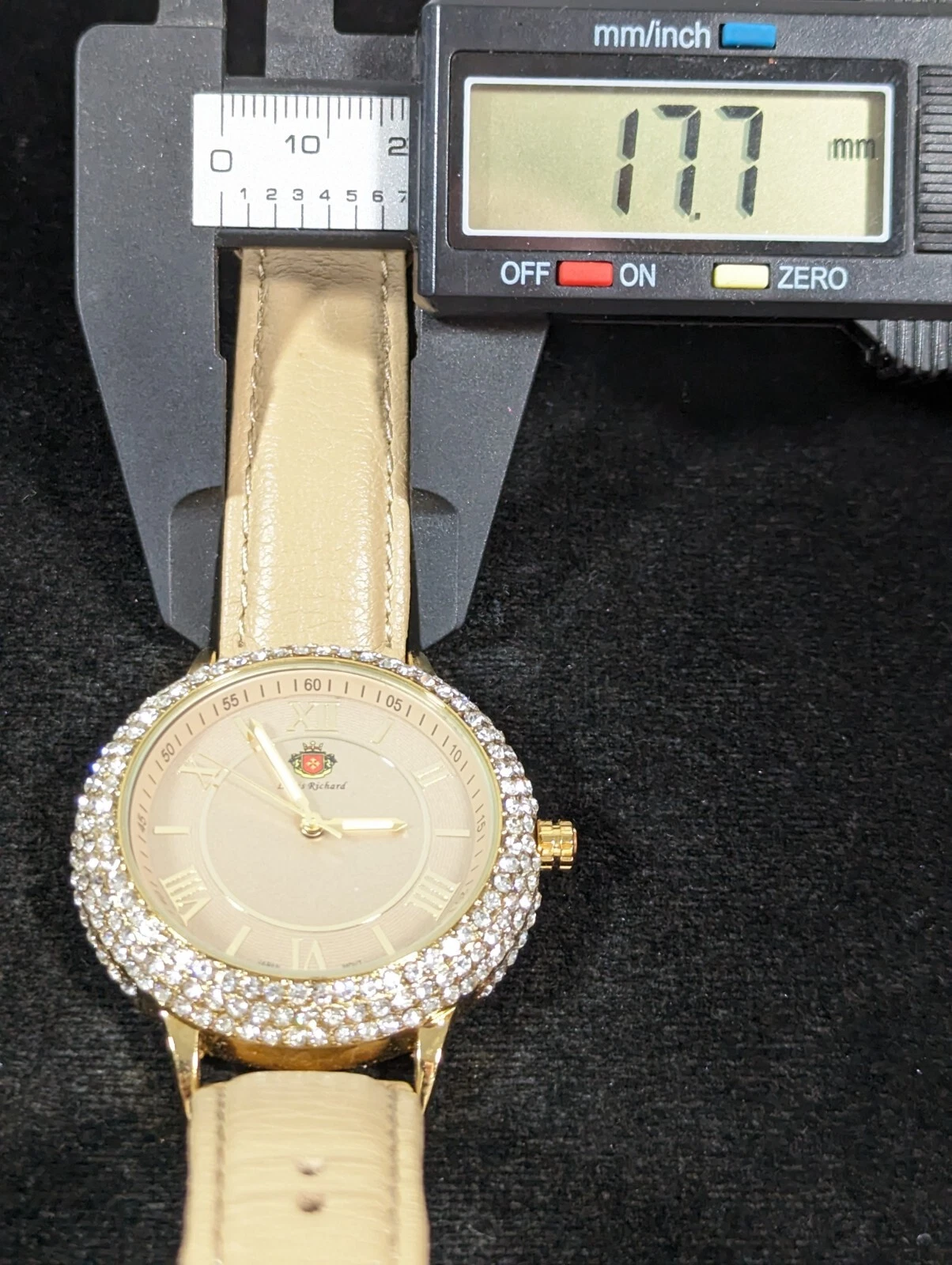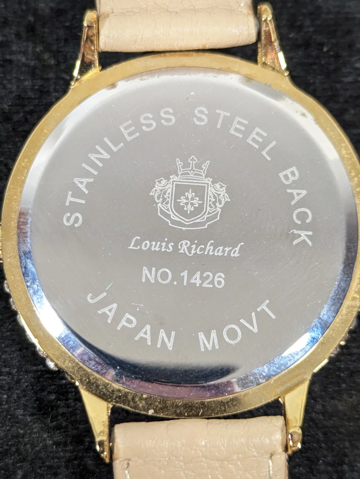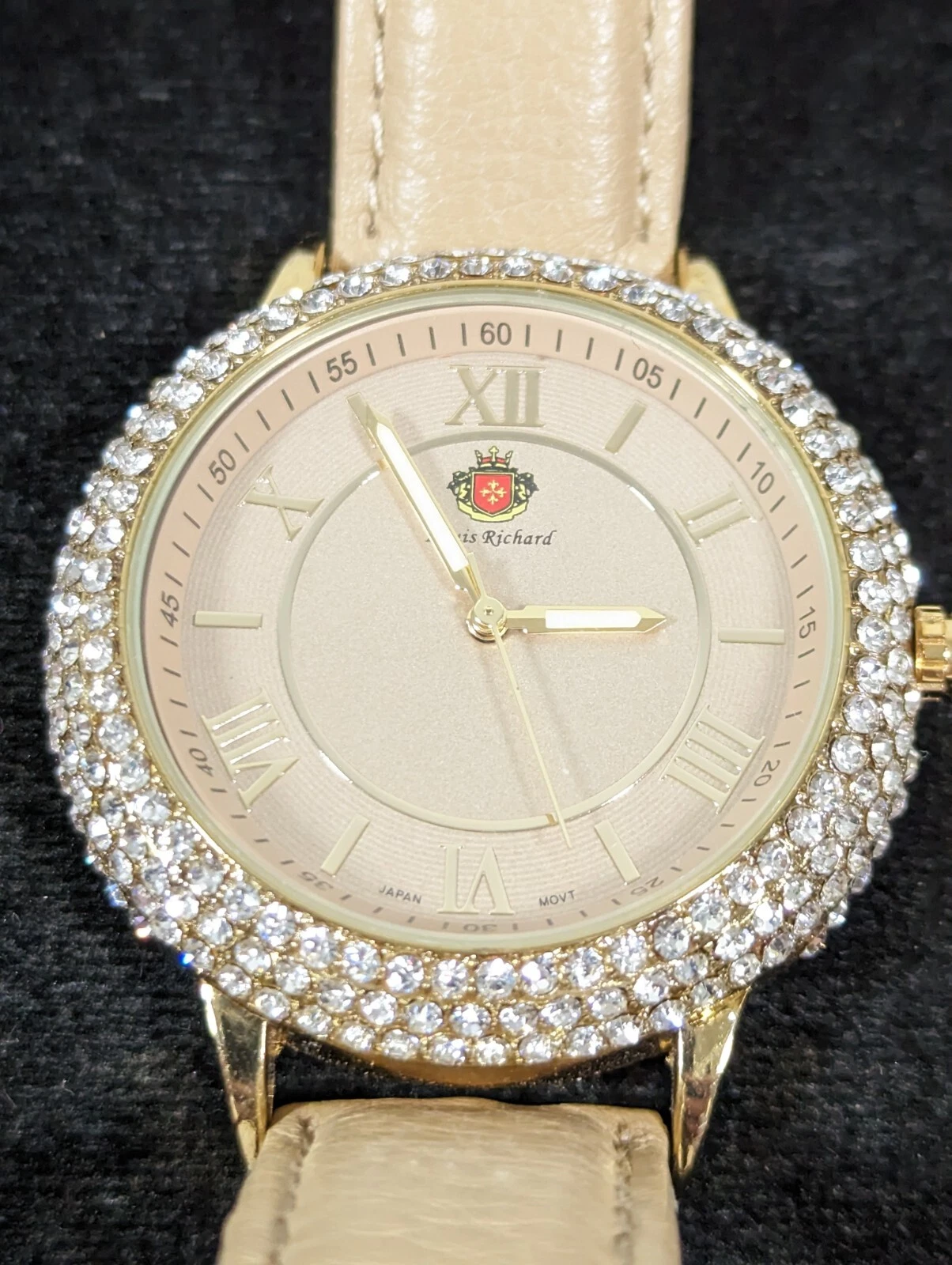 Louis Richard Womans Brown Dial Crystal Accent Round Case Leather Band Watch 8in
