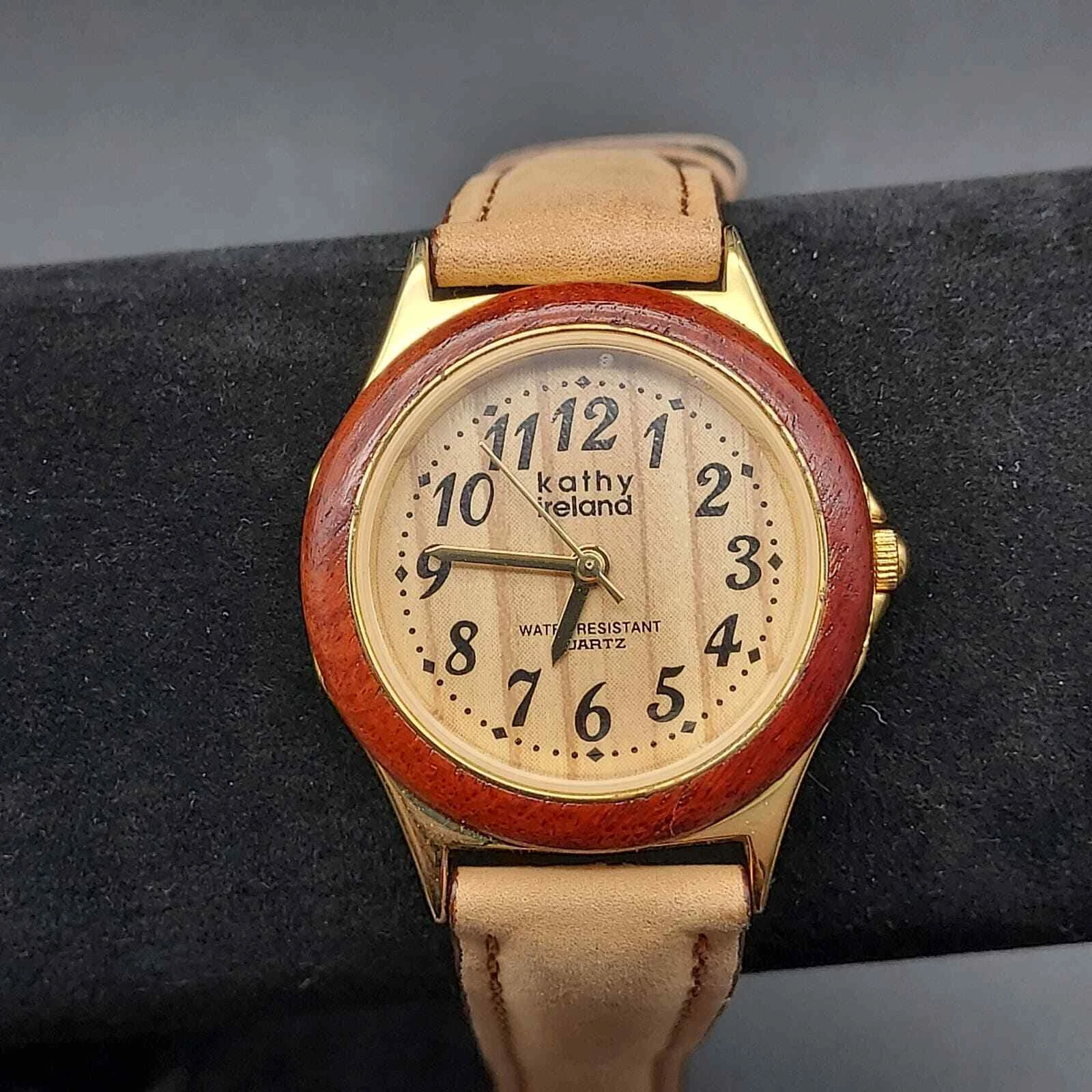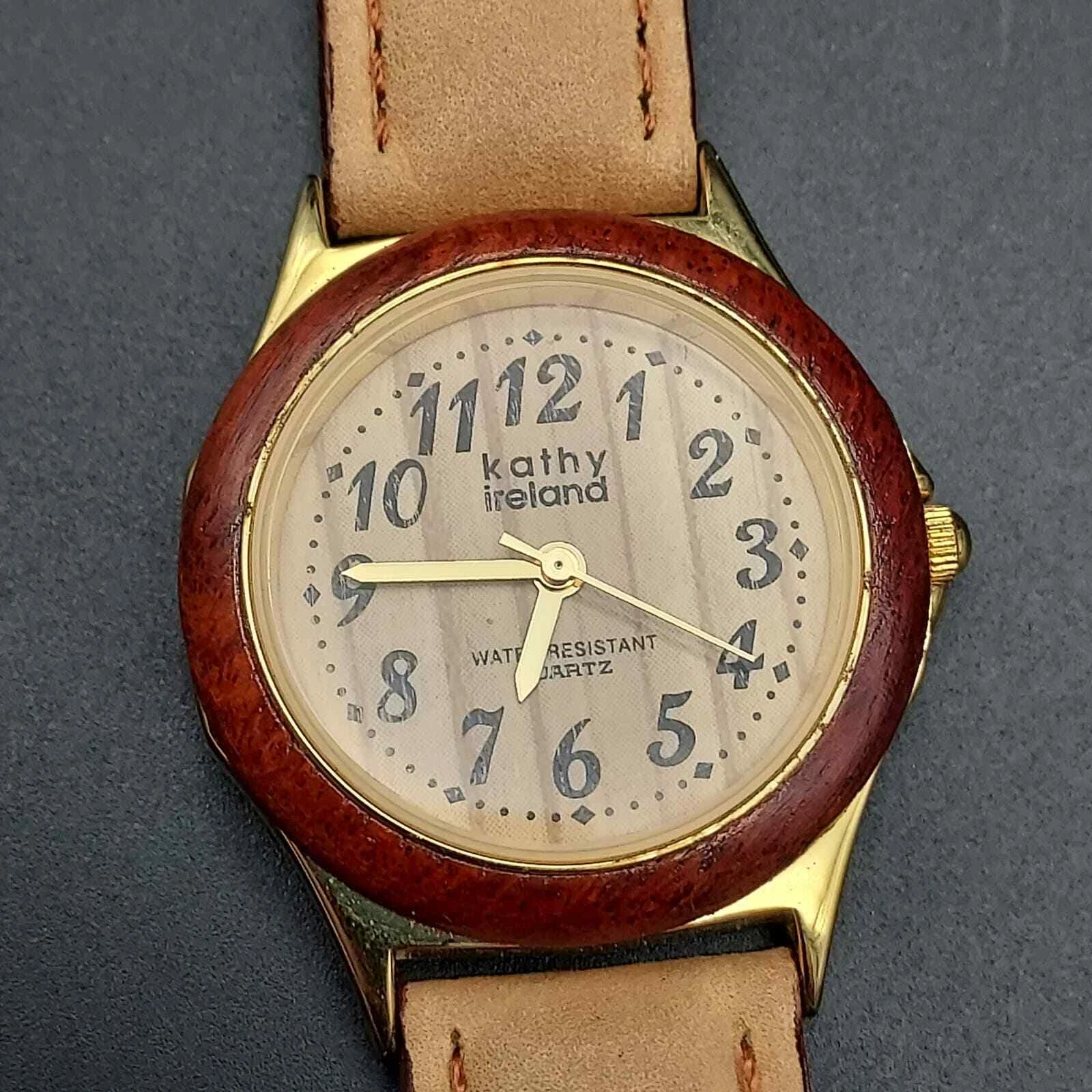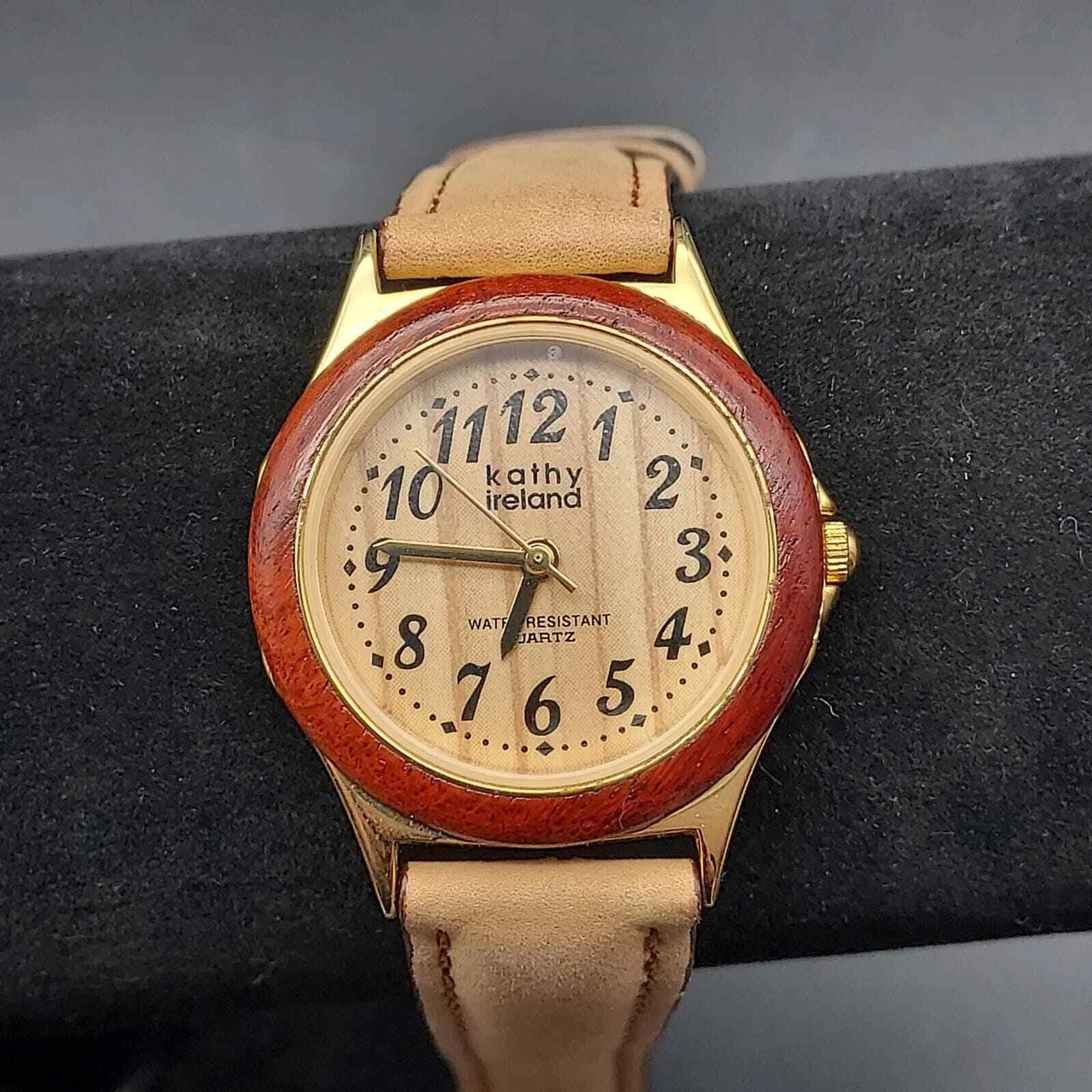 Kathy Ireland Watch Faux Wood Grain Leather Neutral Color Womens Wrist Watch