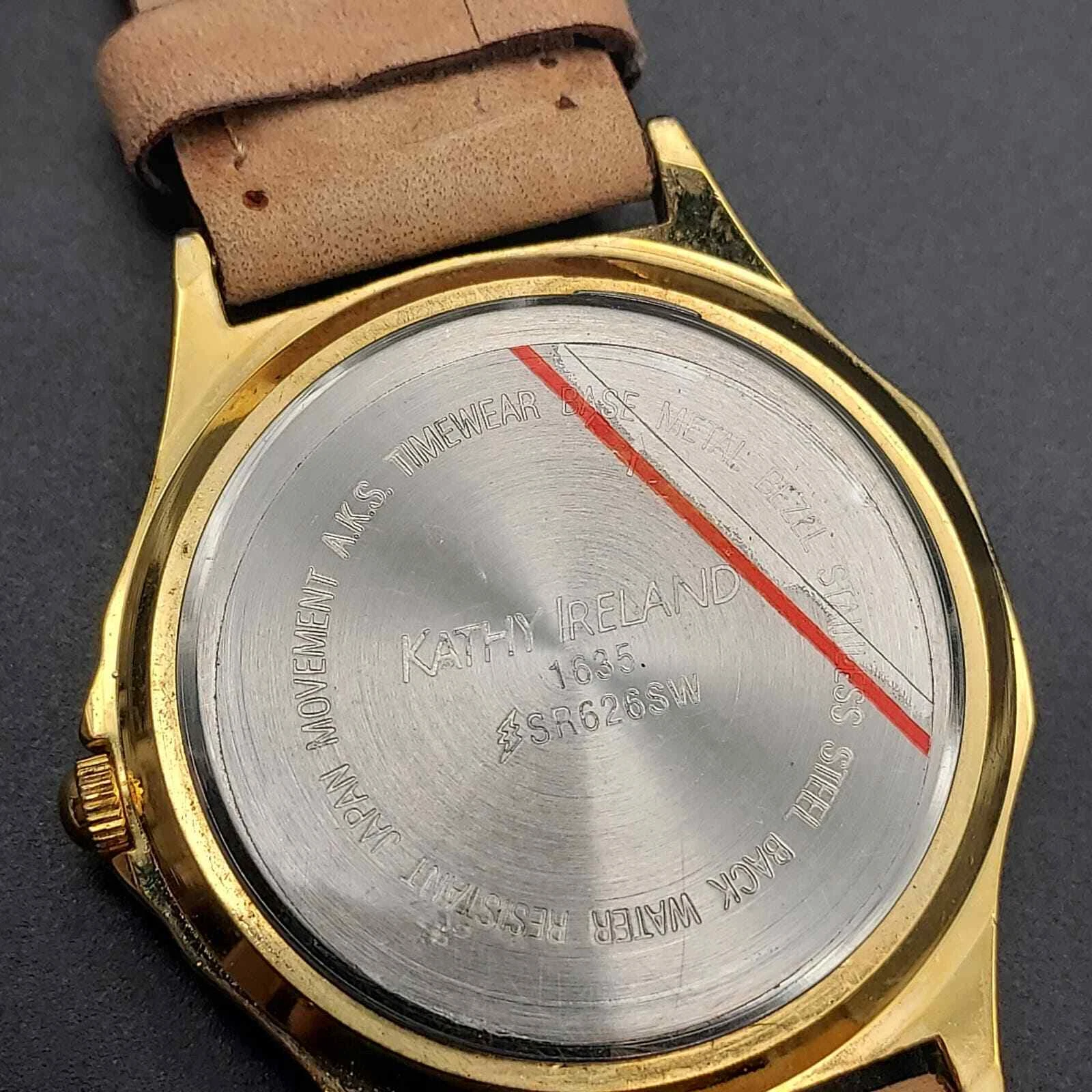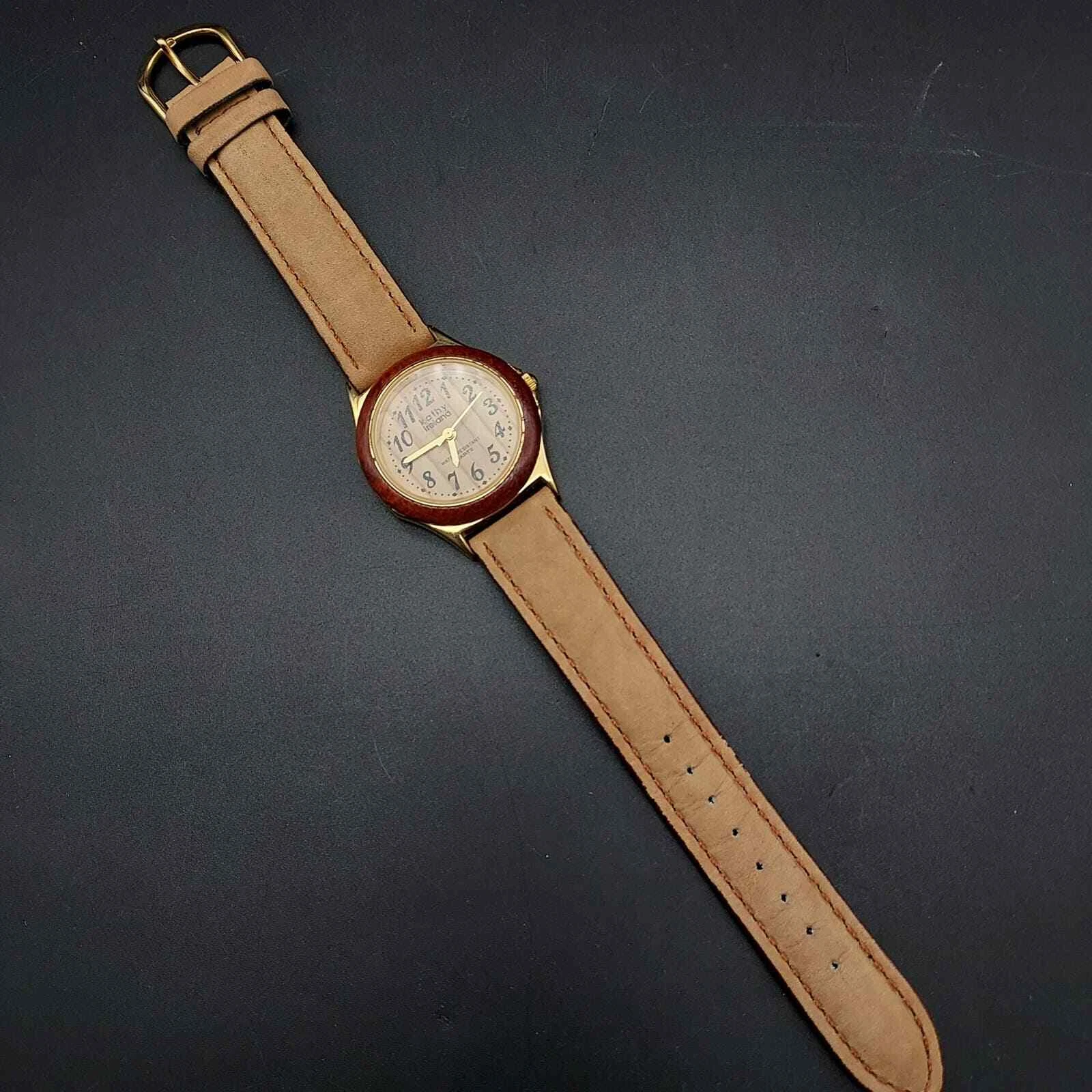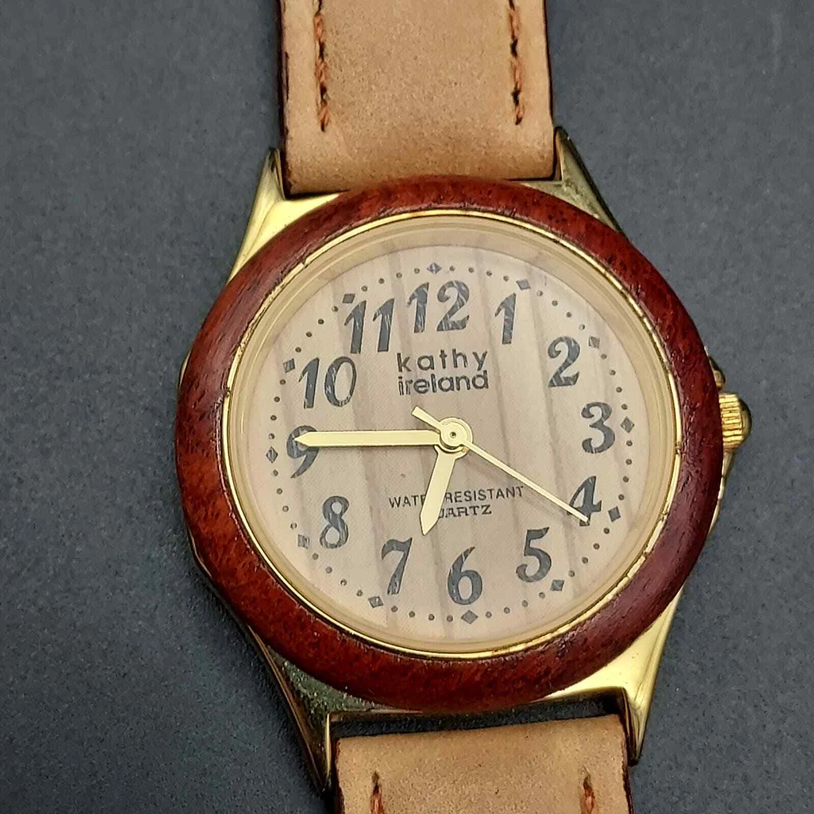 Kathy Ireland Watch Faux Wood Grain Leather Neutral Color Womens Wrist Watch